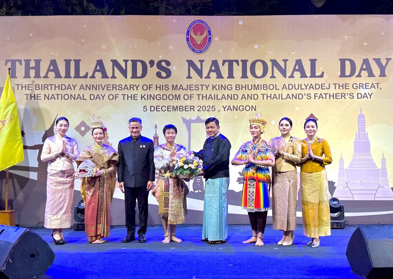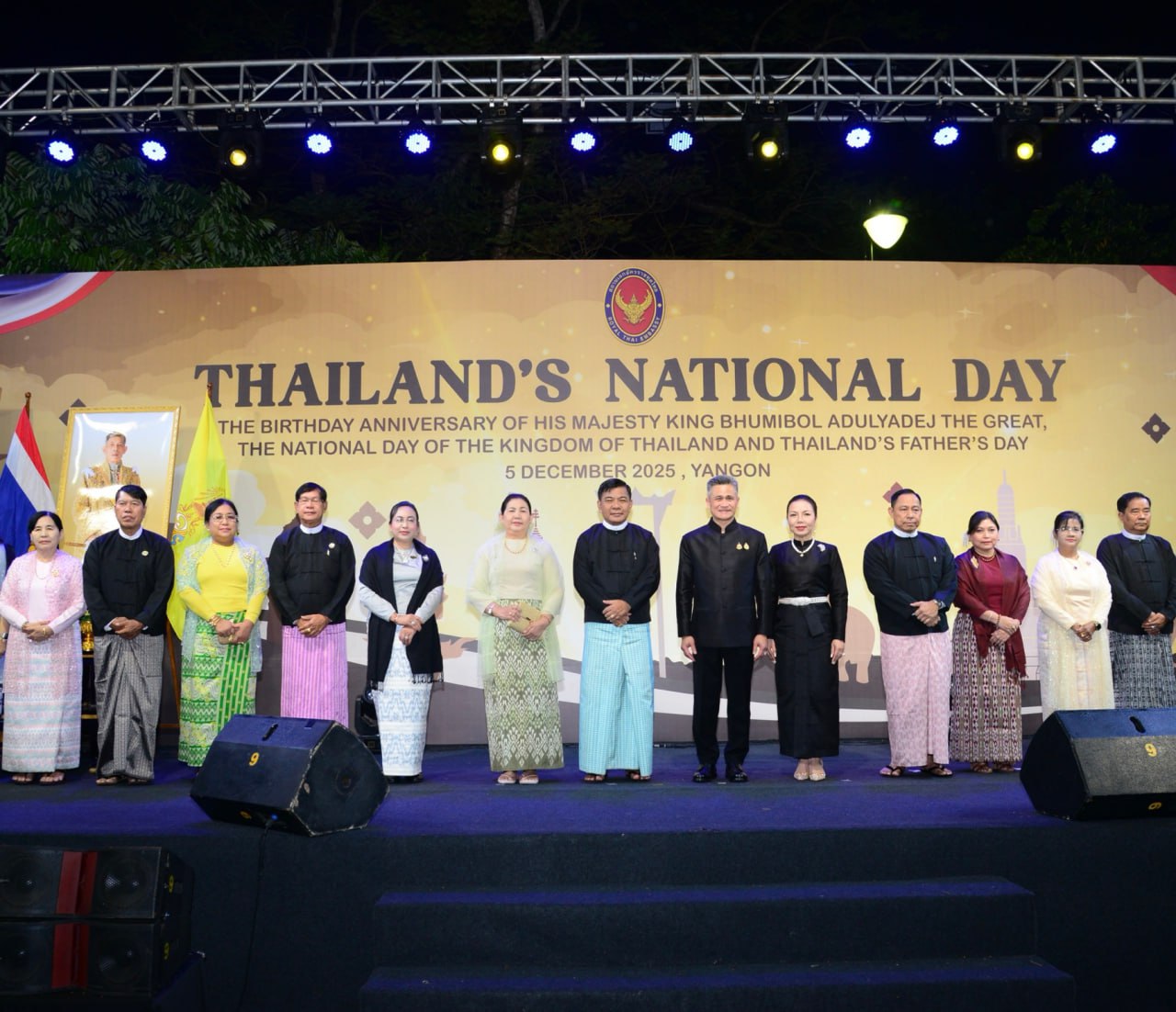 ထိုင်းနိုင်ငံဘုရင်မင်းမြတ် ဘူမိဘော အဒူလျာဒက်ဂျ်၏မွေးနေ့၊ ထိုင်းနိုင်ငံ၏အမျိုးသားနေ့နှင့် Thailand's Father's Day အထိမ်းအမှတ်ဧည့်ခံပွဲအခမ်းအနားကို ယနေ့ ညနေပိုင်းတွင် ရန်ကုန်မြို့ရှိ မြန်မာနိုင်ငံဆိုင်ရာ ထိုင်းနိုင်ငံသံအမတ်ကြီးနေအိမ်၌ကျင်းပရာ နိုင်ငံတော် လုံခြုံရေးနှင့်အေးချမ်းသာယာရေးကော်မရှင်အဖွဲ့ဝင်၊ ကာကွယ်ရေးဝန်ကြီးဌာန ပြည်ထောင်စုဝန်ကြီး ဗိုလ်ချုပ်ကြီး မောင်မောင်အေး တက်ရောက်သည်။