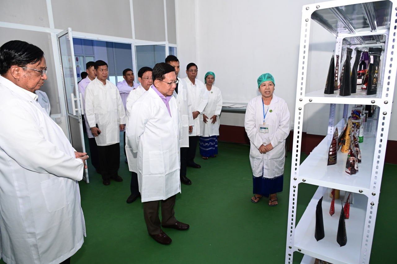ထို့နောက် နိုင်ငံတော်ယာယီသမ္မတ နိုင်ငံတော်လုံခြုံရေးနှင့် အေးချမ်းသာယာရေး ကော်မရှင်ဥက္ကဋ္ဌနှင့် အဖွဲ့ဝင်များသည် စက်မှုဝန်ကြီးဌာန၊ စက်မှုကြီးကြပ်ရေးနှင့် စစ်ဆေး ရေးဦးစီးဌာန(ပြင်ဦးလွင်ခရိုင်ရုံးခွဲ)သို့ သွားရောက်ကြည့်ရှုစစ်ဆေးရာ စားသောက်ကုန် ဓာတ်ခွဲခန်း ရှင်းလင်းဆောင်၌ စက်မှုဝန်ကြီးဌာန ပြည်ထောင်စုဝန်ကြီး ဒေါက်တာ ချာလီသန်းကစားသောက်ကုန်ဓာတ်ခွဲခန်းများ ဆောင်ရွက်ရခြင်းရည်ရွယ်ချက်၊ ပြည်တွင်း ရှိ စားသောက်ကုန်ဆိုင်ရာ ဓာတ်ခွဲခန်းများ၊ စက်မှုဝန်ကြီးဌာနရှိ ဓာတ်ခွဲခန်းများ၊ တိုင်း ဒေသကြီးနှင့် ပြည်နယ်များရှိ MSME လုပ်ငန်းများနှင့် ထုတ်လုပ်မှုလုပ်ငန်း အမျိုးအစား များ၊ မြန်မာ့ SME များ ရှင်သန်ဖွံဖြိုး တိုးတက်လာစေရန် ဆောင်ရွက်ရမည့် လုပ်ငန်း စဉ်များ၊ ဥပဒေအမိန့်ညွှန်ကြားချက်များနှင့်အညီဆောင်ရွက်ရန်လိုအပ်မှု၊ ဓာတ်ခွဲစမ်းသပ် ဝန်ဆောင်မှုပေးနိုင်သည့် အခြေအနေနှင့် MSME လုပ်ငန်းများအတွက် ပိုချမည့်သင်တန်း များ၊ သုတေသနဌာနခွဲ(ပြင်ဦးလွင်) ဖြစ်ပေါ်လာပုံနှင့် ဓာတ်ခွဲစမ်းသပ်ဝန်ဆောင်မှုပေးနိုင် မှု၊ ဓာတ်ခွဲခန်းဆိုင်ရာ နိုင်ငံတကာ အသိအမှတ်ပြုလက်မှတ် (ISO 17025:2017) ရရှိနိုင် ရေးဆောင်ရွက်နေမှုနှင့် အဏုဇီဝ ဓာတ်ခွဲခန်းလိုအပ်မှု အခြေအနေများနှင့်ပတ်သက်၍ ရှင်းလင်း တင်ပြသည်။