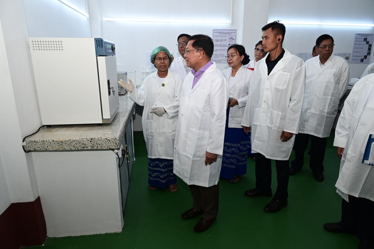 ထို့နောက် နိုင်ငံတော်ယာယီသမ္မတ နိုင်ငံတော်လုံခြုံရေးနှင့် အေးချမ်းသာယာ ရေးကော်မရှင်ဥက္ကဋ္ဌ သည် သုတေသနဌာနခွဲ(ပြင်ဦးလွင်)အတွင်း MSME လုပ်ငန်းများမှ လက်ခံရရှိသော နမူနာပစ္စည်းများအား ဓာတ်ခွဲစမ်းသပ်ခြင်းဆောင်ရွက်ထားရှိမှုနှင့် ဓာတ်ခွဲစမ်းသပ်ခြင်း လုပ်ငန်းဆောင်ရွက်နေမှုလုပ်ငန်းစဉ်အဆင့်ဆင့်အား လိုက်လံ ကြည့် ရှုစစ်ဆေးခဲ့ပြီး တာဝန်ရှိသူများ၏ တင်ပြချက်များအပေါ်လိုအပ်သည်များ လမ်းညွှန်မှာ ကြားခဲ့သည်။