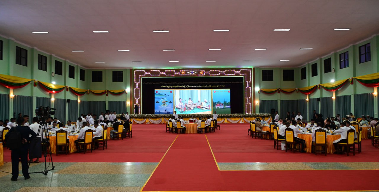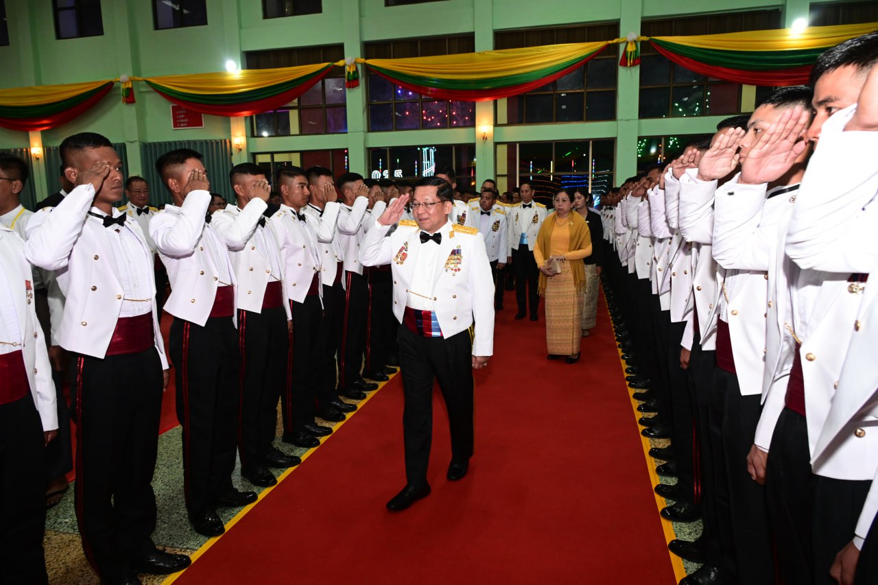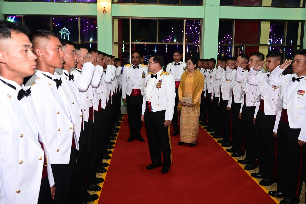 တပ်မတော်နည်းပညာတက္ကသိုလ် ဗိုလ်လောင်းသင်တန်းအမှတ်စဉ်(၂၇) သင်တန်း ဆင်း ဂုဏ်ပြုညစာစားပွဲအခမ်းအနားကို ယနေ့ညနေပိုင်းတွင် ပြင်ဦးလွင်မြို့၊ တပ်မတော် နည်းပညာတက္ကသိုလ်၊ ဗိုလ်လောင်းစားရိပ်သာ၌ ကျင်းပပြုလုပ်ရာ နိုင်ငံတော်လုံခြုံရေးနှင့် အေးချမ်းသာယာရေးကော်မရှင် ဥက္ကဋ္ဌ တပ်မတော်ကာကွယ်ရေးဦးစီးချုပ် ဗိုလ်ချုပ်မှူးကြီး မင်းအောင်လှိုင် တက်ရောက်ချီးမြှင့်သည်။