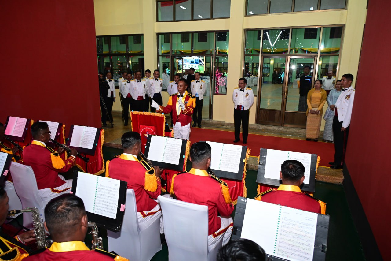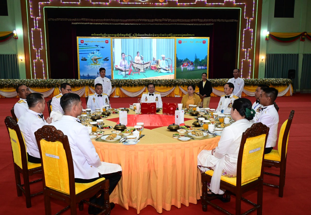 ညစာသုံးဆောင်အပြီးတွင် နိုင်ငံတော်လုံခြုံရေးနှင့် အေးချမ်းသာယာရေးကော်မရှင် ဥက္ကဋ္ဌ တပ်မတော်ကာကွယ်ရေးဦးစီးချုပ်နှင့် အဖွဲ့ဝင်များသည် တပ်မတော်နည်းပညာ တက္ကသိုလ် ဂုဏ်ပြုစစ်တီးဝိုင်းတပ်ဖွဲ့၏ ဂုဏ်ပြုတီးမှုတ်မှုအား ကြည့်ရှုအားပေးပြီး ချီးမြှင့် ငွေများ ပေးအပ်သည်။