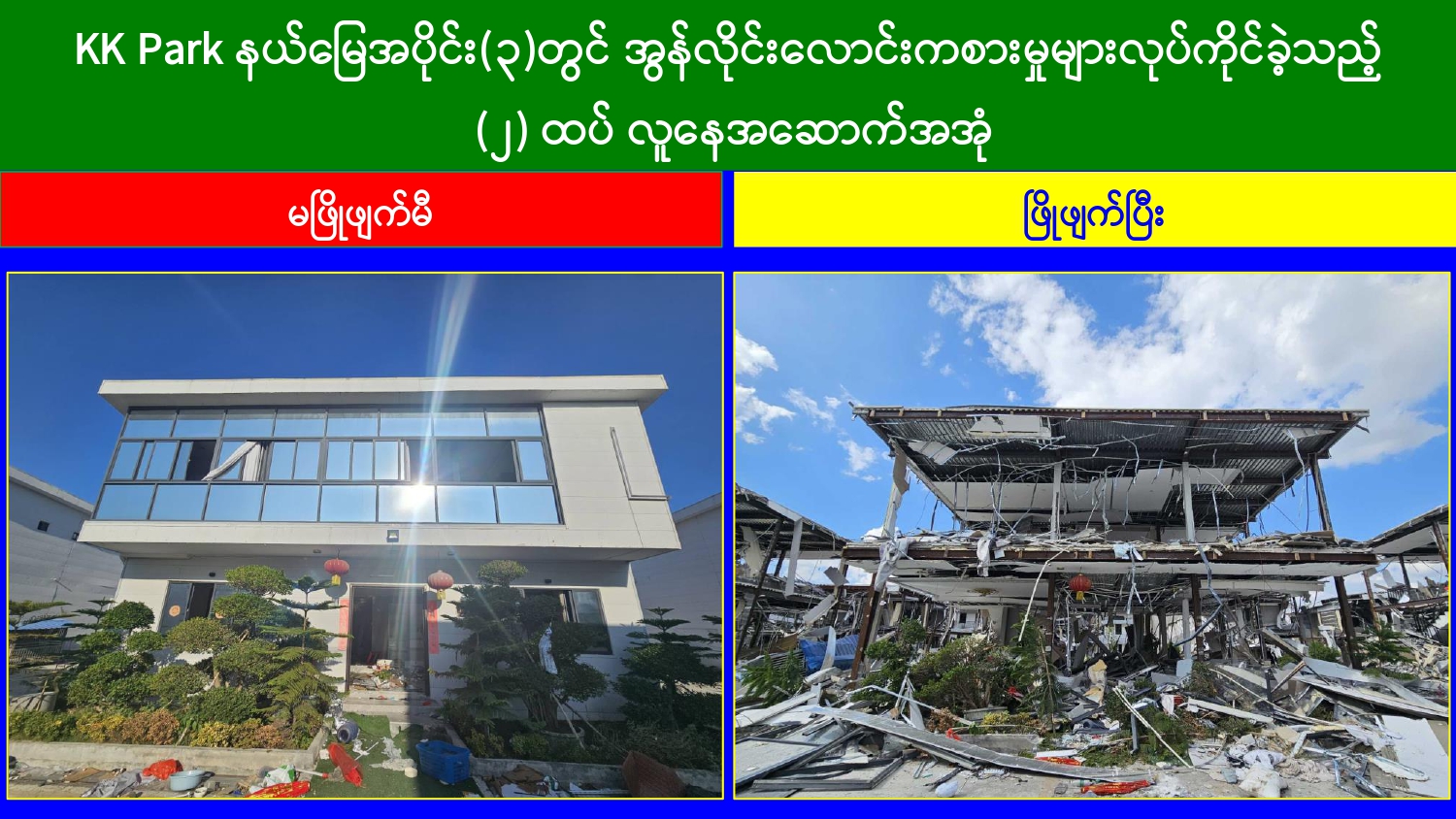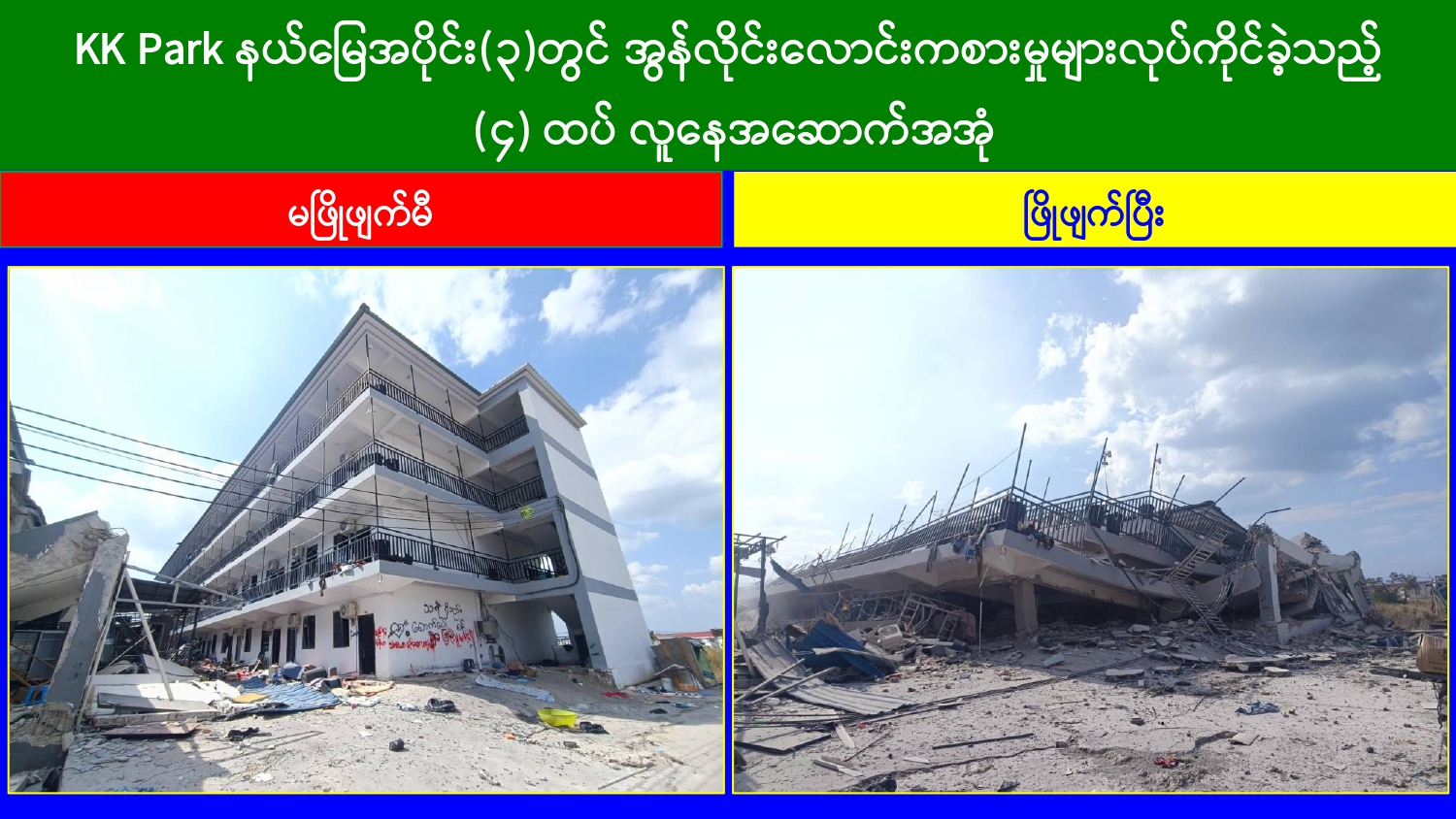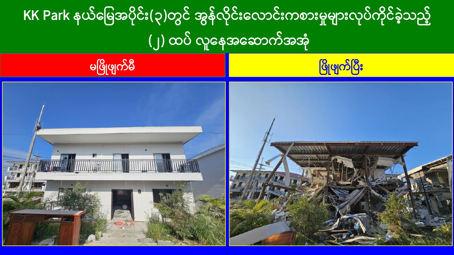 ၎င်းအပြင် မြဝတီမြို့နယ်အတွင်းရှိ KK Park နယ်မြေနှင့် ရွှေကုက္ကိုလ်နယ်မြေတို့၌ အွန်လိုင်းလိမ်လည်လောင်းကစားမှုကျူးလွန်ရာတွင် အသုံးပြုသည့်ပစ္စည်းများအား ထပ်မံ ၍ အသုံးပြုနိုင်ခြင်းမရှိစေရန်အတွက်ယနေ့တွင်လည်း စနစ်တကျ မီးရှို့ဖျက်ဆီးခဲ့ကြောင်း သိရှိရသည်။