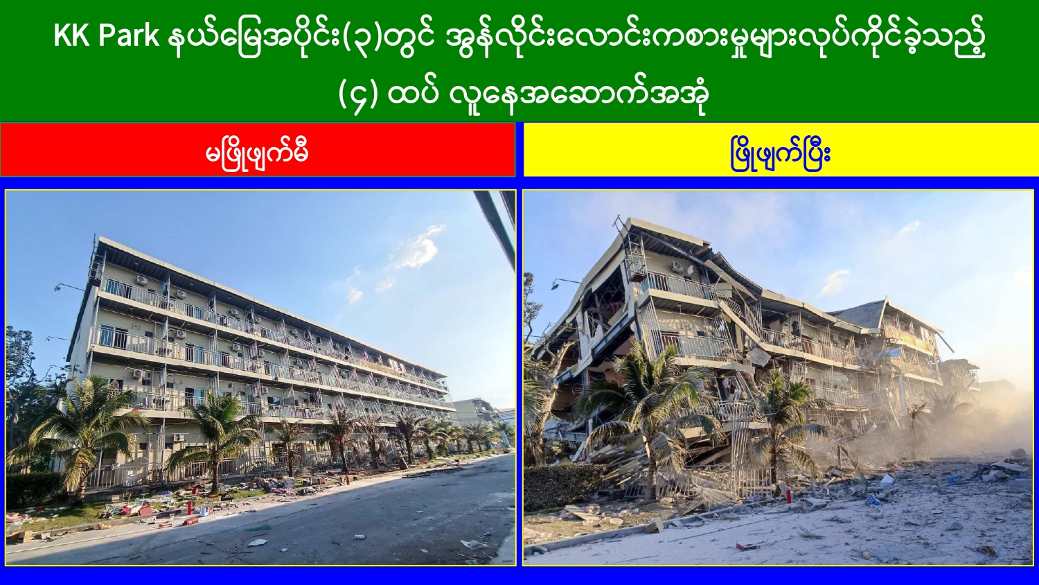 မြန်မာနိုင်ငံတော်အစိုးရအနေဖြင့် အွန်လိုင်းလိမ်လည်မှုများနှင့် အွန်လိုင်းလောင်း ကစားမှုများ အများဆုံးအခြေချလုပ်ကိုင်လျက်ရှိကြသည့် ရွှေကုက္ကိုလ်နယ်မြေနှင့် မြဝတီ-မဲထော်သလေး (KK Park) နယ်မြေများ၌ လုံခြုံရေးတပ်ဖွဲ့ဝင်များ၊ အုပ်ချုပ်ရေးအဖွဲ့ အစည်းများနှင့် ဒေသတွင်း တာဝန်ရှိသူများအပါအဝင် အဖွဲ့စုံပါဝင်သည့် ပူးပေါင်းအဖွဲ့ဖြင့် တရားမဝင် အဆောက်အအုံများအတွင်း ဝင်ရောက်ရှင်းလင်းခြင်း၊ အွန်လိုင်းလိမ်လည် လောင်းကစားမှုလုပ်ငန်းစဉ်များတွင်အသုံးပြုခဲ့သည့် သိမ်းဆည်းရမိပစ္စည်းများနှင့် တရား မဝင် အဆောက်အအုံများအား စနစ်တကျဖြိုချဖျက်ဆီးခြင်းနှင့် ချိပ်ပိတ်သိမ်းဆည်းခြင်း များ ဆောင်ရွက်လျက်ရှိရာ ယနေ့အထိ KK Park နယ်မြေအတွင်းရှိ တရားမဝင် အဆောက်အအုံ ၃၂၁ လုံးကို စနစ်တကျဖြိုချဖျက်ဆီးခဲ့ပြီး ရွှေကုက္ကိုလ်နယ်မြေအတွင်းရှိ အွန်လိုင်းလိမ်လည်လောင်းကစားမှုကျူးလွန်ရာတွင် အသုံးပြုသည့်ပစ္စည်းများအား ထပ်မံ ၍ အသုံးပြုနိုင်ခြင်းမရှိစေရန်အတွက် စနစ်တကျ မီးရှို့ဖျက်ဆီးခဲ့ကြောင်း သိရှိရသည်။