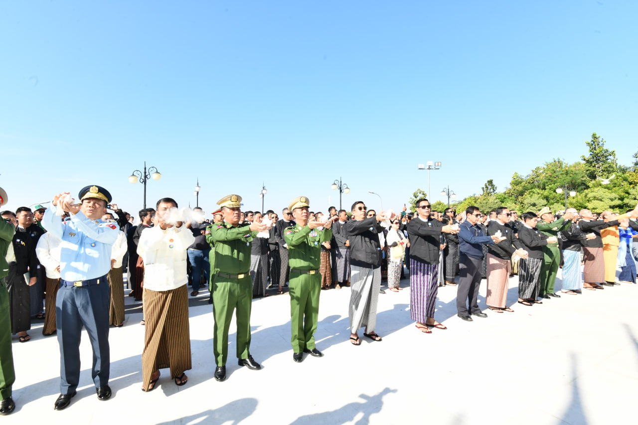 ယင်းနောက် တက်ရောက်လာကြသူများက ကျဆုံးစစ်သည်များအတွက် လွမ်းသူ့ပန်းခြင်းများဖြင့် ဂါရဝပြုခြင်းကိုအစီအစဉ်အတိုင်း ဆောင်ရွက်ကြသည်။ ထို့ပြင် ယနေ့နံနက်ပိုင်းတွင်လည်း ကျဆုံးစစ်သည်များအားရည်စူး၍ ပုဗ္ဗသီရိမြို့နယ်၊ အေးမြင့်သာယာအုပ်စု၊ ပေါက်တောကျေးရွာ၊ သဒ္ဓါရုံကျောင်းတိုက်၌ သံဃာတော် များအား အရုဏ်ဆွမ်းနှင့် လှူဖွယ်ဝတ္ထုပစ္စည်းများ လှူဒါန်း၍ ရေစက်သွန်းချ အမျှပေးဝေခြင်းတို့ကို ဆောင်ရွက်ခဲ့ကြောင်း သတင်းရရှိသည်။