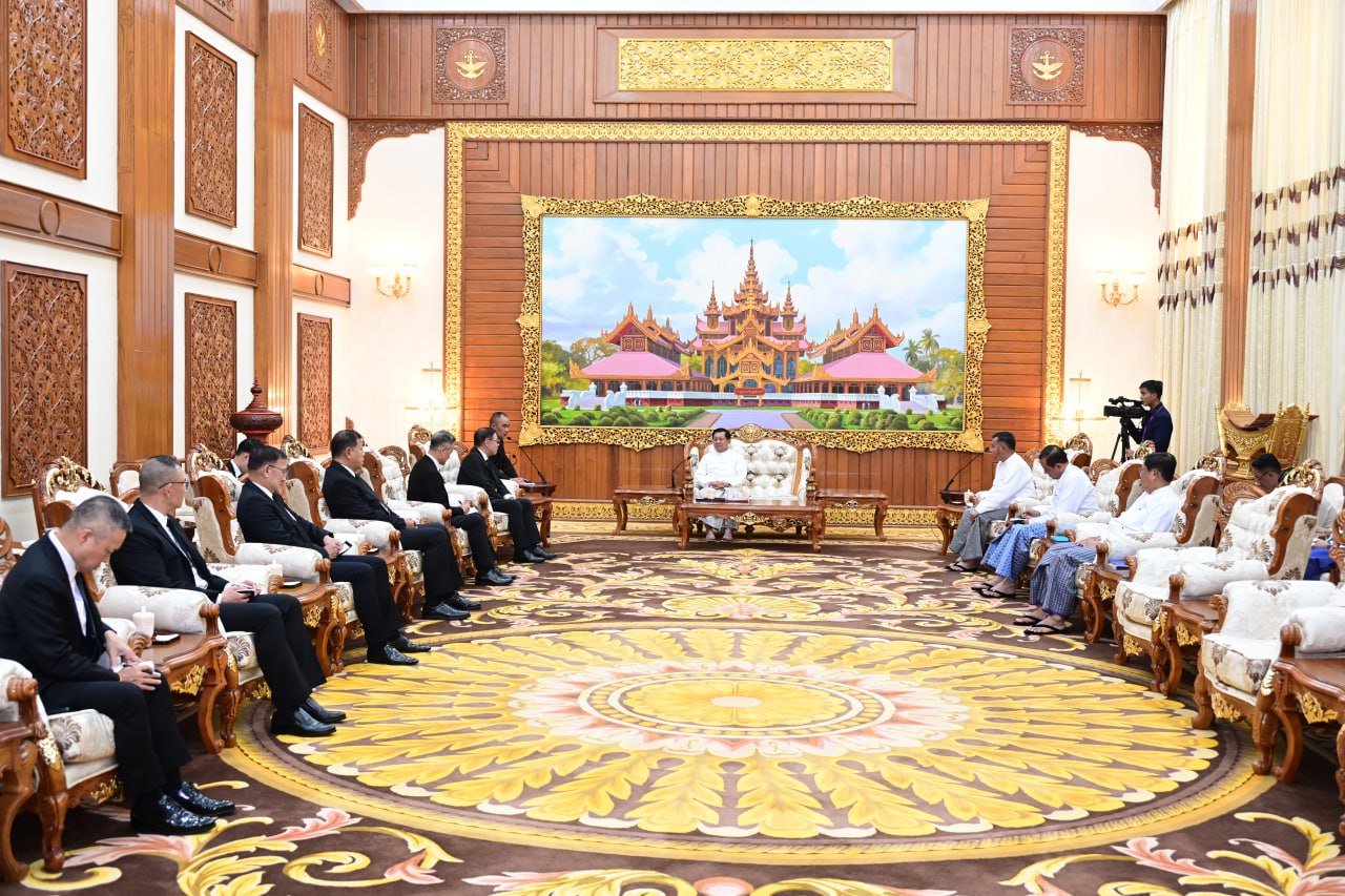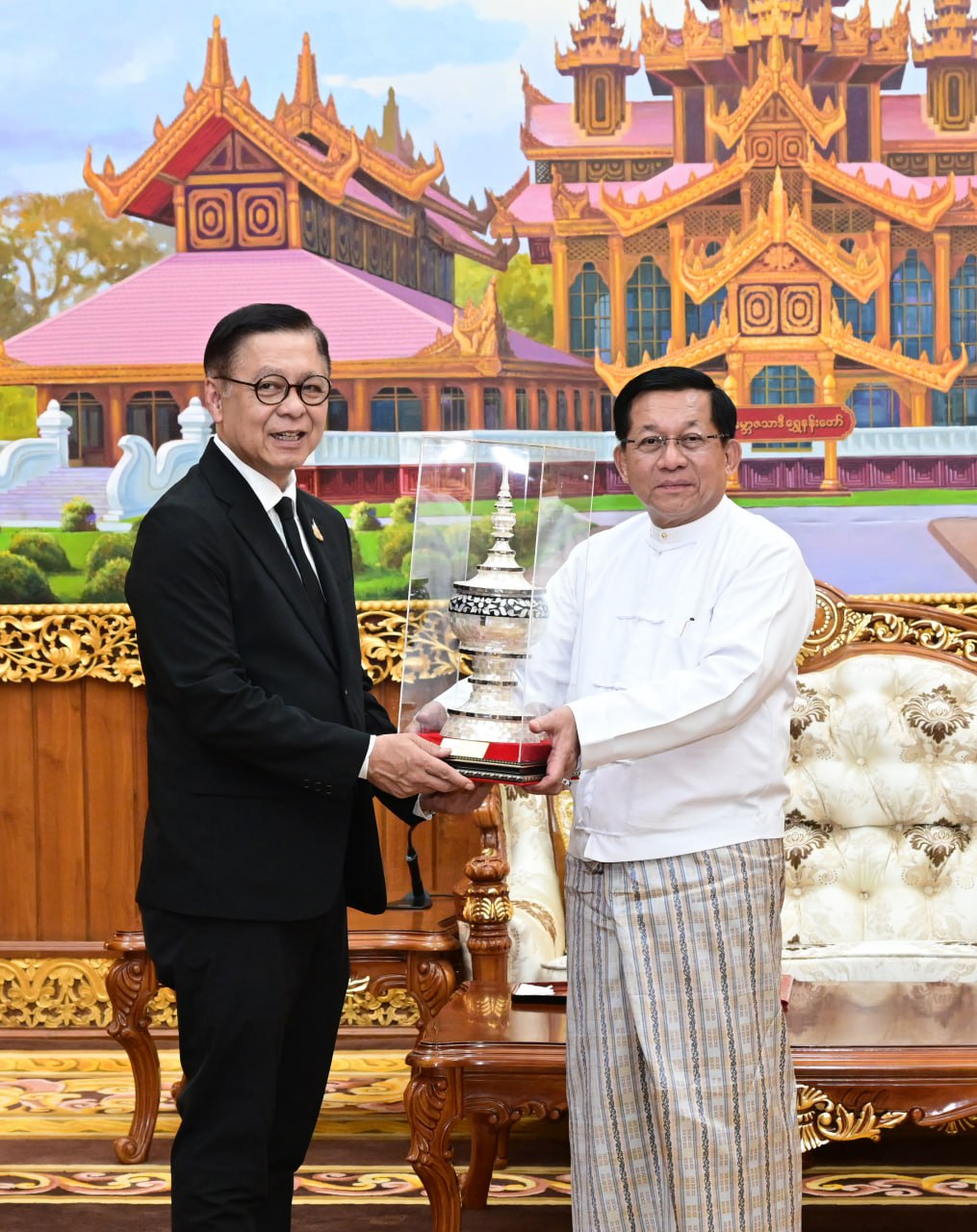 ပြည်ထောင်စုသမ္မတမြန်မာနိုင်ငံတော် ယာယီသမ္မတ နိုင်ငံတော်လုံခြုံရေးနှင့် အေးချမ်းသာယာရေးကော်မရှင် ဥက္ကဋ္ဌ ဗိုလ်ချုပ်မှူးကြီး မင်းအောင်လှိုင် ထံ ထိုင်းနိုင်ငံ၊ နိုင်ငံခြားရေးဝန်ကြီး H.E. Mr.Sihasak Phuangketkeow ဦးဆောင်သည့် ကိုယ်စား လှယ်အဖွဲ့က ယနေ့မွန်းလွဲပိုင်းတွင် နေပြည်တော်ရှိ ဘုရင့်နောင်ရိပ်သာ ဧည့်ခန်းမ၌ လာရောက်ဂါရဝပြုတွေ့ဆုံသည်။