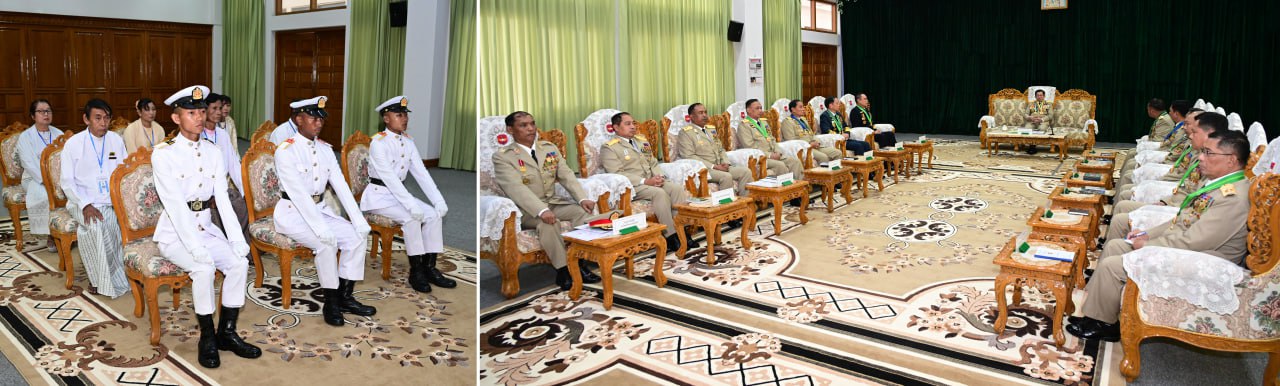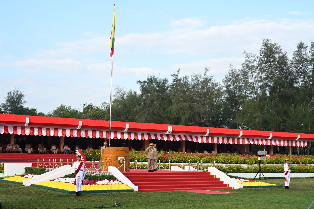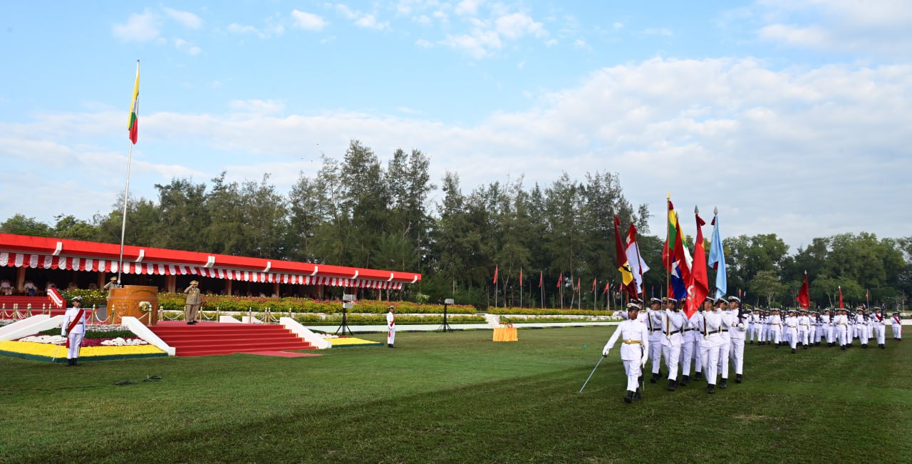 တပ်မတော်ဆေးတက္ကသိုလ်၊ ဗိုလ်လောင်းသင်တန်းအမှတ်စဉ်(၂၆) သင်တန်းဆင်း ဂုဏ်ပြုစစ်ရေးပြအခမ်းအနားကို ယနေ့နံနက်ပိုင်းတွင် ရန်ကုန်မြို့ရှိ တပ်မတော် ဆေးတက္ကသိုလ်စစ်ရေးပြကွင်း၌ ကျင်းပပြုလုပ်ရာ နိုင်ငံတော်လုံခြုံရေးနှင့် အေးချမ်း သာယာရေးကော်မရှင် ဥက္ကဋ္ဌ တပ်မတော်ကာကွယ်ရေးဦးစီးချုပ် ဗိုလ်ချုပ်မှူးကြီး သတိုး မဟာသရေစည်သူ သတိုးသီရိ သုဓမ္မ မင်းအောင်လှိုင် တက်ရောက်မိန့်ခွန်း ပြောကြား သည်။
