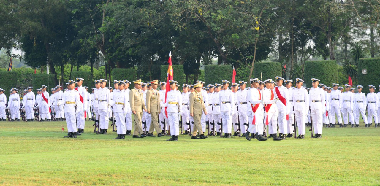 နိုင်ငံတော်လုံခြုံရေးနှင့် အေးချမ်းသာယာရေးကော်မရှင်ဥက္ကဋ္ဌ တပ်မတော်ကာကွယ်ရေးဦးစီးချုပ် ဗိုလ်ချုပ်မှူးကြီး သတိုးမဟာသရေစည်သူ သတိုးသီရိသုဓမ္မ မင်းအောင်လှိုင် တပ်မတော်ဆေးတက္ကသိုလ် ဗိုလ်လောင်းသင်တန်းအမှတ်စဉ်(၂၆) သင်တန်းဆင်း ဂုဏ်ပြုစစ်ရေးပြအခမ်းအနားသို့ တက်ရောက်မိန့်ခွန်းပြောကြား