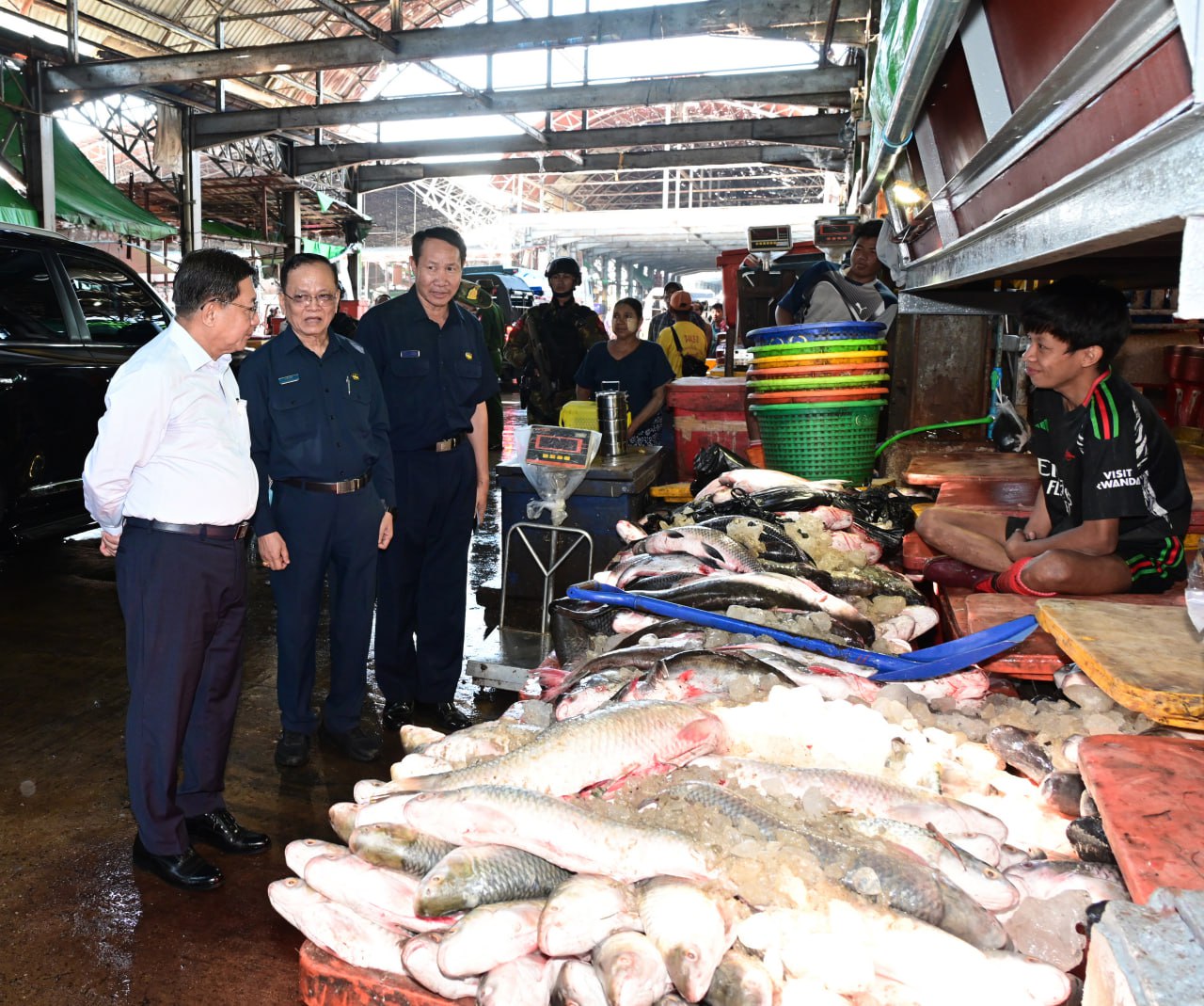 ယင်းနောက် နိုင်ငံတော်ယာယီသမ္မတ နိုင်ငံတော်လုံခြုံရေးနှင့် အေးချမ်းသာယာရေး ကော်မရှင်ဥက္ကဋ္ဌ နှင့် အဖွဲ့ဝင်များသည် ရွှေပိတောက်ငါးဈေးသို့ ရောက်ရှိကြပြီး ဈေးဆိုင် ခန်းများအလိုက် ဈေးရောင်းချနေသည့်ပြည်သူများအား ရင်းရင်းနှီးနှီး လိုက်လံနှုတ်ဆက်၍ ဈေးရောင်းချရမှုအခြေအနေများအား မေးမြန်းအားပေးစကားပြောကြားသည်။ ထို့နောက် လှိုင်မြစ်နံဘေးရှိ ရွှေပိတောက်ငါးဈေးဆိပ်ခံဗောတံတား၌ ခရီးသည်များနှင့် ငါးကုန် သည်များ၏ သင်္ဘောများ၊ လှေများ ဆိုက်ကပ်မှု၊ အသုံးပြုမှုအခြေအနေများကို ကြည့်ရှု စစ်ဆေးသည်။