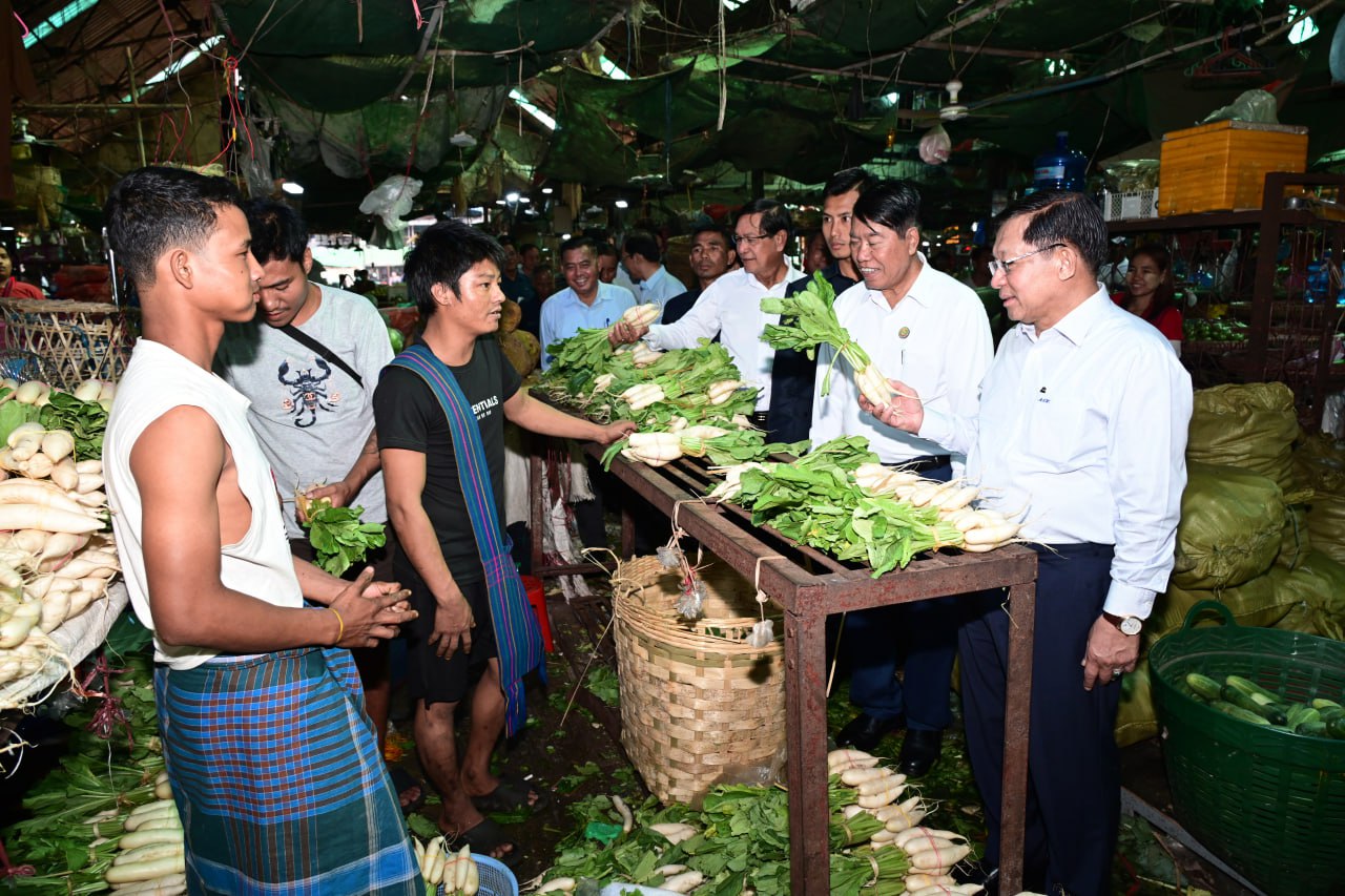 ဦးစွာ နိုင်ငံတော်ယာယီသမ္မတ နိုင်ငံတော်လုံခြုံရေးနှင့် အေးချမ်းသာယာရေး ကော်မရှင်ဥက္ကဋ္ဌ နှင့် အဖွဲ့ဝင်များသည် သီရိမင်္ဂလာဈေးသို့ ရောက်ရှိကြပြီး ဈေးအတွင်း ဈေးဆိုင်ခန်းများ၌ ဈေးရောင်းချလျက်ရှိသည့် ပြည်သူများ၊ ကုန်များလာရောက်ပို့ဆောင် ကြသည့် ကုန်သည်များအား ရင်းရင်းနှီးနှီးလိုက်လံနှုတ်ဆက်၍ ကုန်များရရှိမှု၊ ဈေးကွက် ရရှိမှု၊ နေ့စဉ်ဈေးရောင်းချရာတွင် ကြုံတွေ့ရမှုများနှင့် သိရှိလိုသည်များကို မေးမြန်းဆွေး နွေးသည်။