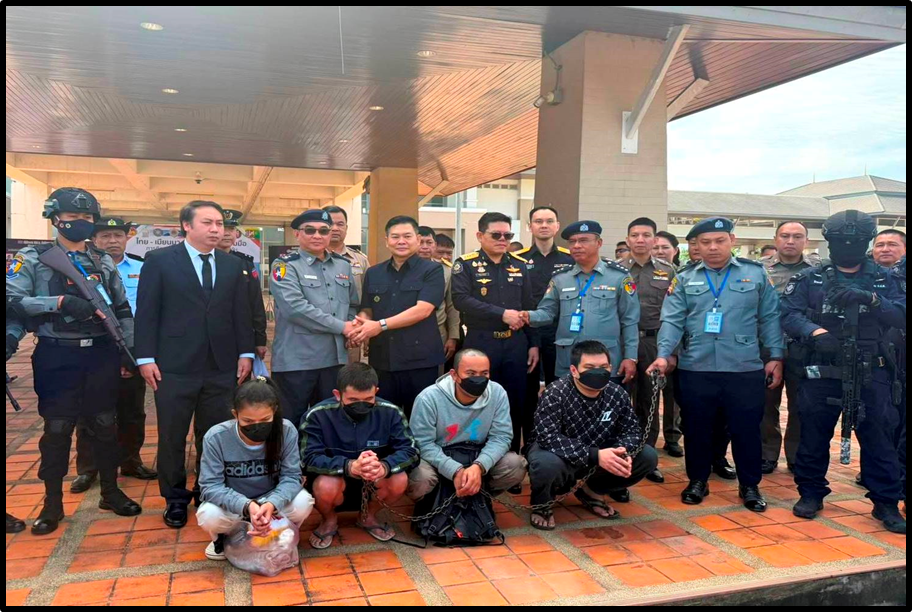 မြန်မာ-ထိုင်း နှစ်နိုင်ငံ မူးယစ်ဆေးဝါး ပူးပေါင်းထိန်းချုပ်ရေးဆိုင်ရာ နားလည်မှုစာချွန်လွှာအရ အဆိုပါ အလိုရှိတရားခံပြေး ၃ ဦးနှင့်အတူ ၁၆-၉-၂၀၂၅ ရက်နေ့တွင် တာချီလိတ်မြို့၊ ရန်အောင်မြေ ရပ်ကွက်တွင် ဖမ်းဆီးရမိခဲ့သည့် တရားမဝင် ဝင်ရောက်နေထိုင်ခဲ့သူ ထိုင်းနိုင်ငံသား Mr. Chairit Phucharoen (ချရစ်ဖူချရွန်)တို့အား နှစ်နိုင်ငံတည်ဆဲဥပဒေ လုပ်ထုံးလုပ်နည်းများနှင့်အညီ မူးယစ်ဆေးဝါးနှင့် စိတ်ကို ပြောင်းလဲစေသောဆေးဝါးများအန္တရာယ် တားဆီးကာကွယ်ရေးဗဟိုအဖွဲ့ကိုယ်စား မူးယစ်ဆေးဝါးတားဆီး နှိမ်နင်းရေးရဲတပ်ဖွဲ့၊ အမှတ်(၇)မူးယစ်တပ်ဖွဲ့ခွဲ၊ တပ်ဖွဲ့ခွဲမှူး ဒုတိယရဲမှူးကြီး ကျော်စိန်ဝင်း ဦးဆောင်သည့် အဖွဲ့မှ ထိုင်းနိုင်ငံ၊ မူးယစ်ဆေးဝါးထိန်းချုပ်ရေးအဖွဲ့(ONCB)၊ အတွင်းရေးမှူးချုပ် Police Major Suriya Singhakamol ဦးဆောင်သည့်အဖွဲ့ထံသို့ ၁၁-၁၂-၂၀၂၅ ရက်နေ့ မြန်မာစံတော်ချိန် နံနက် ၁၁ နာရီအချိန်တွင် မြန်မာ-ထိုင်း ချစ်ကြည်ရေးတံတား(၂)၌ လွှဲပြောင်းပေးအပ်ခဲ့ကြောင်း၊ နှစ်နိုင်ငံ မူးယစ်ဆေးဝါးပူးပေါင်းထိန်းချုပ်ရေး အစီအစဉ်အရ မူးယစ်ဆေးဝါးပြစ်မှုကျူးလွန်ပြီး တစ်ဘက်နိုင်ငံသို့ ထွက်ပြေးတိမ်းရှောင်ကာ နယ်စပ်ဖြတ်ကျော် မူးယစ်မှုခင်းများ ထပ်မံကျူးလွန်နေသည့် တရားခံပြေးများကို အပြန်အလှန် ဖော်ထုတ်ဖမ်းဆီးလွှဲပြောင်း ပေးခြင်းဖြစ်ကြောင်းနှင့် မြန်မာနိုင်ငံအနေဖြင့် မူးယစ်ဆေးဝါး တားဆီးနှိမ်နင်းရေးလုပ်ငန်းများကို အမျိုးသားရေး တာဝန်တစ်ရပ်အနေဖြင့်သတ်မှတ်၍ အရှိန်အဟုန်မြှင့် ဆောင်ရွက်လျက်ရှိပြီး ဒေသတွင်း နိုင်ငံများ၊ အိမ်နီးချင်းနိုင်ငံများနှင့် ပိုမိုတိုးမြှင့်ပူးပေါင်း ဆောင်ရွက်ခြင်းဖြင့် မူးယစ်ဆေးဝါးထိန်းချုပ်ရေး လုပ်ငန်းများ ပိုမိုထိရောက်အောင်မြင်နိုင်မည်ဖြစ်ပါကြောင်း မြန်မာနိုင်ငံရဲတပ်ဖွဲ့မှ သတင်းရရှိသည်။