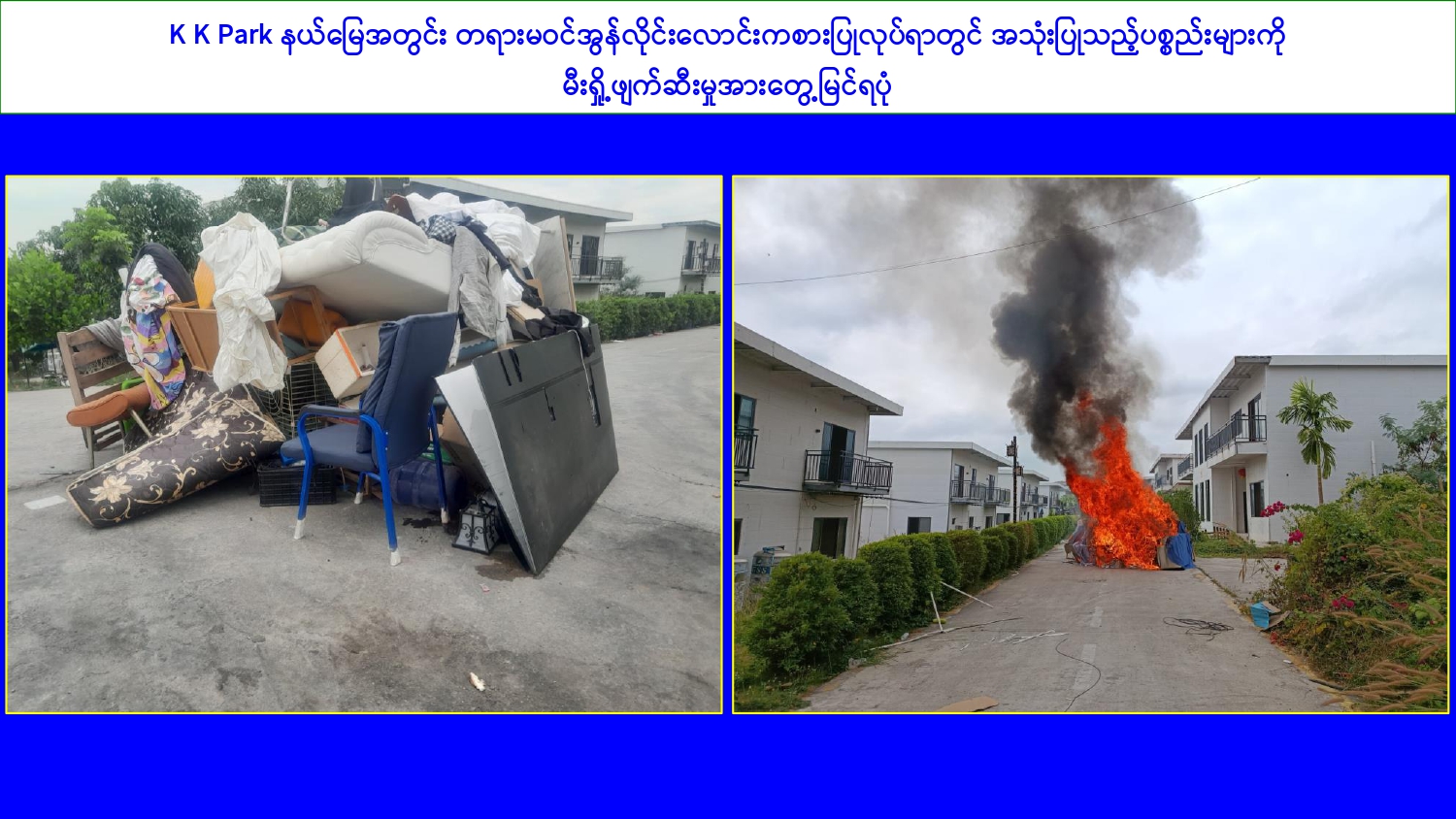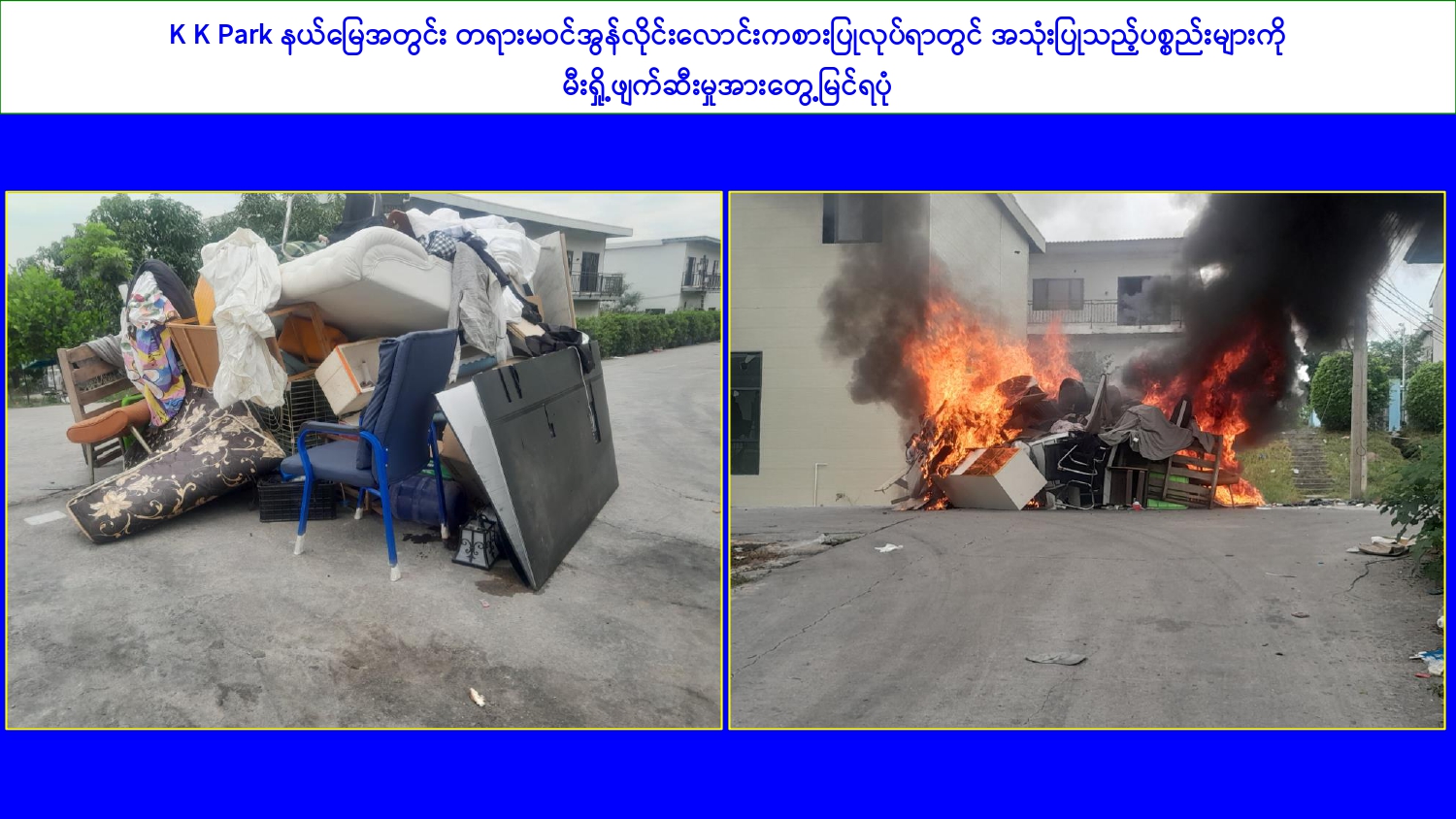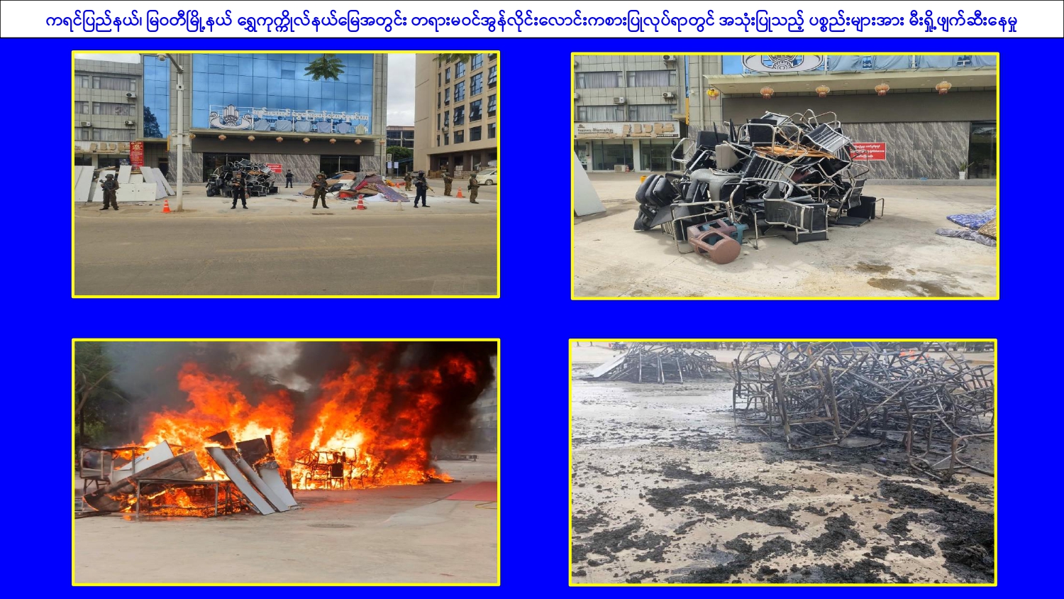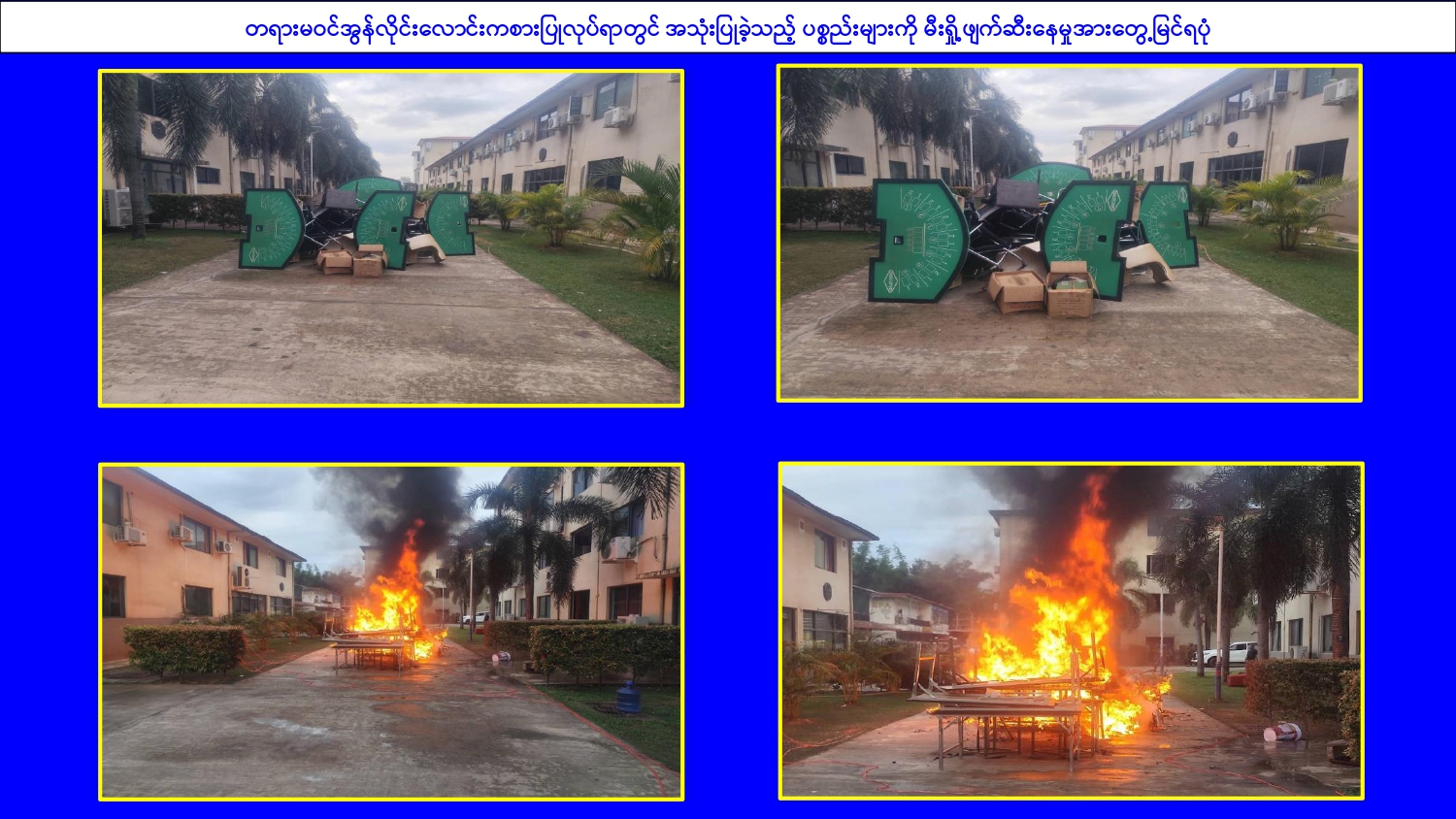 ၎င်းအပြင် မြဝတီမြို့နယ်အတွင်းရှိ KK Park နယ်မြေနှင့် ရွှေကုက္ကိုလ်နယ်မြေတို့၌ အွန်လိုင်းလိမ်လည်လောင်းကစားမှုကျူးလွန်ရာတွင် အသုံးပြုသည့်ပစ္စည်းများအား ထပ်မံ ၍ အသုံးပြုနိုင်ခြင်းမရှိစေရန်အတွက်ယနေ့တွင်လည်း စနစ်တကျ မီးရှို့ဖျက်ဆီးခဲ့ကြောင်း သိရှိရသည်။