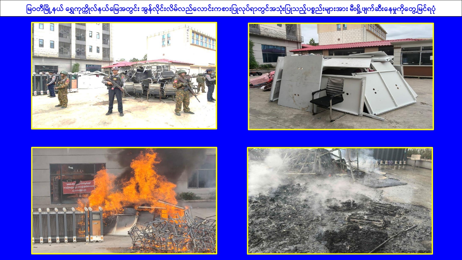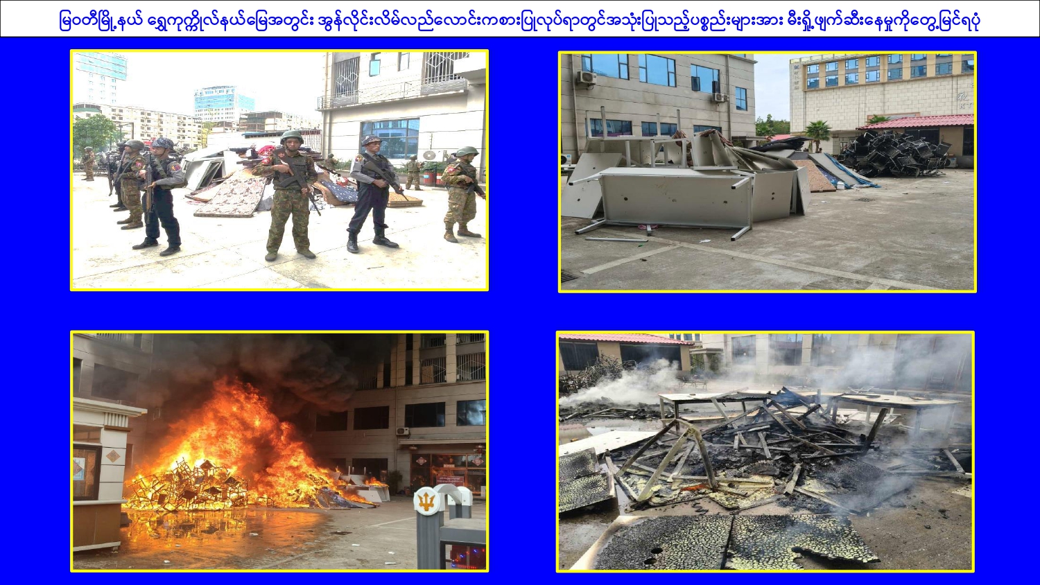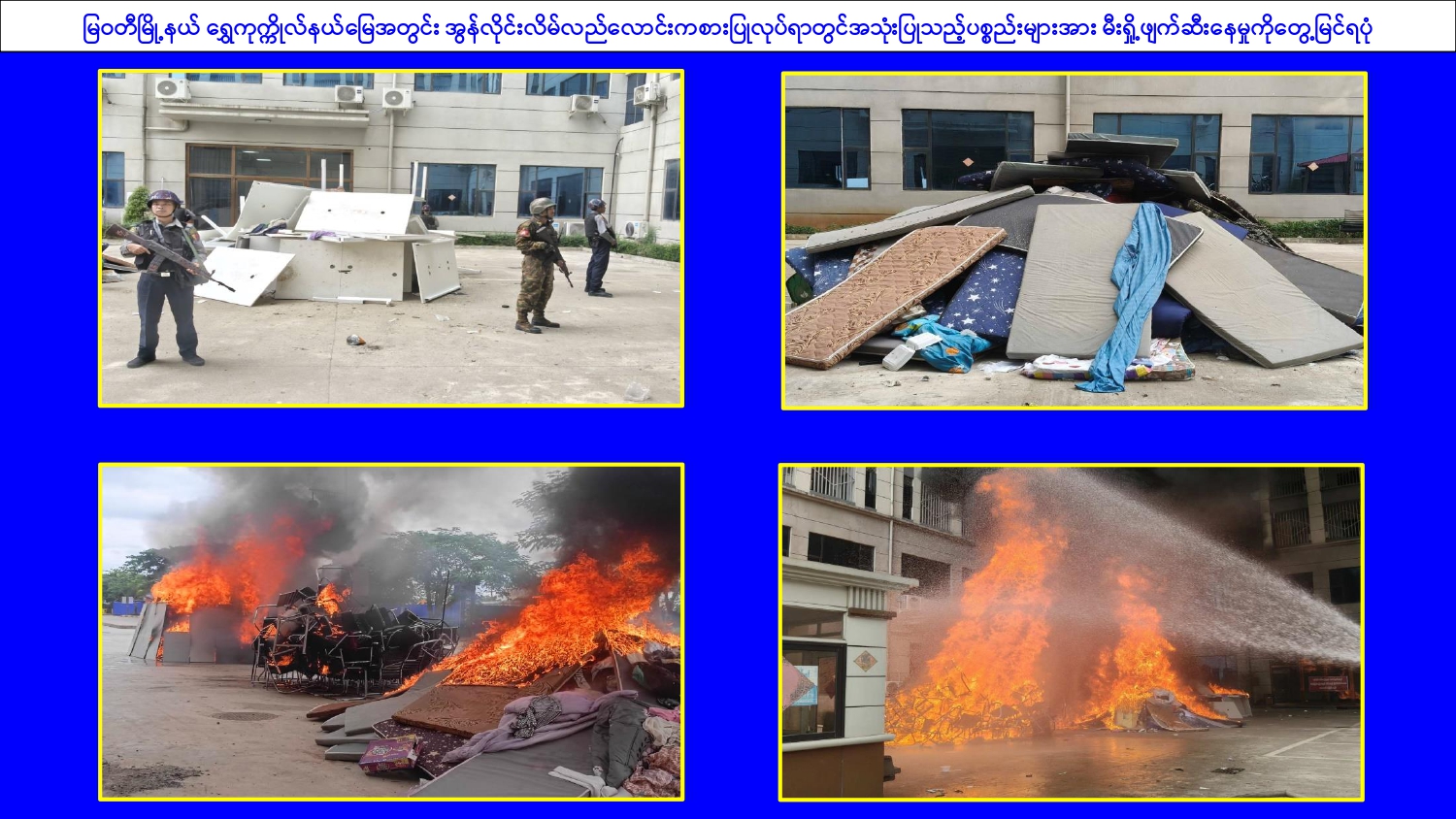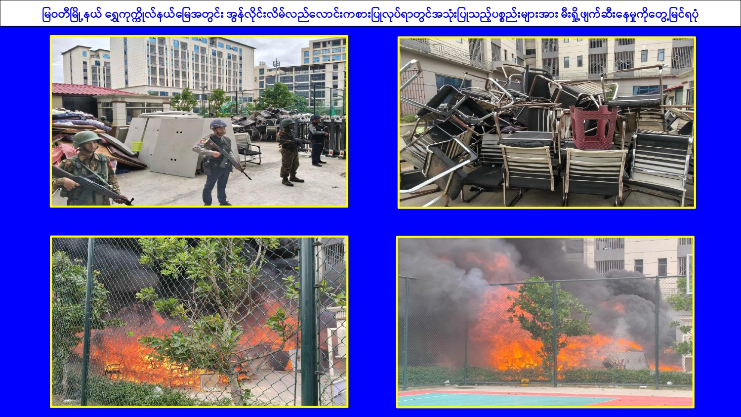 ၎င်းအပြင် မြဝတီမြို့နယ်အတွင်းရှိ KK Park နယ်မြေနှင့် ရွှေကုက္ကိုလ်နယ်မြေတို့၌ အွန်လိုင်းလိမ်လည်လောင်းကစားမှုကျူးလွန်ရာတွင် အသုံးပြုသည့်ပစ္စည်းများအား ထပ်မံ ၍ အသုံးပြုနိုင်ခြင်းမရှိစေရန်အတွက်ယနေ့တွင်လည်း စနစ်တကျ မီးရှို့ဖျက်ဆီးခဲ့ကြောင်း သိရှိရသည်။