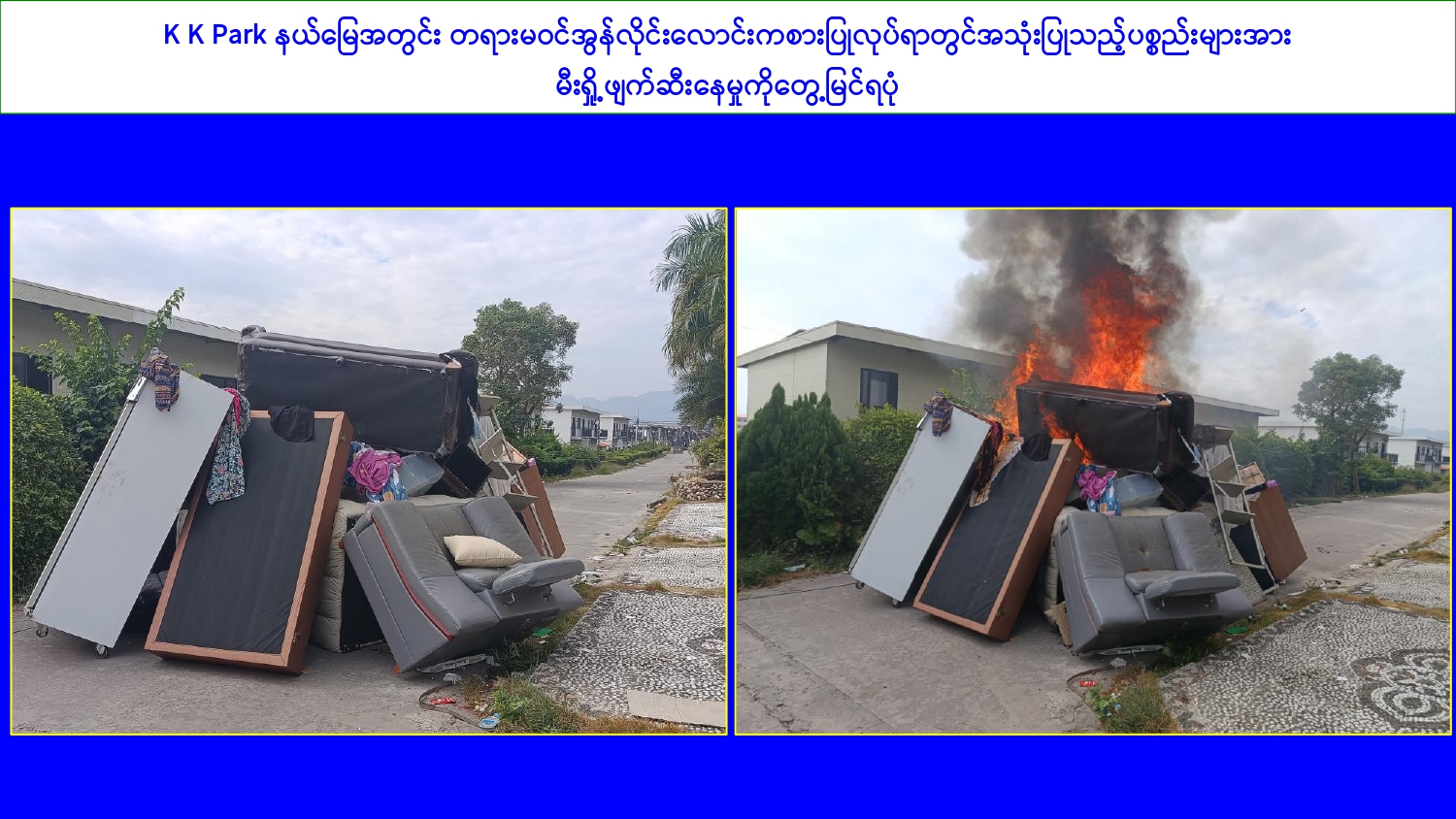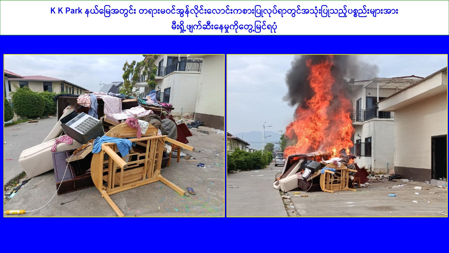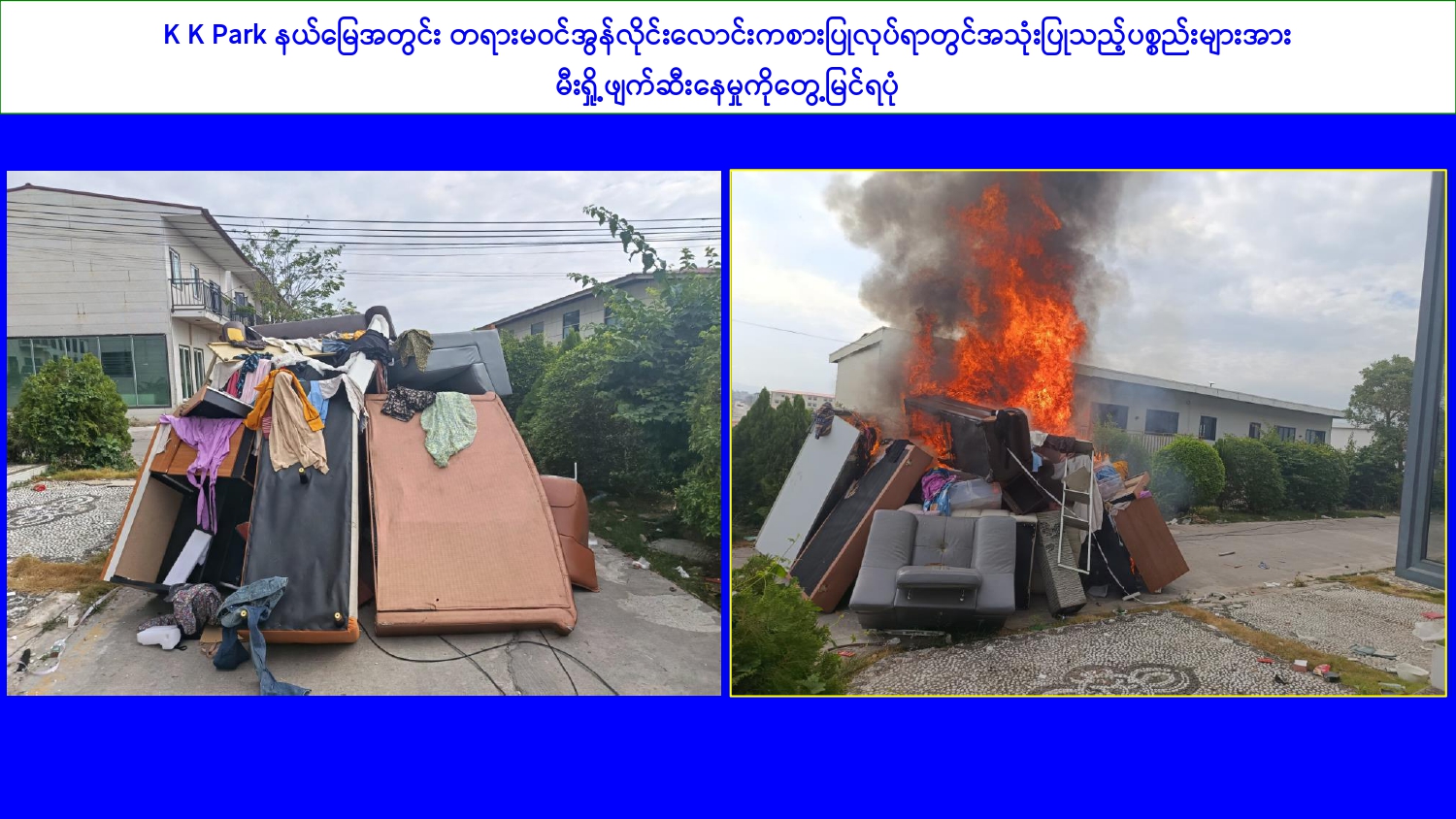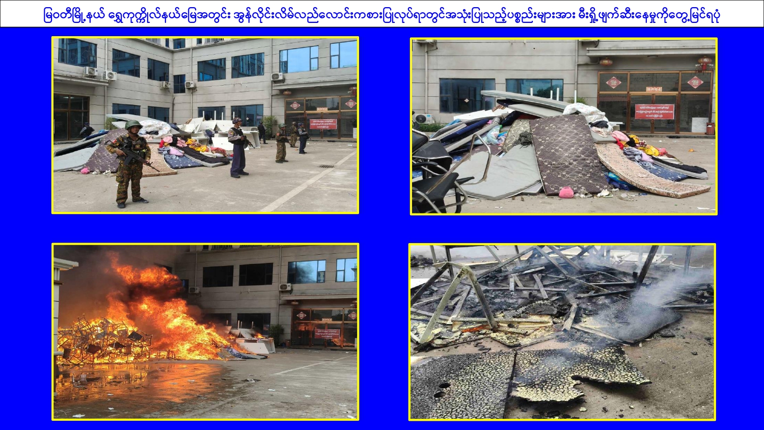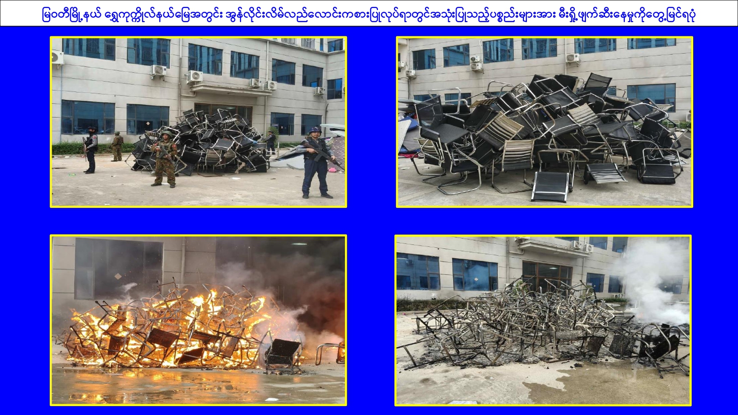 ၎င်းအပြင် မြဝတီမြို့နယ်အတွင်းရှိ KK Park နယ်မြေနှင့် ရွှေကုက္ကိုလ်နယ်မြေတို့၌ အွန်လိုင်းလိမ်လည်လောင်းကစားမှုကျူးလွန်ရာတွင် အသုံးပြုသည့်ပစ္စည်းများအား ထပ်မံ ၍ အသုံးပြုနိုင်ခြင်းမရှိစေရန်အတွက်ယနေ့တွင်လည်း စနစ်တကျ မီးရှို့ဖျက်ဆီးခဲ့ကြောင်း သိရှိရသည်။