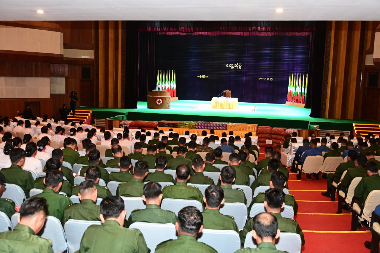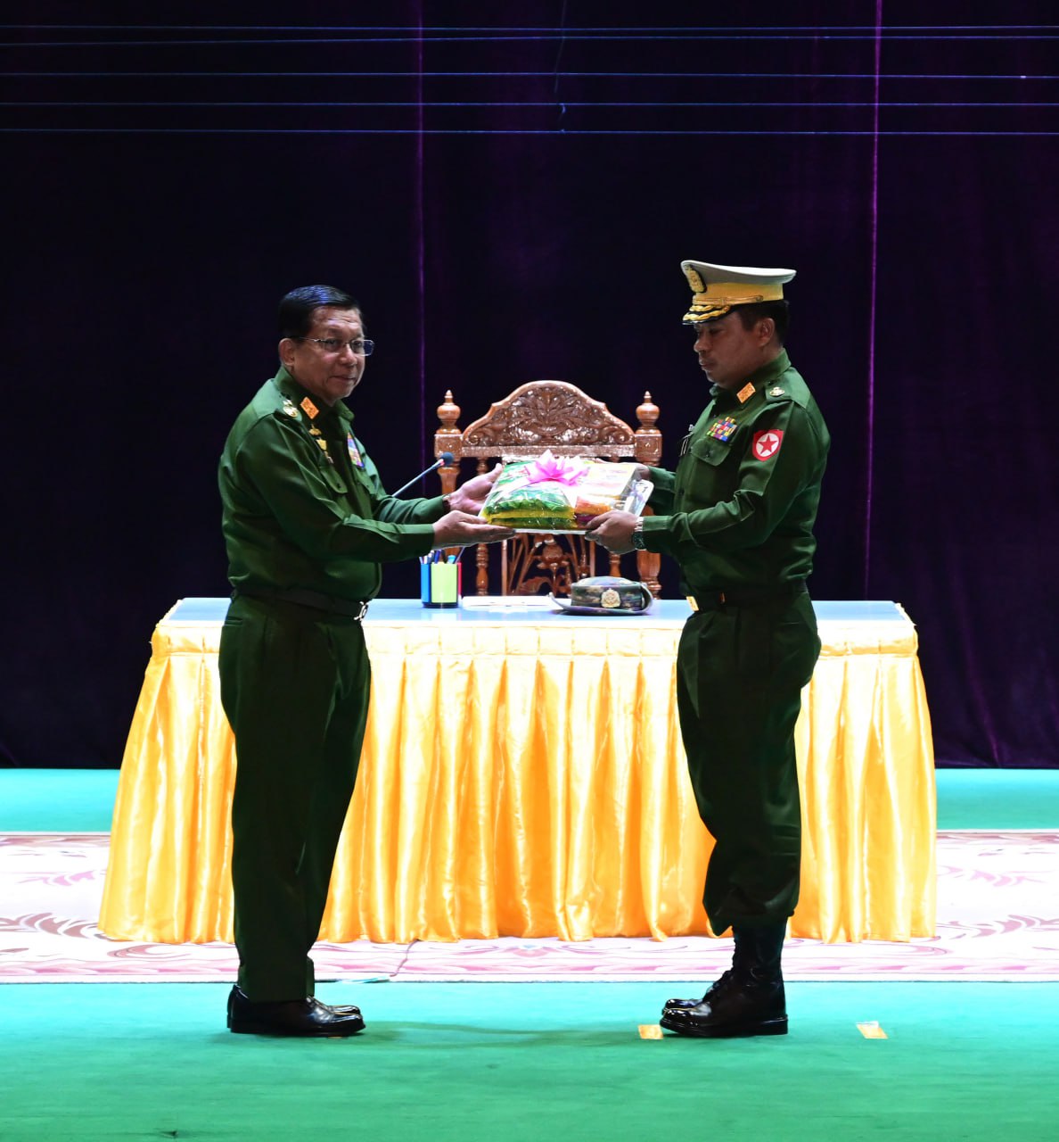 ယင်းနောက် နိုင်ငံတော်လုံခြုံရေးနှင့် အေးချမ်းသာယာရေးကော်မရှင် ဥက္ကဋ္ဌ တပ်မတော်ကာကွယ်ရေးဦးစီးချုပ်က အရာရှိ၊ စစ်သည်၊ မိသားစုများအတွက် စားသောက် ဖွယ်ရာပစ္စည်းများကိုပေးအပ်ရာ တိုင်းမှူးက လည်းကောင်း၊ နိုင်ငံတော်လုံခြုံရေးနှင့် အေးချမ်းသာယာရေးကော်မရှင် ဥက္ကဋ္ဌ တပ်မတော်ကာကွယ်ရေးဦးစီးချုပ်၏ဇနီးက တပ်နယ်မိခင်နှင့် ကလေးစောင်ရှောက်ရေးအသင်းအတွက် ချီးမြှင့်ငွေများကို ပေးအပ် ရာ တိုင်းမှူး၏ ဇနီးက လည်းကောင်း အသီးသီး လက်ခံရယူသည်။