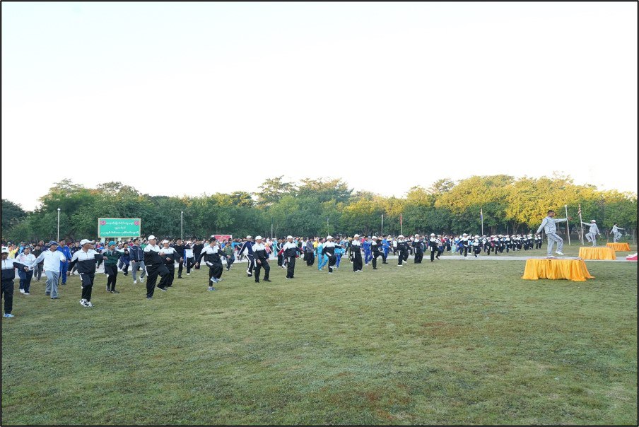 ၂၀၂၅ ခုနှစ်၊ ဒီဇင်ဘာအားကစားလ စုပေါင်းလမ်းလျှောက်ပွဲများကို တိုင်းစစ် ဌာနချုပ်များနှင့် ကွပ်ကဲမှုအောက်တပ်နယ်များ၌လည်း ကျင်းပပြုလုပ်လျက်ရှိရာ ဒီဇင်ဘာ (ဒုတိယပတ်)စုပေါင်းလမ်းလျှောက်ပွဲများကို ယနေ့တွင် နေပြည်တော်တိုင်းစစ်ဌာနချုပ်နှင့် ကွပ်ကဲမှုအောက်တပ်နယ်များအလိုက် စုပေါင်းလမ်းလျှောက်ပွဲများကို နေပြည်တော်ရှိ စစ်ကြောရေးနှင့် တည်းခိုရေးစခန်းစစ်ရေးပြကွင်းနှင့် တပ်နယ်အားကစားကွင်းများ၌ လည်းကောင်း၊ မြောက်ပိုင်းတိုင်းစစ်ဌာနချုပ်၏ စုပေါင်းလမ်းလျှောက်ပွဲကို တိုင်းစစ်ဌာ နချုပ် အားကစားကွင်း၌လည်းကောင်း၊ အရှေ့မြောက်တိုင်းစစ်ဌာနချုပ်၏ စုပေါင်း လမ်းလျှောက်ပွဲကို တိုင်းစစ်ဌာနချုပ် ဘောလုံးကွင်း၌လည်းကောင်း၊ အရှေ့ပိုင်းတိုင်း စစ်ဌာနချုပ်နှင့် ကွပ်ကဲမှုအောက် တပ်နယ်များအလိုက် စုပေါင်းလမ်းလျှောက်ပွဲများကို တိုင်းစစ်ဌာနချုပ် စုပေါင်းတန်းစီကွင်းနှင့် တပ်နယ်စုပေါင်းတန်းစီကွင်းများ၌ လည်း ကောင်း၊ အရှေ့အလယ်ပိုင်းတိုင်းစစ်ဌာနချုပ်နှင့် ကွပ်ကဲမှုတပ်နယ်များအလိုက် စုပေါင်း လမ်းလျှောက်ပွဲများကို တိုင်းစစ်ဌာနချုပ်အားကစားကွင်းနှင့် တပ်နယ်အားကစားကွင်း များ၌ လည်းကောင်း၊ တြိဂံဒေသတိုင်းစစ်ဌာနချုပ်၏ စုပေါင်းလမ်းလျှောက်ပွဲကို တိုင်းစစ်ဌာနချုပ် အားကစားကွင်း၌ လည်းကောင်း၊ အရှေ့တောင်တိုင်းစစ်ဌာနချုပ်၏ စုပေါင်းလမ်းလျှောက်ပွဲကို တိုင်းစစ်ဌာနချုပ် စုပေါင်းတန်းစီကွင်း၌လည်းကောင်း၊ ကမ်းရိုး တန်းဒေသတိုင်းစစ်ဌာနချုပ်၏ စုပေါင်းလမ်းလျှောက်ပွဲကို တိုင်းစစ်ဌာနချုပ် အားကစား ကွင်း၌ လည်းကောင်း၊ ရန်ကုန်တိုင်းစစ်ဌာနချုပ်နှင့် ကွပ်ကဲမှုအောက် တပ်နယ်များ အလိုက် စုပေါင်းလမ်းလျှောက်ပွဲများကို တိုင်းစစ်ဌာနချုပ်စုပေါင်းတန်းစီကွင်းနှင့် တပ်နယ် စုပေါင်းတန်းစီကွင်းများ၌ လည်းကောင်း၊ အနောက်တောင်တိုင်းစစ်ဌာနချုပ်၏ စုပေါင်း လမ်းလျှောက်ပွဲကို တိုင်းစစ်ဌာနချုပ် ပုသိမ်တပ်နယ်ဘောလုံးကွင်း၌လည်းကောင်း၊ အနောက်မြောက်တိုင်းစစ်ဌာနချုပ်နှင့် ကွပ်ကဲမှုတပ်နယ်များအလိုက် စုပေါင်း လမ်းလျှောက်ပွဲများကို တိုင်းစစ်ဌာနချုပ် စုပေါင်းတန်းစီကွင်းနှင့် တပ်နယ်စုပေါင်း တန်းစီကွင်းများ၌လည်းကောင်း၊ အလယ်ပိုင်းတိုင်းစစ်ဌာနချုပ်၏ စုပေါင်းလမ်းလျှောက်ပွဲ ကို မန္တလေးနန်းမြို့တွင်းရှိ မြနန်းစံကျော်ရွှေနန်းတော်ကြီးအနီး၌ လည်းကောင်း၊ တောင်ပိုင်းတိုင်းစစ်ဌာနချုပ်၏ စုပေါင်းလမ်းလျှောက်ပွဲကို တိုင်းစစ်ဌာနချုပ် စစ်ရေး ပြကွင်း၌ လည်းကောင်း အသီးသီး ကျင်းပပြုလုပ်ကြသည်။