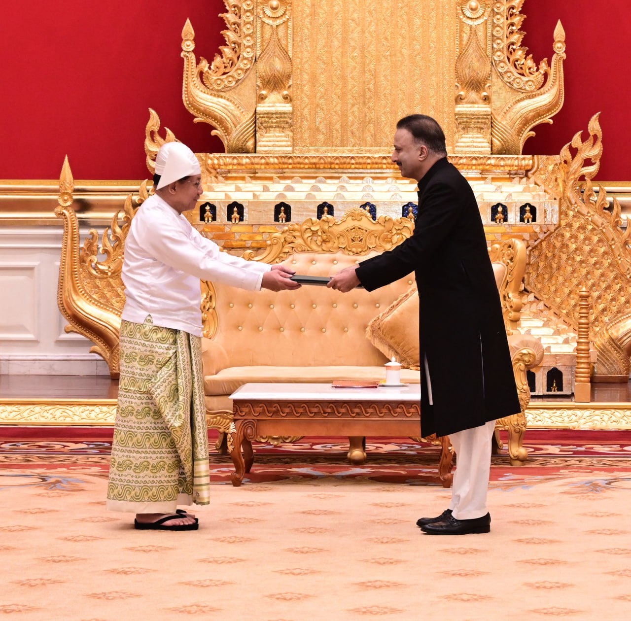 ပြည်ထောင်စုသမ္မတမြန်မာနိုင်ငံတော် ယာယီသမ္မတ နိုင်ငံတော်လုံခြုံရေးနှင့် အေးချမ်းသာယာရေးကော်မရှင်ဥက္ကဋ္ဌ ဗိုလ်ချုပ်မှူးကြီး မင်းအောင်လှိုင်ထံ မြန်မာနိုင်ငံ ဆိုင်ရာ ပါကစ္စတန် နိုင်ငံသံအမတ်ကြီး H.E. Mr. Tariq Karim က ယနေ့နံနက် ၁၀ နာရီတွင် နေပြည်တော်ရှိ အမျိုးသားကာကွယ်ရေးနှင့်လုံခြုံရေးကောင်စီရုံး၊ သံတမန် ဆောင်ဧည့်ခန်းမ၌ ၎င်း၏သံအမတ်ခန့်အပ်လွှာကိုပေးအပ်သည်။