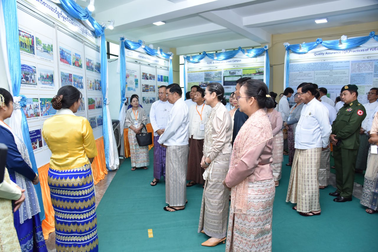 “နိုင်ငံတော် ဖွံ့ဖြိုးဖို့ ပညာရေးကို အားပေးစို့” ဆိုသည့် ဆောင်ပုဒ်နှင့်အညီ ဗလ ငါးတန်နှင့်ပြည်စုံသည့် လူ့စွမ်းအားအရင်းအမြစ်များ မွေးထုတ်နိုင်ရန် ပညာရေး ဖွံ့ဖြိုး တိုးတက်ရေးကို နိုင်ငံတော်အကြီးအကဲက အမြဲလမ်းညွှန်မှာကြားလျက်ရှိပြီး အလေးထား ဆောင်ရွက်ပေးလျက်ရှိကြောင်း၊ တက္ကသိုလ်တွင် နိုင်ငံတကာ အဆင့်မီ ပညာရေးစနစ်ဖြစ်စေရန်အတွက် ကျောင်းသား ဗဟိုပြုစဉ်းစားတွေးခေါ်မှုစနစ်၊ Case Study များနှင့် ပရောဂျက်အခြေပြု သင်ယူမှုစနစ်၊ လက်တွေ့အခြေပြု သင်ယူမှုနည်း စနစ်နှင့် စာကြည့်တိုက်ဗဟိုပြုစနစ်တွေကို အသုံးပြုသင်ကြားနေသည့်အတွက် ကျောင်းသား၊ ကျောင်းသူများအနေဖြင့် သင်ယူလေ့လာမှု အခွင့်အလမ်းကောင်းများ ရရှိနေကြပြီဖြစ်ကြောင်း၊ထို့ပြင်ကျောင်းသား၊ကျောင်းသူများ၏ပညာရည်မြင့်မား ရေးကို ရည်ရွယ်ပြီး စီးပွားထူးချွန်ဆုနှင့် တက္ကသိုလ် ပညာသင်ဆုများကို နိုင်ငံတော်က ပေးအပ်ချီးမြှင့်လျက်ရှိကြောင်း။