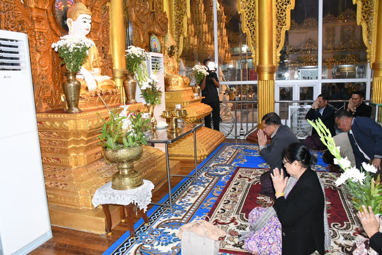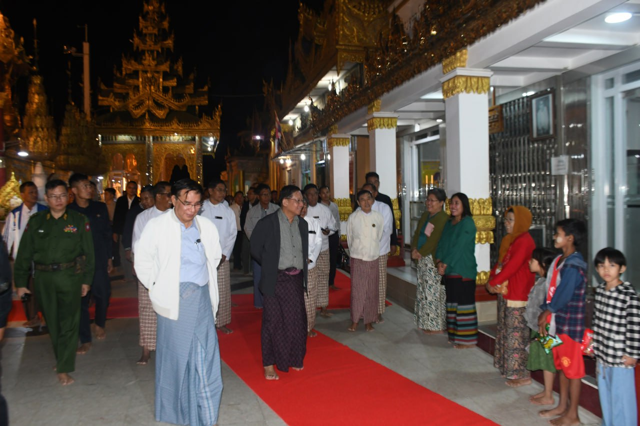 ထို့နောက် နိုင်ငံတော်ယာယီသမ္မတ နိုင်ငံတော်လုံခြုံရေးနှင့်အေးချမ်းသာယာရေး ကော်မရှင်ဥက္ကဋ္ဌ နှင့် ဇနီး၊ အဖွဲ့ဝင်များသည် စေတီတော်မြတ်ကြီးရှိ ဗုဒ္ဓရုပ်ပွား တော်မြတ်အား ဖူးမြော်ကြည်ညို၍ ပန်း၊ ရေချမ်း ကပ်လှူပူဇော်သည်။