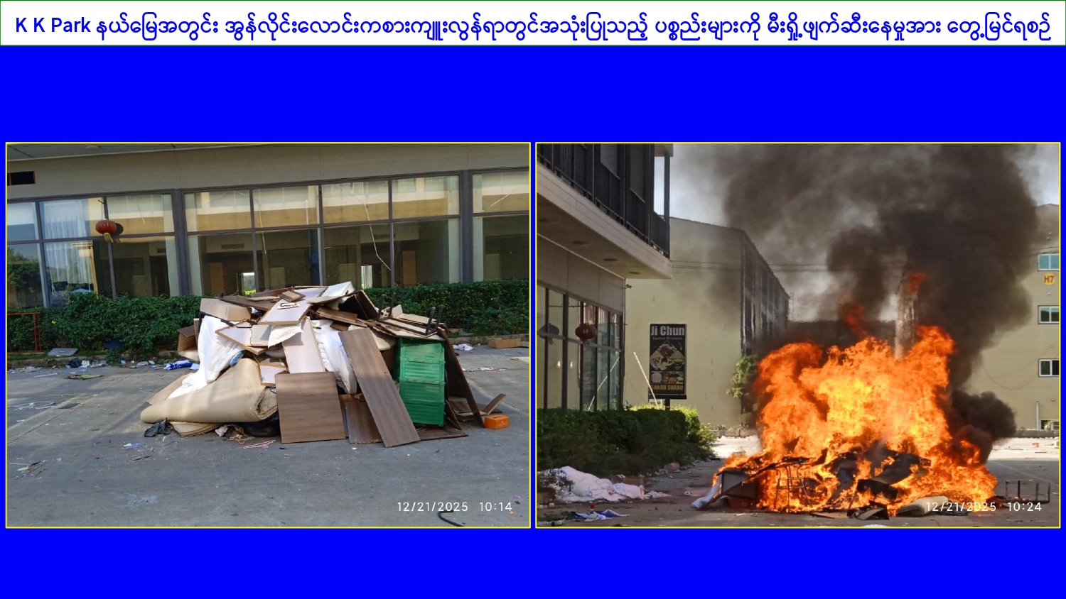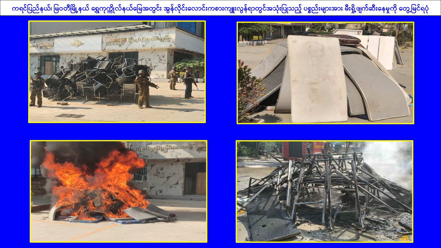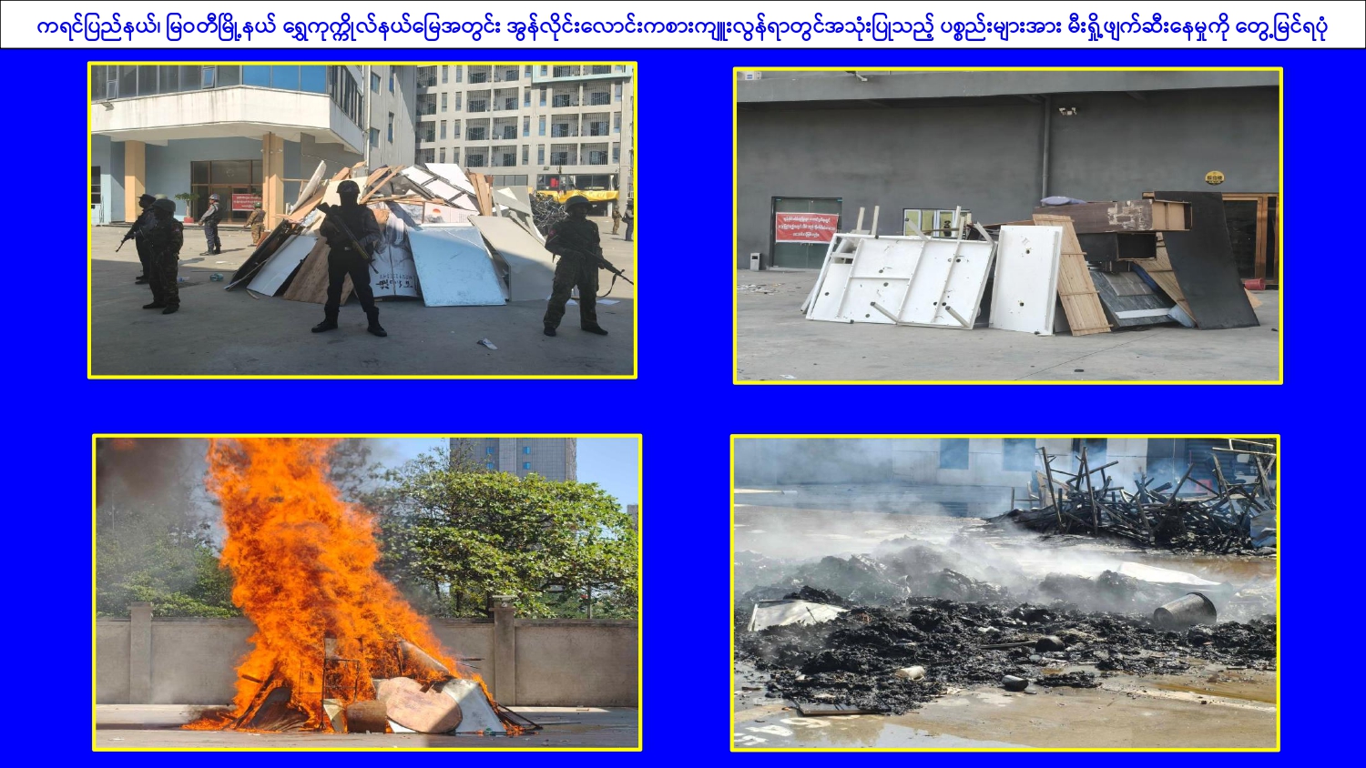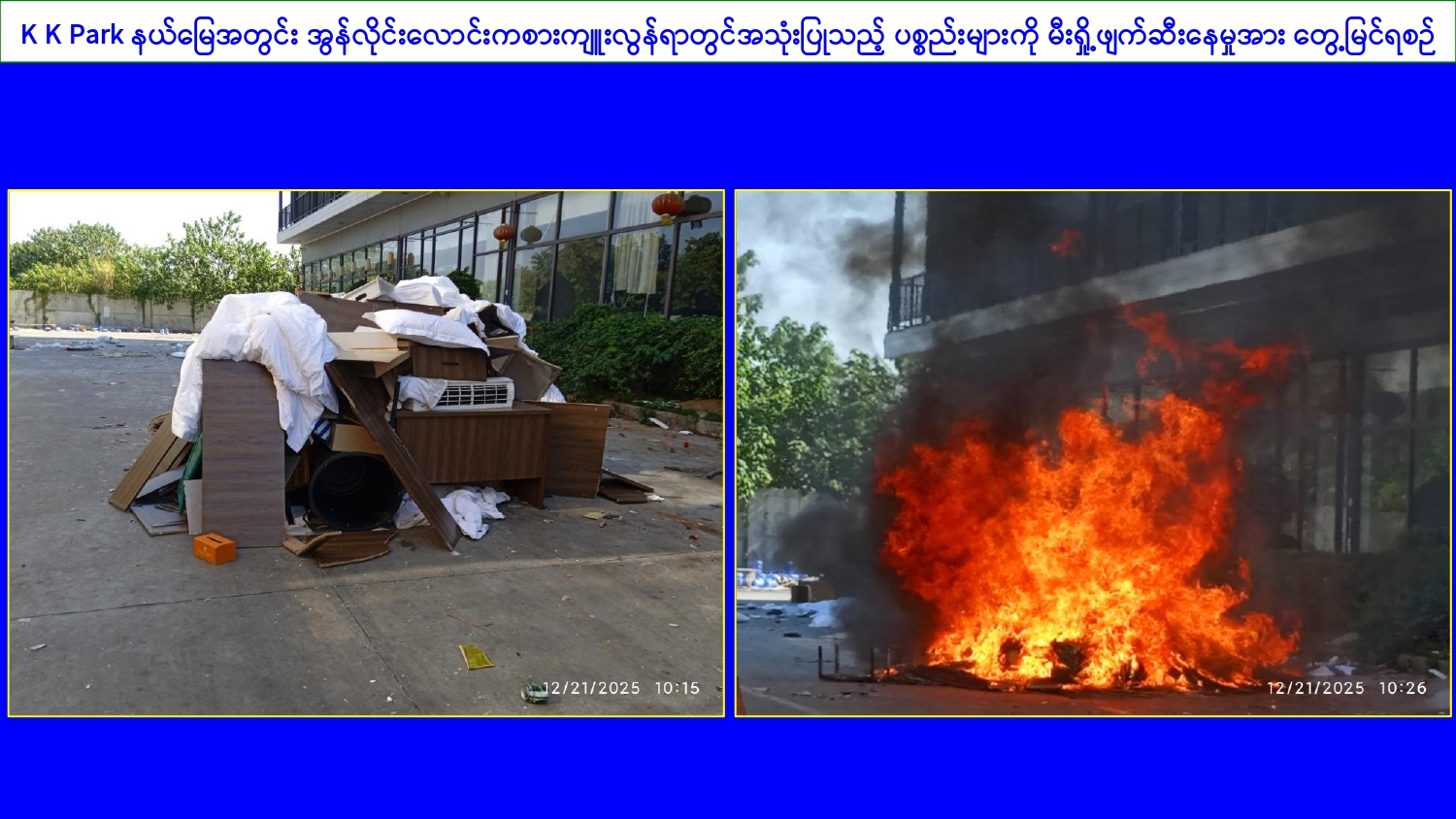 ၎င်းအပြင် မြဝတီမြို့နယ်အတွင်းရှိ KK Park နယ်မြေနှင့် ရွှေကုက္ကိုလ်နယ်မြေတို့၌ အွန်လိုင်းလိမ်လည်လောင်းကစားမှု ကျူးလွန်ရာတွင် အသုံးပြုသည့်ပစ္စည်းများအား ထပ်မံ၍ အသုံးပြုနိုင်ခြင်းမရှိစေရန်အတွက်ယနေ့တွင်လည်း စနစ်တကျ မီးရှို့ဖျက်ဆီး ခဲ့ကြောင်း သိရှိရသည်။