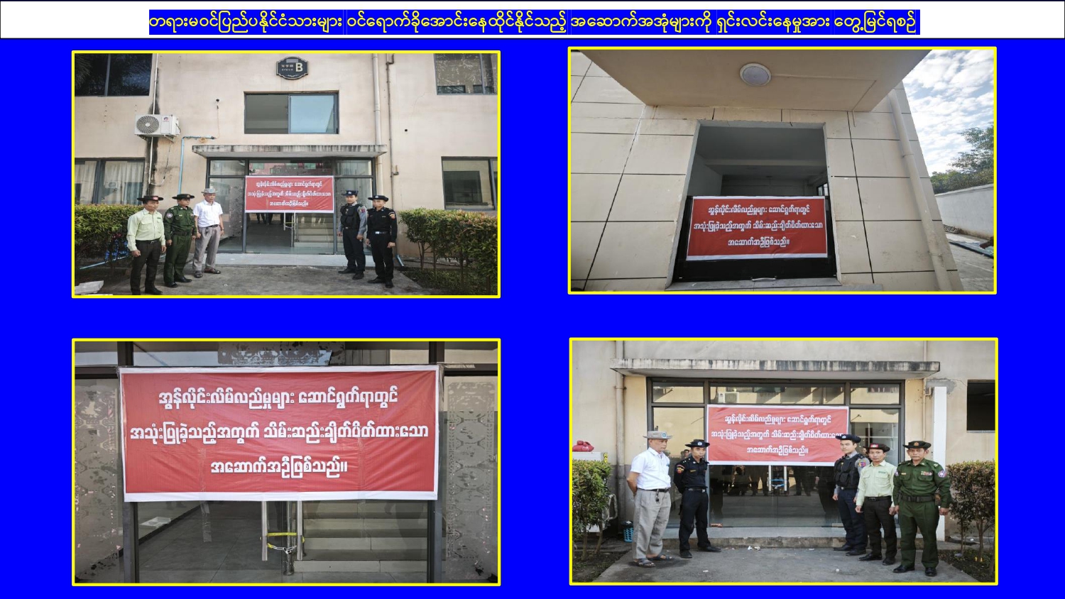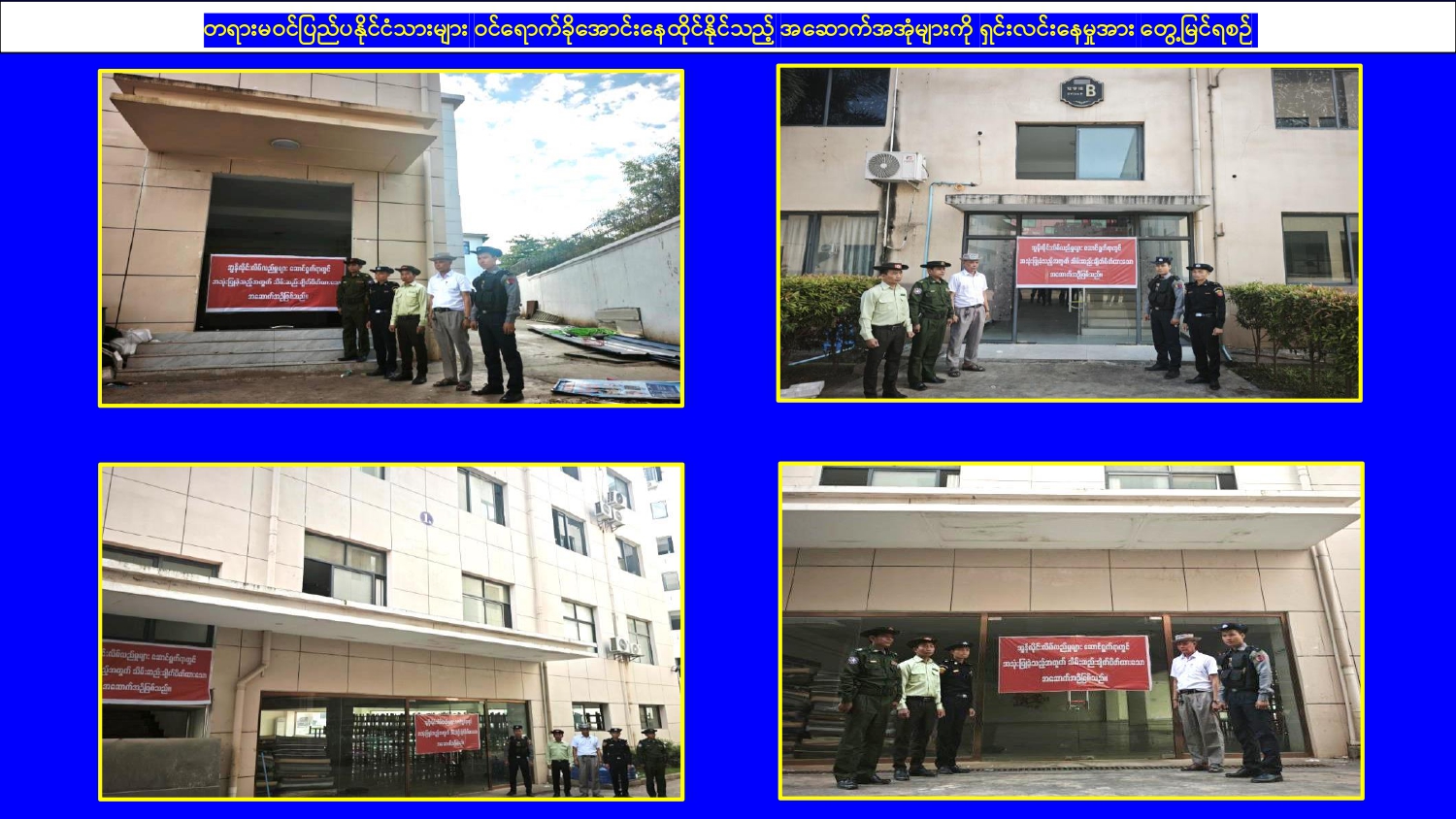 ထို့ပြင် ကရင်ပြည်နယ်၊ မြဝတီမြို့နှင့် ပတ်ဝန်းကျင်ဒေသတစ်ဝိုက်ရှိ အဆောက် အအုံများ၌ တရားမဝင်ပြည်ပနိုင်ငံသားများ ဝင်ရောက်နေထိုင်ခြင်းနှင့်အွန်လိုင်းလိမ်လည် လောင်းကစားမှုများ လုပ်ကိုင်ဆောင်ရွက်ခြင်း မရှိစေရေးအတွက် လုံခြုံရေးတပ်ဖွဲ့ဝင် များ၊ အုပ်ချုပ်ရေးအဖွဲ့အစည်းများနှင့် ဒေသတွင်းတာဝန်ရှိသူများအပါအဝင် အဖွဲ့စုံပါဝင် သည့် ပူးပေါင်းအဖွဲ့ဖြင့် ဒီဇင်ဘာ ၈ ရက်မှ စတင်၍ ရှာဖွေရှင်းလင်းဆောင်ရွက်ခဲ့ရာ ယနေ့တွင်လည်း တရားမဝင် ၁ ထပ်အဆောက်အအုံ ၇ လုံးကို စစ်ဆေးရှာဖွေနိုင်ခဲ့သဖြင့် ယနေ့အချိန်ထိ အဆောက်အအုံစုစုပေါင်း ၄၄၅ လုံးကို စစ်ဆေးရှာဖွေနိုင်ခဲ့ပြီး အဆိုပါ အဆောက်အအုံများအနက်မှ အွန်လိုင်းလောင်းကစားကျူးလွန်ရာတွင်အသုံးပြုသည့် အဆောက်အအုံ ၁၂ လုံးအားစစ်ဆေးဖော်ထုတ်နိုင်ခဲ့ပြီး ယနေ့တွင် အဆောက်အအုံ ၄ လုံး ကို စတင်ချိတ်ပိတ်သိမ်းဆည်းခဲ့သည်။