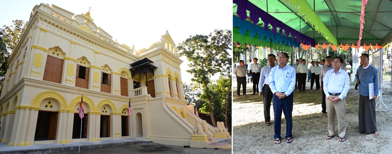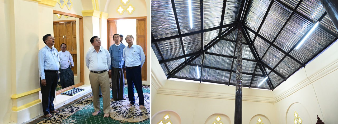 ယင်းနောက် နိုင်ငံတော်ယာယီသမ္မတ နိုင်ငံတော်လုံခြုံရေးနှင့် အေးချမ်းသာယာ ရေးကော်မရှင်ဥက္ကဋ္ဌ နှင့်အဖွဲ့ဝင်များသည် ပြည်မြို့၊ မှော်ဇာကျေးရွာအုပ်စု၊ သရေ ခေတ္တရာ ပျူမြို့ဟောင်းအတွင်းရှိ မန္တလေးငလျင်ကြီးကြောင့် ထိခိုက်ပြိုကျ ပျက်စီးခဲ့ သည့် လက်သည်းရေကန်ကျောင်းတိုက်(ခ)သုံးပန်လှကျောင်းဝင်းအတွင်းရှိ နှစ်ထပ် အုတ်တိုက်အား ရှေးမူလက်ရာမပျက် ပြန်လည်ပြုပြင်မွမ်းမံထားရှိမှုအား သွားရောက် ကြည့်ရှုစစ်ဆေးပြီး တာဝန်ရှိသူများ၏ တင်ပြချက်များအပေါ် လိုအပ်သည်များ လမ်းညွှန်မှာကြားခဲ့ကြောင်းသတင်းရရှိသည်။