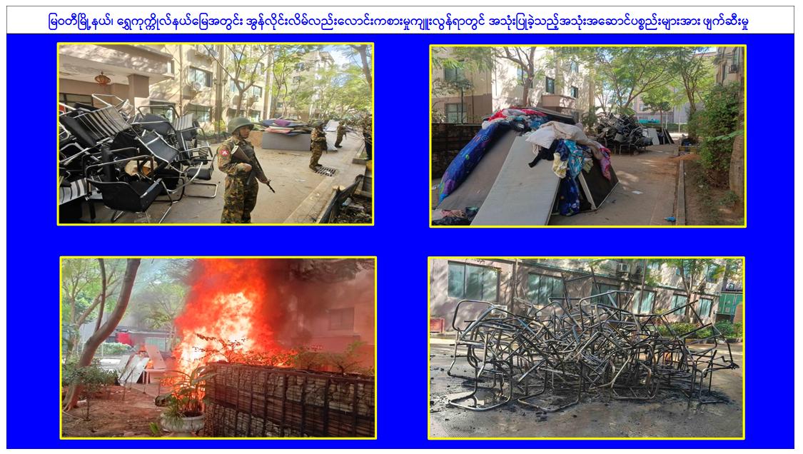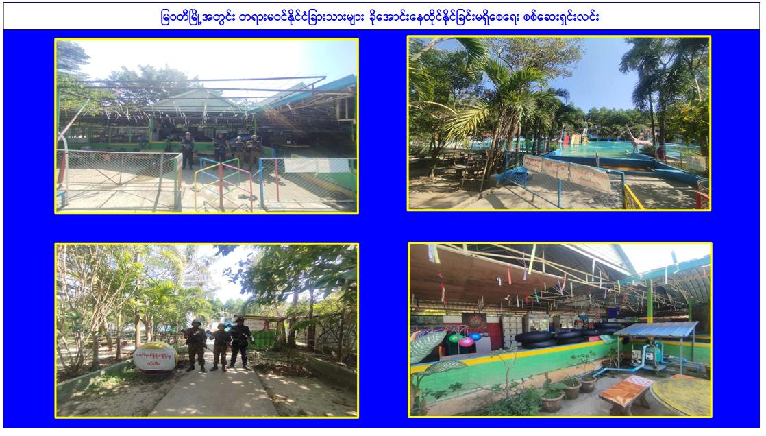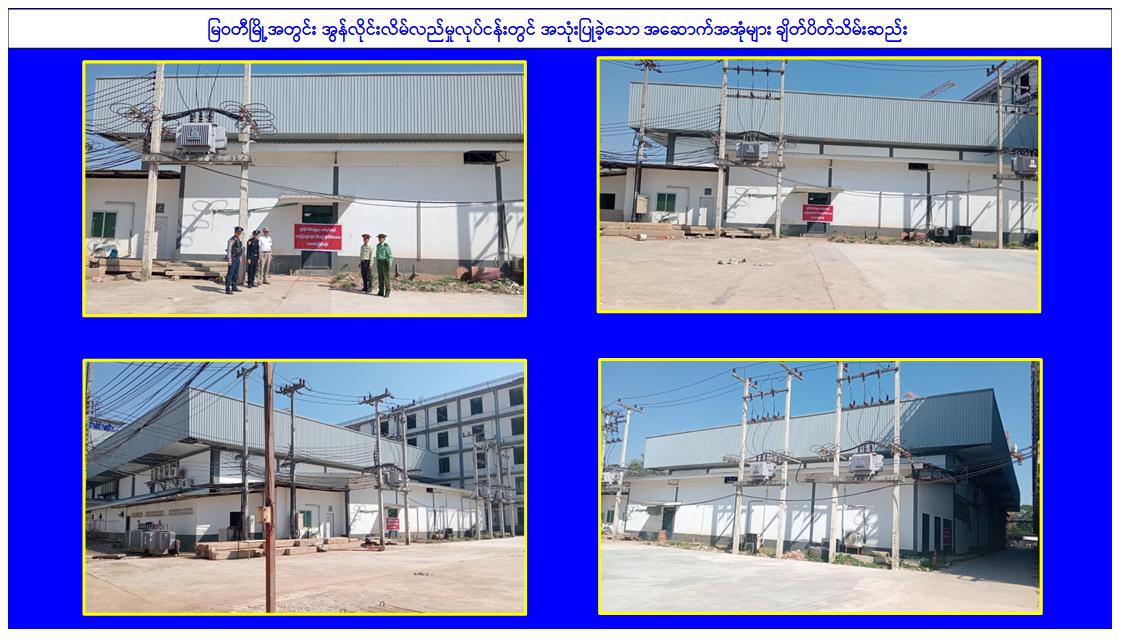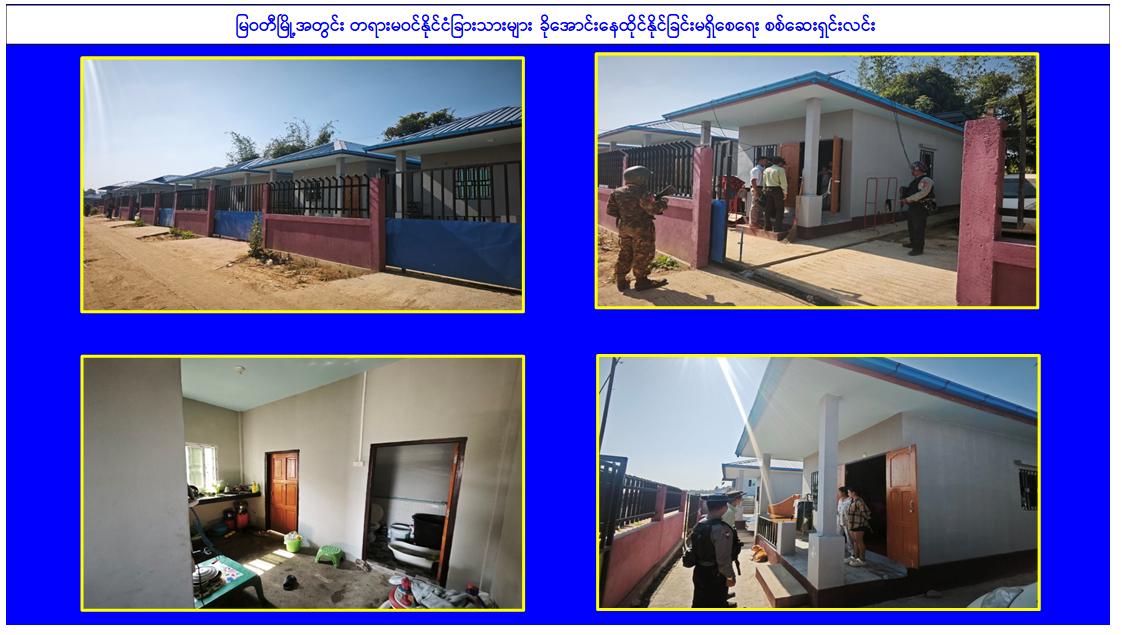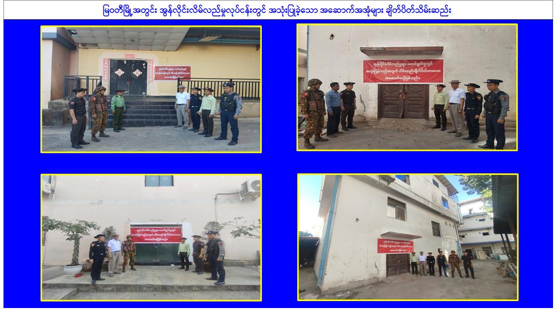ထို့ပြင် ကရင်ပြည်နယ်၊ မြဝတီမြို့နှင့် ပတ်ဝန်းကျင်ဒေသတစ်ဝိုက်ရှိ အဆောက် အအုံများ၌ တရားမဝင်ပြည်ပနိုင်ငံသားများဝင်ရောက်နေထိုင်ခြင်းနှင့် အွန်လိုင်းလိမ်လည် လောင်းကစားမှုများ ကျူးလွန်ခြင်းမရှိစေရေးအတွက် လုံခြုံရေးတပ်ဖွဲ့ဝင်များ၊ အုပ်ချုပ် ရေးအဖွဲ့အစည်းများနှင့် ဒေသတွင်းတာဝန်ရှိသူများအပါအဝင် အဖွဲ့စုံပါဝင်သည့် ပူးပေါင်း အဖွဲ့ဖြင့် ဒီဇင်ဘာ ၈ ရက်မှ စတင်၍ ရှာဖွေရှင်းလင်းခြင်းများ ဆောင်ရွက်ခဲ့ရာ ယနေ့တွင် လည်းအဆောက်အအုံ ၁၉ လုံးကို ထပ်မံရှာဖွေစစ်ဆေးနိုင်ခဲ့ကြောင်း၊ ထိုသို့ရှာဖွေစစ်ဆေး ပြီးစီးသည့်အဆောက်အအုံ ၄၆၄ လုံးအနက် အွန်လိုင်းလိမ်လည်လောင်းကစားမှုများ ကျူး လွန်ရာတွင်အသုံးပြုခဲ့သည့် အဆောက်အအုံ ၁၂ လုံးကို စစ်ဆေးဖော်ထုတ်နိုင်ခဲ့ပြီး အဆိုပါ အဆောက်အအုံများအား ပြန်လည်အသုံးပြုမှုမရှိစေရေးအတွက် ချိပ်ပိတ် သိမ်းဆည်းခြင်းများ ဆောင်ရွက်လျက်လျက်ရှိရာ ယနေ့တွင် အဆိုပါ တရားမဝင် အဆောက်အအုံအားလုံး ကို ချိပ်ပိတ်သိမ်းဆည်းခဲ့ပြီးဖြစ်ကြောင်း သိရှိရသည်။