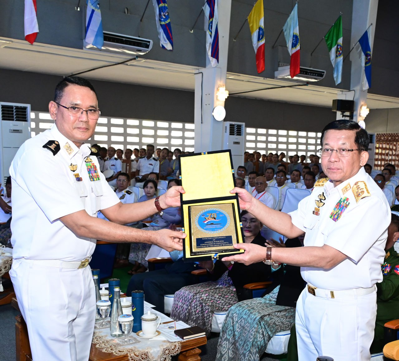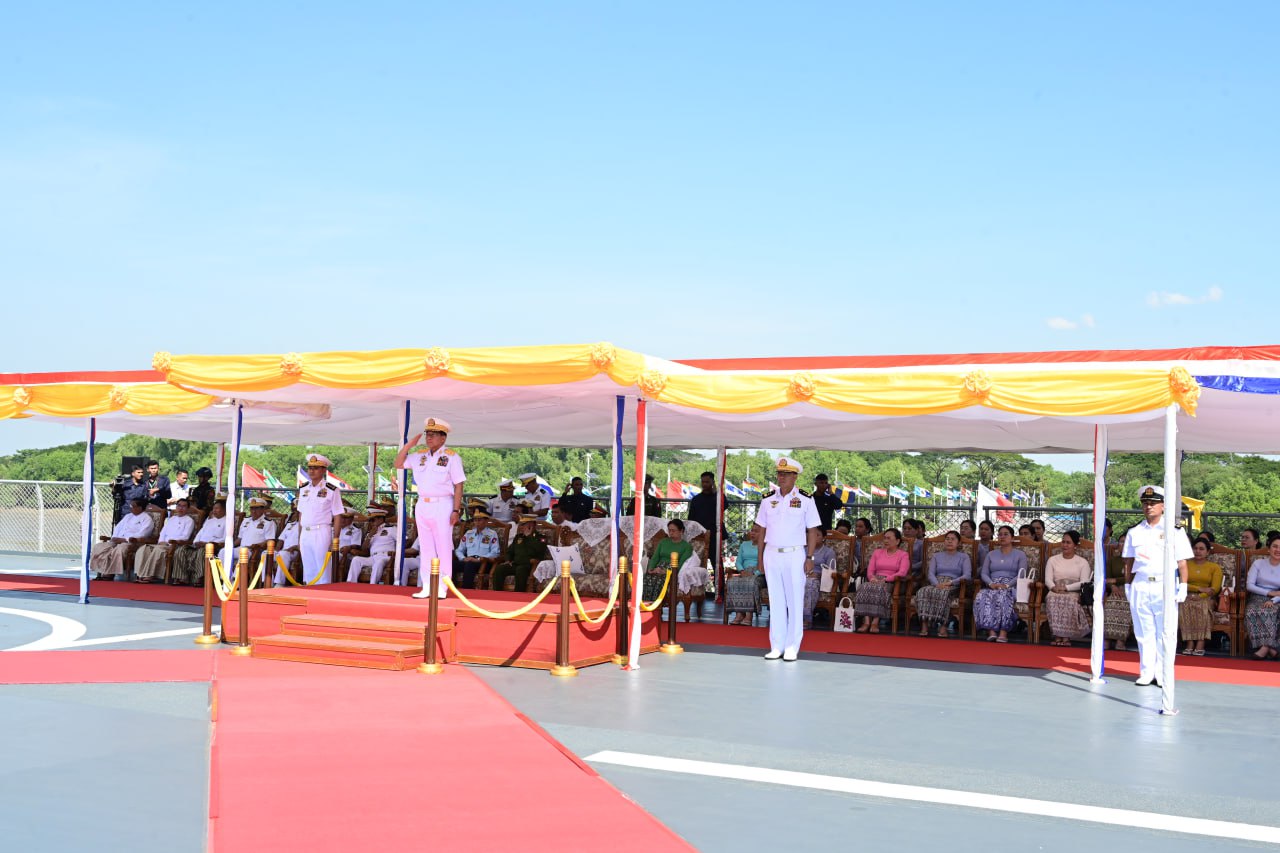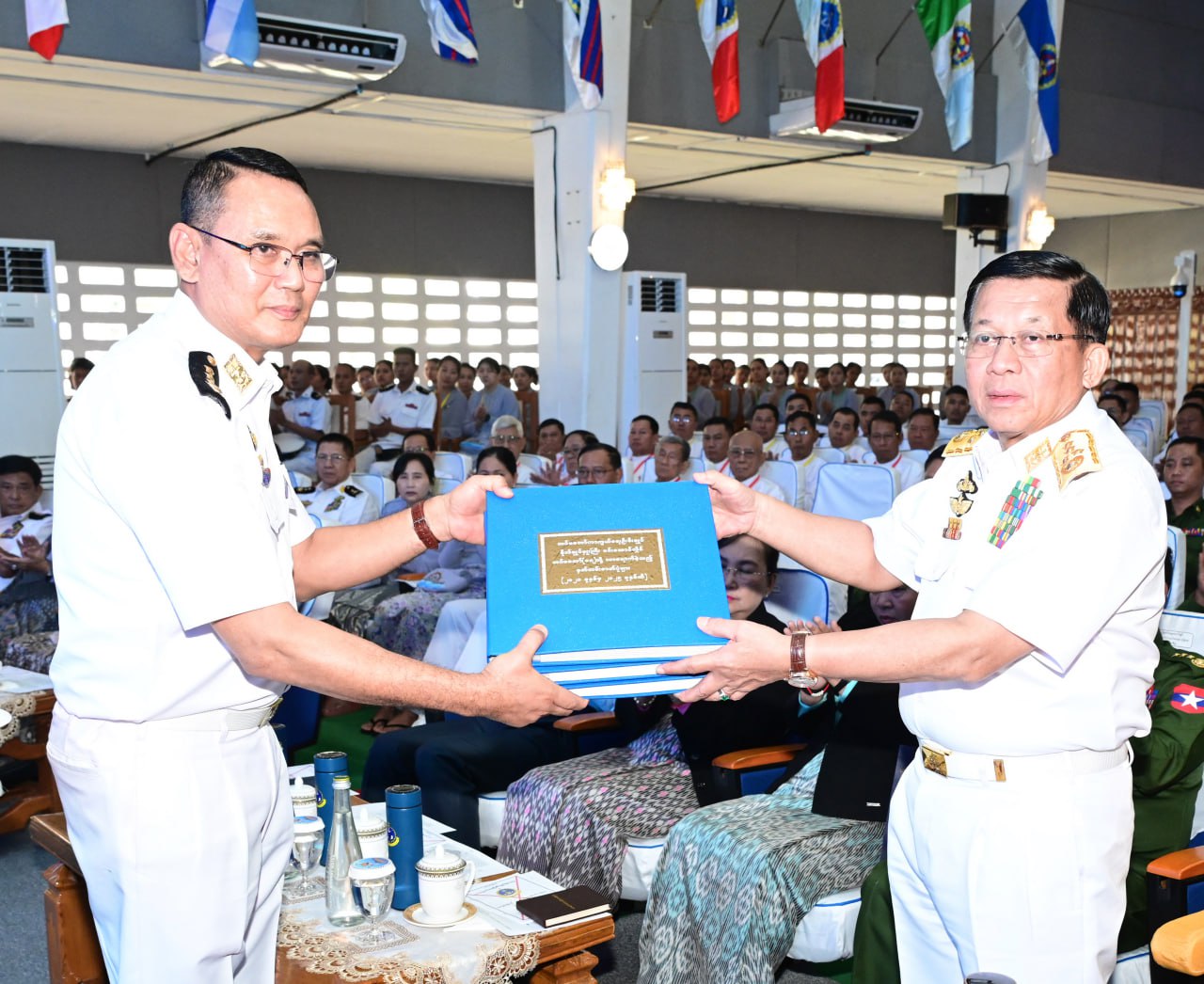 နိုင်ငံတော်လုံခြုံရေးနှင့် အေးချမ်းသာယာရေးကော်မရှင်ဥက္ကဌ တပ်မတော်ကာကွယ်ရေးဦးစီးချုပ် ဗိုလ်ချုပ်မှူးကြီး မင်းအောင်လှိုင် တပ်မတော်(ရေ)ဖွဲ့စည်းတည်ထောင်မှု(၇၈)နှစ်မြောက်နှစ်ပတ်လည်နေ့ အခမ်းအနားသို့ တက်ရောက်ချီးမြှင့်