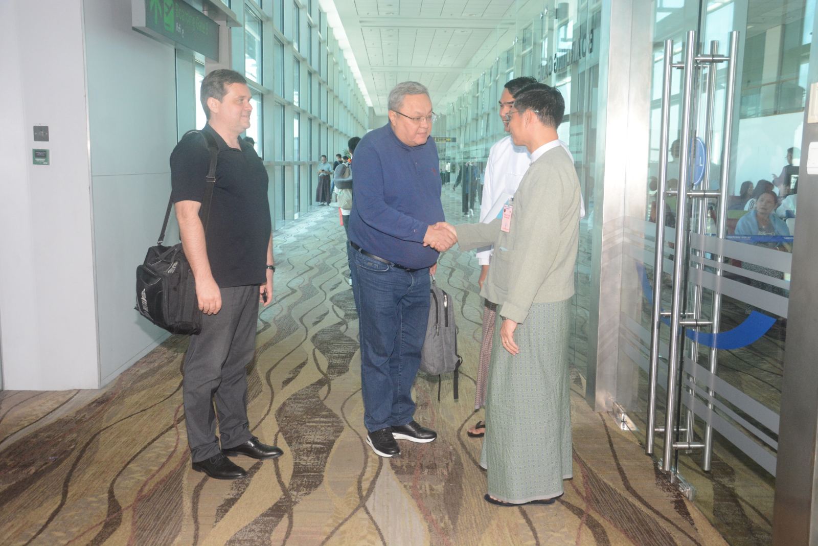 အဆိုပါ အဖွဲ့များအား ရန်ကုန်တိုင်းဒေသကြီးဝန်ကြီးချုပ် ဦးစိုးသိန်းနှင့်တိုင်းဒေသကြီး ဝန်ကြီးများ၊ မြန်မာနိုင်ငံဆိုင်ရာ ရုရှားနိုင်ငံသံရုံးမှ သံအမတ်ကြီး H.E.Mr.Iskander Azizov နှင့်တာဝန်ရှိသူများ၊ ပြည်ထောင်စုရွေးကောက်ပွဲ ကော်မရှင်အဖွဲ့ဝင် ရန်ကုန်တိုင်းဒေသကြီး တာဝန်ခံ၊ ပြည်ထောင်စုရွေးကောက်ပွဲကော်မရှင်ရုံးနှင့် ရန်ကုန်တိုင်းဒေသကြီး ရွေးကောက်ပွဲ ကော်မရှင်အဖွဲ့ခွဲရုံးတို့မှ တာဝန်ရှိသူများက ရန်ကုန်အပြည်ပြည်ဆိုင်ရာ လေဆိပ်တွင် ကြိုဆို နှုတ်ဆက်ခဲ့ကြကြောင်းသိရသည်။