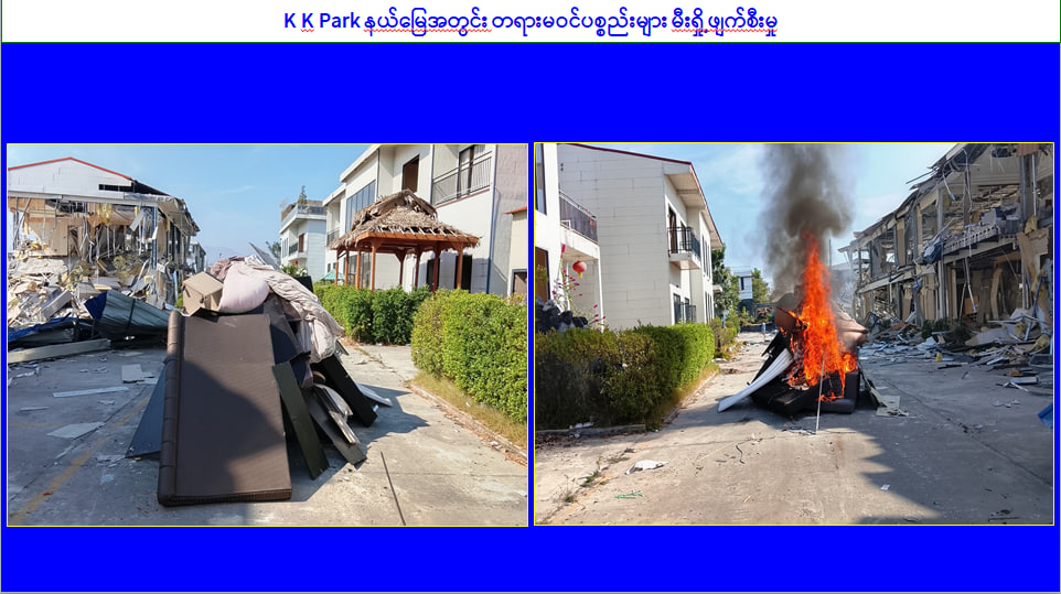 KK Park နယ်မြေအတွင်း အွန်လိုင်းလိမ်လည်လောင်းကစားမှု ကျူးလွန်ရာတွင် အသုံးပြုသည့် တရားမဝင်အဆောက်အအုံ ၅၀၉ လုံးကို စနစ်တကျဖြိုချဖျက်ဆီးပြီးစီး၊အွန်လိုင်းလိမ်လည်လောင်း ကစားမှုကျူးလွန်ရာတွင် အသုံးပြုခဲ့သည့် ပစ္စည်းများအား စနစ်တကျ ဆက်လက်မီးရှို့ဖျက်ဆီး