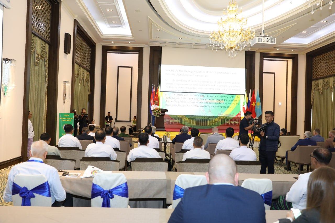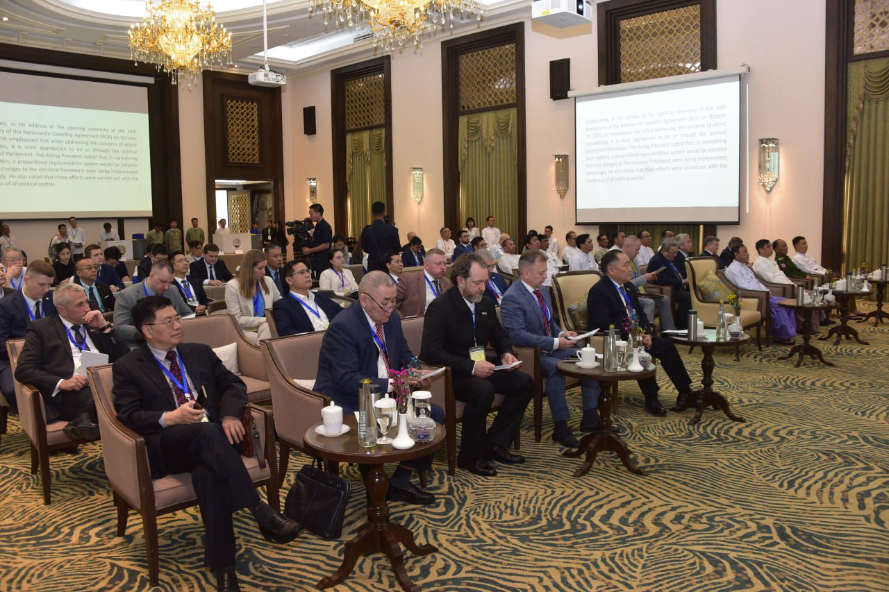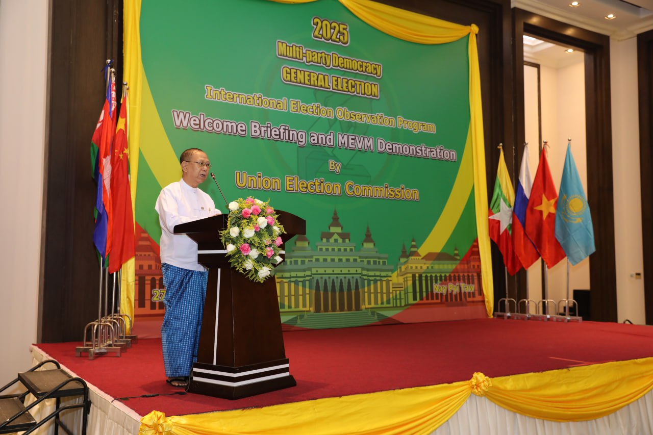 ၂၀၂၅ ခုနှစ် ဒီဇင်ဘာလ ၂၈ ရက်နေ့တွင် စတင်ကျင်းပပြုလုပ်မည့် ပါတီစုံဒီမိုကရေစီ အထွေထွေရွေးကောက်ပွဲသို့ လာရောက်လေ့လာကြသည့် နိုင်ငံတကာရွေးကောက်ပွဲစောင့်ကြည့် လေ့လာသူများအား ကြိုဆိုနှုတ်ခွန်းဆက်စကား ပြောကြားခြင်းနှင့် ရွေးကောက်ပွဲဆိုင်ရာ ရှင်းလင်း ဆွေးနွေးခြင်းအခမ်းအနား ကို ယနေ့မွန်းလွဲ ၁၃:၀၀ နာရီတွင် နေပြည်တော်ရှိ Jasmine Nay Pyi Taw ဟိုတယ်၌ ကျင်းပပြုလုပ်ရာ ပြည်ထောင်စုရွေးကောက်ပွဲကော်မရှင်ဥက္ကဋ္ဌ ဦးသန်းစိုး တက်ရောက်၍ အမှာစကား ပြောကြားသည်။