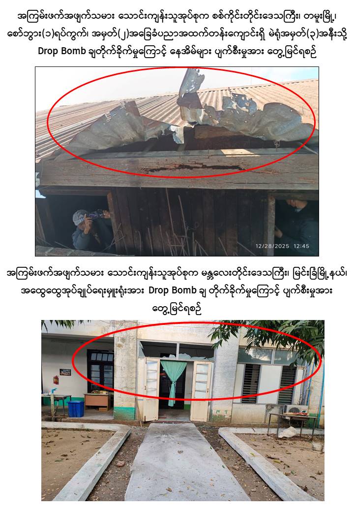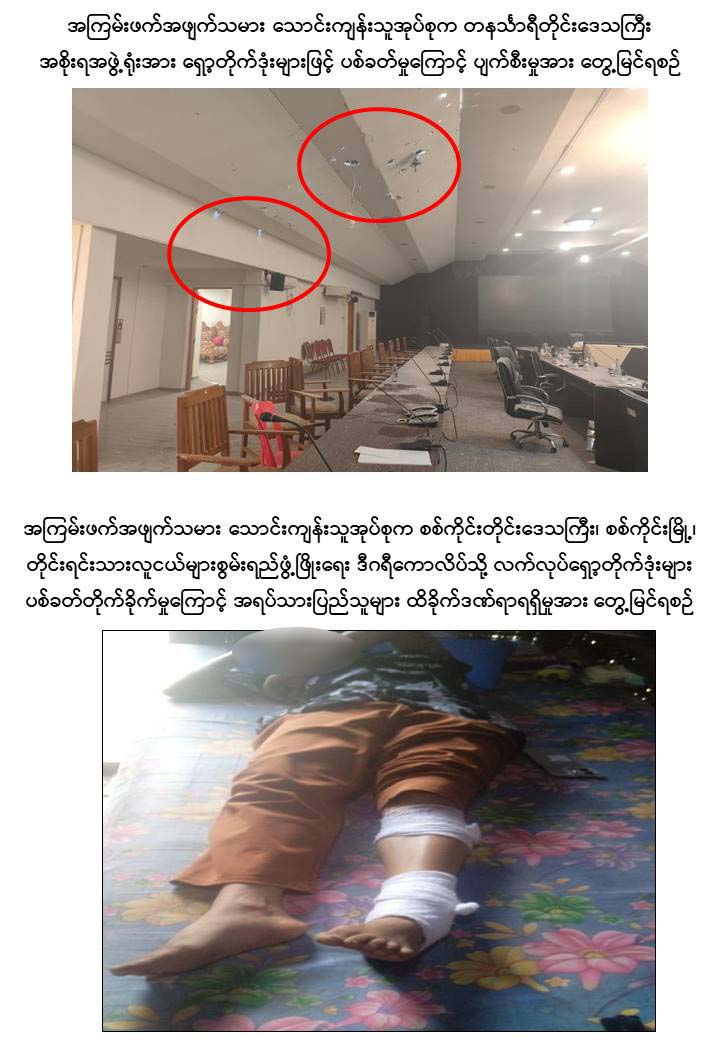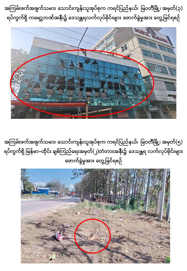 ထို့သို့လုပ်ဆောင်ခဲ့ကြရာ အကြမ်းဖက်အဖျက်သမား သောင်းကျန်းသူအုပ်စုများ အနေဖြင့် ပါတီစုံဒီမိုကရေစီအထွေထွေရွေးကောက်ပွဲအပိုင်း (၁) ကျင်းပခဲ့သည့် ဒီဇင်ဘာ ၂၈ ရက်နေ့၌ ကချင်ပြည်နယ်၊ မြစ်ကြီးနားမြို့၊ ရွှေညောင်ပင်ရပ်ကွက်၊ အမှတ်(၁၁) အခြေခံ ပညာအထက်တန်းကျောင်းရှိ မဲရုံအမှတ်(၈၂)၌ လက်လုပ် အသံမိုင်း ဖောက်ခွဲခြင်း၊ ကယားပြည်နယ်၊ လွိုင်ကော်မြို့၊ ရွှေတောင်ရပ်ကွက်နှင့် မင်္ဂလာရပ်ကွက် အတွင်းသို့ ၁၀၇ မမ လက်လုပ်ဗုံးသီး များဖြင့် ပစ်ခတ်တိုက်ခိုက်ခြင်း၊ ကရင်ပြည်နယ်၊ မြဝတီမြို့၊ အမှတ်(၃)ရပ်ကွက်ရှိ ကမ္ဘောဇဘဏ်အနီးနှင့် အမှတ် (၅)ရပ်ကွက်ရှိ မြန်မာ-ထိုင်း ချစ်ကြည်ရေး အမှတ်(၂) တံတားအနီးတို့၌ ဒေသန္တရလက်လုပ်မိုင်းများ ဖောက်ခွဲခြင်း၊ တနင်္သာရီတိုင်းဒေသကြီး အစိုးရအဖွဲ့ရုံးအား Fixed Wing ဖြင့် ပစ်ခတ်ခြင်း၊ ခမောက်ကြီးမြို့၊ အောင်ချမ်းသာကျေး ရွာအုပ်စု၊ ယုဇနဆီအုန်းကုမ္ပဏီ၊ မာရမ်းပျိုးခြံမှ ဆန္ဒမဲပေးရန် မဲရုံသို့သွားရောက်သည့် ဆီအုန်းခြံလုပ်သား ၁၇၀ ဦးအားတားဆီးခြင်း၊ စစ်ကိုင်းတိုင်းဒေသကြီး၊ ရွှေဘို မြို့၊ အမှတ်(၃)ရပ်ကွက်ရှိ မဲရုံအမှတ်(၂) အနီးသို့ Drop Bomb ချတိုက်ခိုက်ခြင်း၊ စစ်ကိုင်း မြို့၊ တိုင်းရင်းသားလူငယ်များစွမ်းရည်ဖွံ့ဖြိုးရေး ဒီဂရီကောလိပ်သို့ လက်လုပ်ရှော့တိုက်ဒုံး (၆) လုံးဖြင့် ပစ်ခတ်တိုက်ခိုက်ခြင်း၊ တမူးမြို့၊ စော်ဘွား (၁) ရပ်ကွက်၊ အမှတ်(၂)အခြေခံပညာ အထက်တန်းကျောင်းရှိ မဲရုံအမှတ်(၃)အနီးသို့ Drop Bomb ချတိုက်ခိုက်ခြင်း၊ ကသာမြို့မြောက်ဖက်နှင့် တောင်ဖက်မှ လက်နက်ငယ်၊ လက်နက်ကြီးများဖြင့် နှောင့် ယှက်ပစ်ခတ်ခြင်း၊ မန္တလေးတိုင်းဒေသကြီး၊ မတ္တရာမြို့နယ်၊ နန်းတော်ကျွန်းကျေးရွာ အတွင်းနှင့် အောင်မြေသာဇံမြို့ နယ် အတွင်းတို့သို့ ၁၀၇ မမ ရှော့တိုက်ဒုံးများဖြင့် ပစ်ခတ်တိုက်ခိုက်ခြင်း၊ မြင်းခြံမြို့ ထွေ/အုပ်ရုံးအနီး၊ တရားရုံးအနီးနှင့် ဗဟိုအကျဉ်း ထောင်ကြားလမ်းအနီးတို့သို့ Drop Bomb ချတိုက်ခိုက်ခြင်း၊ ညောင်ဦးမြို့နယ်၊ ဇုန်အမှတ် (၉)၊ မဲရုံအမှတ် (၆၄)၊ အခြေခံ ပညာမူလတန်းကျောင်း (ပြွန်)စာသင်ကျောင်းအနီးသို့ လက်နက်ငယ်များဖြင့် လာရောက်နှောက်ယှက်ပစ်ခတ်တိုက်ခိုက်ခြင်း စသည့် အကြမ်း ဖက်အဖျက်အမှောင့်လုပ်ရပ်များကို ဒီဇင်ဘာလ ၂၇ ရက်နေ့ ညနေမှ ၂၈ ရက်နေ့ ညနေ ပိုင်းအထိ အပိုင်း(၁) မဲဆန္ဒနယ် (၁၀၂) မြို့နယ်အနက် မြို့နယ် (၁၁) ခုတို့၌ နှောင့်ယှက် မှုများ ပြုလုပ်ခဲ့ကြရာ ပြည်သူ ၅ ဦးခန့်သာ အနည်းငယ်ထိခိုက်ဒဏ်ရာရမှုဖြစ်ပွားခဲ့သော် လည်း လွတ်လပ်၍တရားမျှတပြီး ဂုဏ်သိက္ခာရှိသည့် ပါတီစုံဒီမိုကရေစီ အထွေထွေရွေး ကောက်ပွဲသို့ နှောင့်ယှက်ပစ်ခတ်မှုနှင့် ခြိမ်းခြောက်မှုများကြားမှ အပိုင်း (၁) ကျင်းပသည့် (၁၀၂) မြို့န