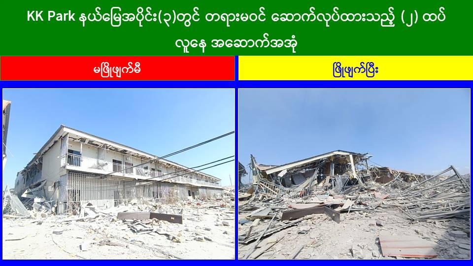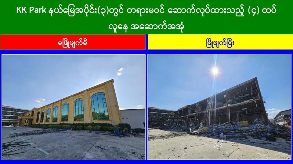 KK Park နယ်မြေအတွင်း အွန်လိုင်းလိမ်လည်လောင်းကစားမှု ကျူးလွန်ရာတွင် အသုံးပြုသည့် တရားမဝင်အဆောက်အအုံ ၅၁၉ လုံးကို စနစ်တကျဖြိုချဖျက်ဆီးပြီးစီး၊