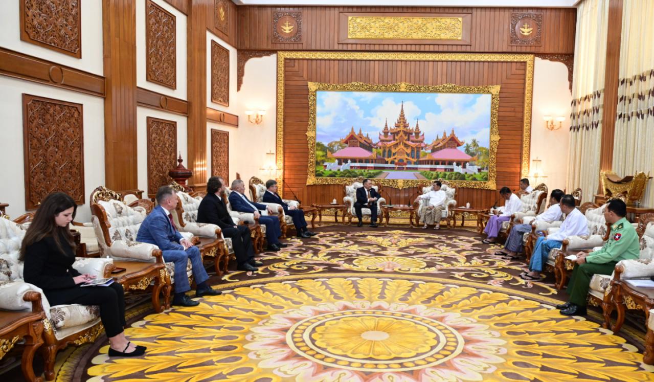 ပြည်ထောင်စုသမ္မတ မြန်မာနိုင်ငံတော်ယာယီသမ္မတ နိုင်ငံတော်လုံခြုံရေးနှင့် အေးချမ်းသာယာရေးကော်မရှင်ဥက္ကဋ္ဌ ဗိုလ်ချုပ်မှူးကြီး မင်းအောင်လှိုင် ထံ ရုရှားဖက်ဒရေးရှင်းနိုင်ငံ၊ ဒူးမားလွှတ်တော် ဒုတိယဥက္ကဋ္ဌ ဦးဆောင်သည့် ကိုယ်စားလှယ်အဖွဲ့က လာရောက်ဂါရဝပြုတွေ့ဆုံ