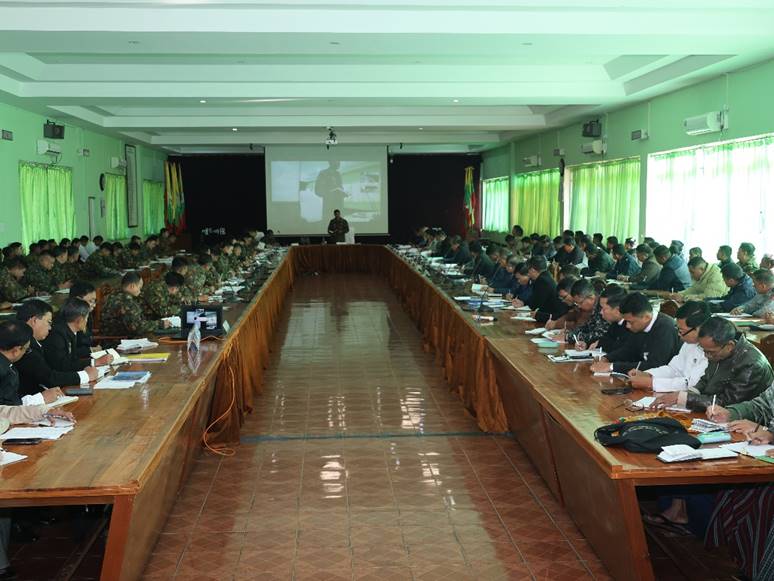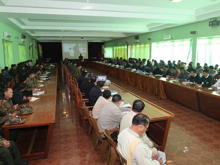 ရှမ်းပြည်နယ်(အရှေ့ပိုင်း)၊ မြို့နယ်များ၌ ဒီဇင်ဘာလ ၂၈ ရက်နေ့တွင် ကျင်းပခဲ့သည့် ၂ဝ၂၅ ခုနှစ်၊ ပါတီစုံဒီမိုကရေစီအထွေထွေရွေးကောက်ပွဲ၊ အပိုင်း (၁)၏ အားနည်းချက်၊ အားသာချက်များအား ပြန်လည်သုံးသပ်ခြင်းနှင့် ရွေးကောက်ပွဲ အပိုင်း (၂) ကျင်းပရန် ကျန်ရှိနေသေးသော မြို့နယ်များ၌ အောင်မြင်စွာကျင်းပနိုင်ရေး လုပ်ငန်းညှိနှိုင်းအစည်းအဝေးကို ယနေ့နံနက်ပိုင်းတွင် တြိဂံဒေသတိုင်းစစ်ဌာနချုပ် အစည်းအဝေးခန်းမ၌ ပြုလုပ်ခဲ့ရာ တိုင်းမှူး ဗိုလ်ချုပ် စိုးလှိုင်နှင့် အဖွဲ့ဝင်များ၊ ပြည်နယ်၊ ခရိုင်၊ မြို့နယ်အဆင့် ဌာနဆိုင်ရာတာဝန်ရှိသူများ၊ ရှမ်းပြည်နယ်(အရှေ့ပိုင်း) ရွေးကောက် ပွဲကော်မရှင်အဖွဲ့ခွဲမှ တာဝန်ရှိသူများ၊ ဌာနေပြည်သူ့စစ်အဖွဲ့ဝင်များနှင့် ဖိတ်ကြားထားသူ များ တက်ရောက်ကြသည်။
