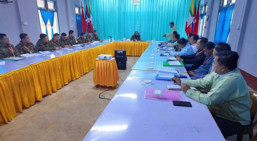 ရှမ်းပြည်နယ်(မြောက်ပိုင်း)အတွင်း ၂၀၂၅ ခုနှစ်၊ ပါတီစုံဒီမိုကရေစီအထွေထွေ ရွေးကောက်ပွဲအပိုင်း(၁)အောင်မြင်စွာ ကျင်းပပြီးနောက် အားနည်းချက်/အားသာချက် အပေါ် သုံးသပ်ညှိနှိုင်းအစည်းအဝေးကို ယနေ့ညနေပိုင်းတွင် အရှေ့မြောက်တိုင်းစစ်ဌာ နချုပ် အစည်းအဝေးခန်းမ၌ပြုလုပ်ရာ တိုင်းမှူး ဗိုလ်မှူးချုပ် အေးမင်းဦးနှင့် အဖွဲ့ဝင်များ၊ ရှမ်းပြည်နယ်(မြောက်ပိုင်း)၊ ရွေးကောက်ပွဲကော်မရှင်အဖွဲ့ခွဲမှ တာဝန်ရှိသူများနှင့် မြို့နယ်ဌာနဆိုင်ရာတာဝန်ရှိသူများ တက်ရောက်ကြသည်။