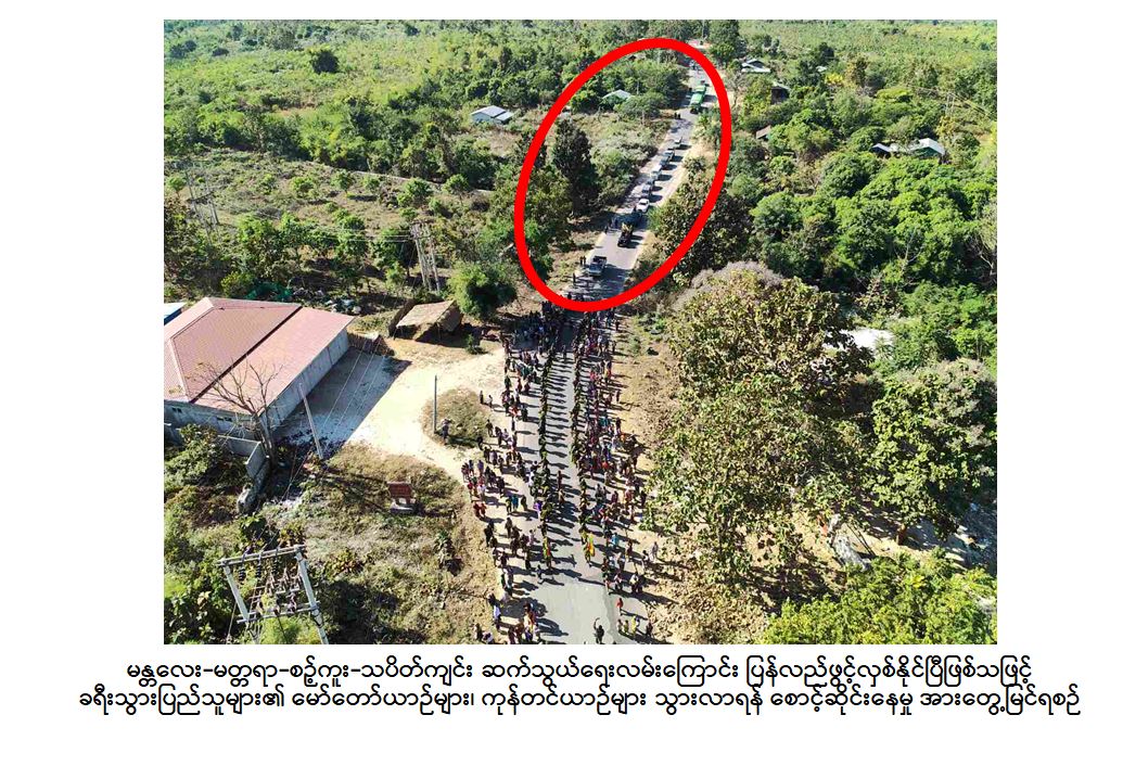 တပ်မတော်စစ်ကြောင်းများအနေဖြင့် သပိတ်ကျင်း-မိုးကုတ် ဒေသအနီးဝန်း ကျင်ရှိ ဒေသခံပြည်သူများ၏ လူမှုစီးပွားဘဝများလုံခြုံစေရေး ကုန်စည်ကူးသန်းရောင်း ဝယ်မှုများလွယ်ကူလျင်မြန်ချောမွေ့လာစေရေးနှင့် နိုင်ငံစီးပွားတိုးတက်ရေး အထောက် အကူပြုသည့် မြေပေါ်/မြေအောက် သယံဇာတများအား စနစ်တကျစီမံ ဆောင်ရွက် နိုင်ရေးတို့အတွက် သပိတ်ကျင်း-မိုးကုတ် ဆက်သွယ်ထားသည့်လမ်းကြောင်းအား အမြန်ဆုံး ဖွင့်လှစ်နိုင်ရေး လိုအပ်သည့်နယ်မြေလုံခြုံရေးလုပ်ငန်းများကို ဆက်လက် ဆောင်ရွက် သွားမည်ဖြစ်ကြောင်း မြဝတီရုပ်မြင်သံကြားမှ သတင်းကောင်းပါးအပ် ပါသည်။
