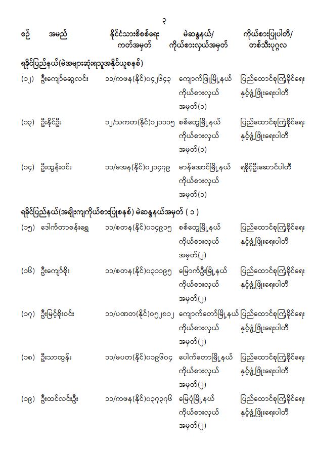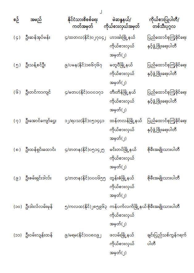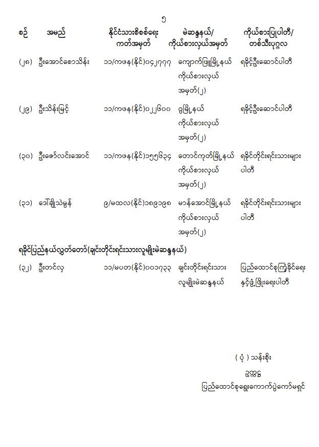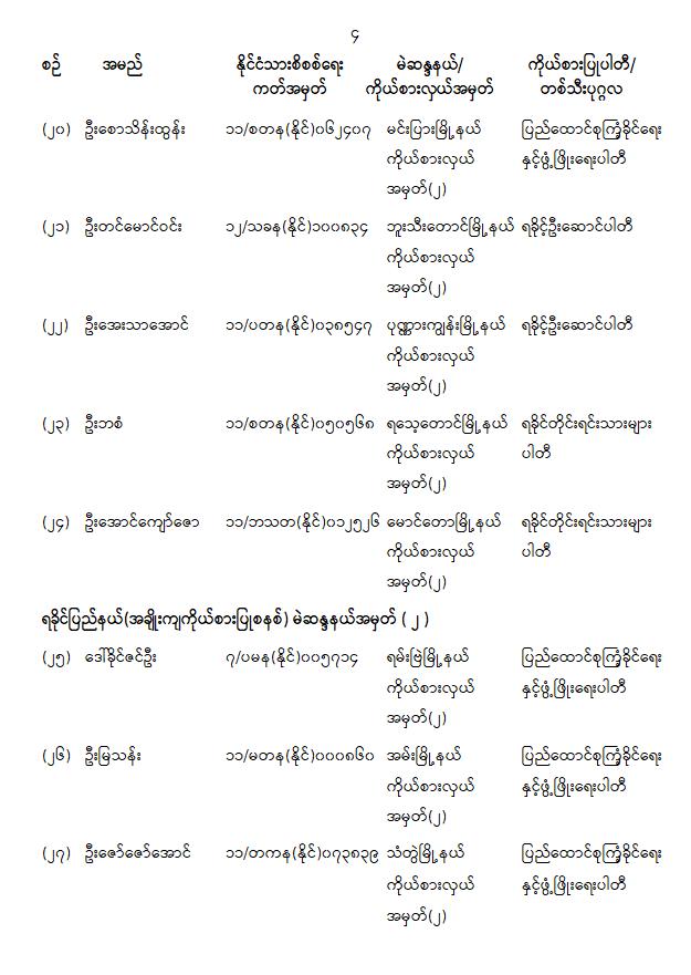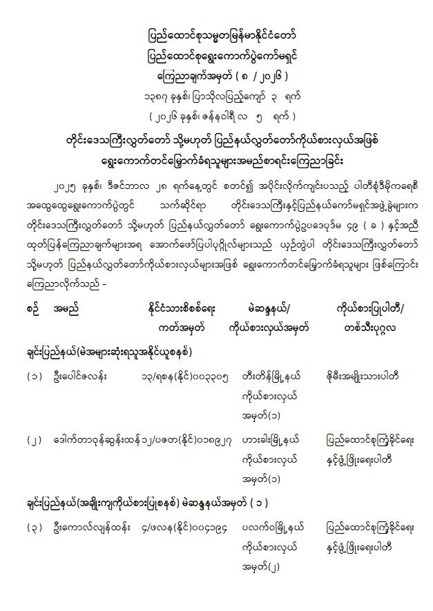 တိုင်းဒေသကြီးလွှတ်တော် သို့မဟုတ် ပြည်နယ်လွှတ်တော်ကိုယ်စားလှယ်အဖြစ် ရွေးကောက်တင်မြှောက်ခံရသူများအမည်စာရင်းကြေညာခြင်း