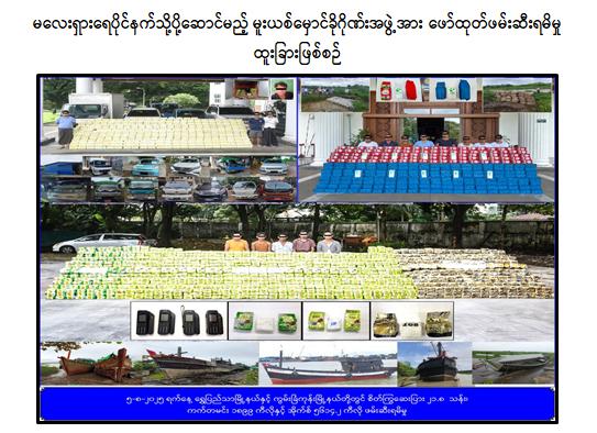 မြန်မာနိုင်ငံအနေဖြင့် မူးယစ်ဆေးဝါးတားဆီးနှိမ်နင်းရေးလုပ်ငန်းများကို အမျိုးသားရေး တာဝန်တစ်ရပ်အနေဖြင့်သတ်မှတ်၍ တားဆီးနှိမ်နင်းရေးအဖွဲ့များဖြစ်သည့် တပ်မတော်၊ မြန်မာနိုင်ငံ ရဲတပ်ဖွဲ့နှင့် အကောက်ခွန်ဦးစီးဌာနတို့မှ ဆက်စပ်ဌာနဆိုင်ရာများနှင့်ပူးပေါင်း၍ တစ်နိုင်ငံလုံး လွှမ်းခြုံသည့် မူးယစ်ဆေးဝါးသတင်းရယူဖော်ထုတ်ဖမ်းဆီးရမိရေး စီမံချက်ချမှတ်ပြီး တားဆီးနှိမ်နင်းရေး လုပ်ငန်းများကို အရှိန်အဟုန်မြှင့်ဆောင်ရွက်ခဲ့ရာ ၂၀၂၅ ခုနှစ်အတွင်း မူးယစ်ဆေးဝါးအမှုပေါင်း ၅၃၇၀ မှုမှ တရားခံ ၇၅၆၂ ဦးတို့ကို ငွေကျပ် ၁၇၆၁ ဒသမ ၃၂၄ ဘီလီယံတန်ဖိုးရှိ ဘိန်း ၁ တန်ကျော်၊ ဘိန်းဖြူ ၂ ဒသမ ၁ တန်ကျော်၊ စိတ်ကြွရူးသွပ်ဆေးပြား ၃၇၇ သန်းကျော်၊ အိုက်စ် ၃၇ ဒသမ ၈ တန်ကျော်၊ ဘိန်းစာရွက် ၁ ဒသမ ၅ တန်ကျော်၊ HAPPY WATER ၂၀၄ ကီလိုကျော်၊ ကက်တမင်း ၁၅ တန်ကျော် အပါအဝင် အခြားမူးယစ်ဆေးဝါးများ၊ မောင်းပြန်ရိုင်ဖယ် ၂ လက်၊ ပစ္စတိုသေနတ် ၄၀ လက်၊ လုပ်သေနတ် ၂ လက်၊ ကျည်မျိုးစုံ ၂,၇၆၄ တောင့်၊ လက်ပစ်ဗုံး ၅ လုံးနှင့် ဒီတိုနေတာမျိုးစုံ ၁၈၇,၄၀၀ ချောင်း တို့နှင့်အတူ ဖမ်းဆီးရမိခဲ့ကြောင်း မြန်မာနိုင်ငံရဲတပ်ဖွဲ့မှ သိရှိရသည်။