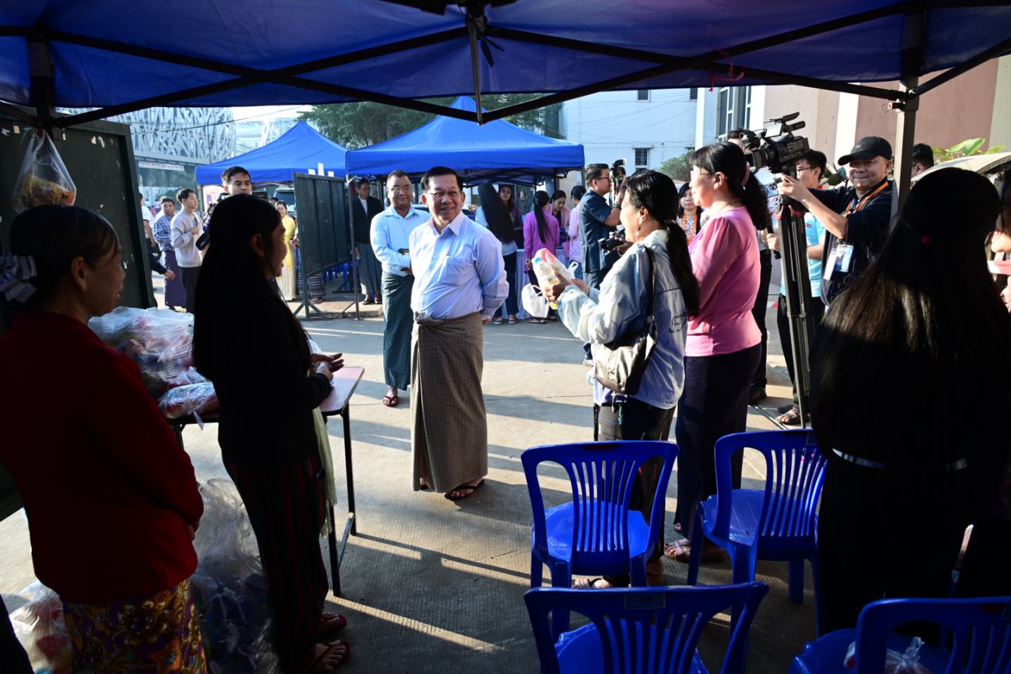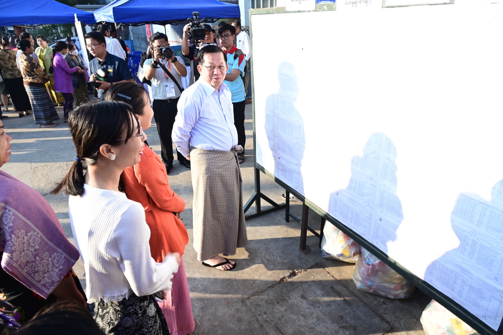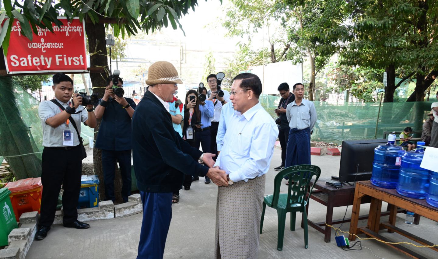 ထိုကဲ့သို့ မဲဆန္ဒရှင်ပြည်သူများ ဆန္ဒမဲများပေးနေမှုများကို နိုင်ငံတော်ယာယီသမ္မတ နိုင်ငံတော်လုံခြုံရေးနှင့် အေးချမ်းသာယာရေးကော်မရှင်ဥက္ကဋ္ဌ ဗိုလ်ချုပ်မှူးကြီး မင်းအောင်လှိုင် သည် ကော်မရှင်အတွင်းရေးမှူး ဗိုလ်ချုပ်ကြီး ရဲဝင်းဦးနှင့် အဖွဲ့ဝင်များ လိုက်ပါ၍ ရန်ကုန်တိုင်းဒေသကြီးအတွင်းရှိ မဲရုံများသို့ သွားရောက်ကြည့်ရှုအားပေးသည်။