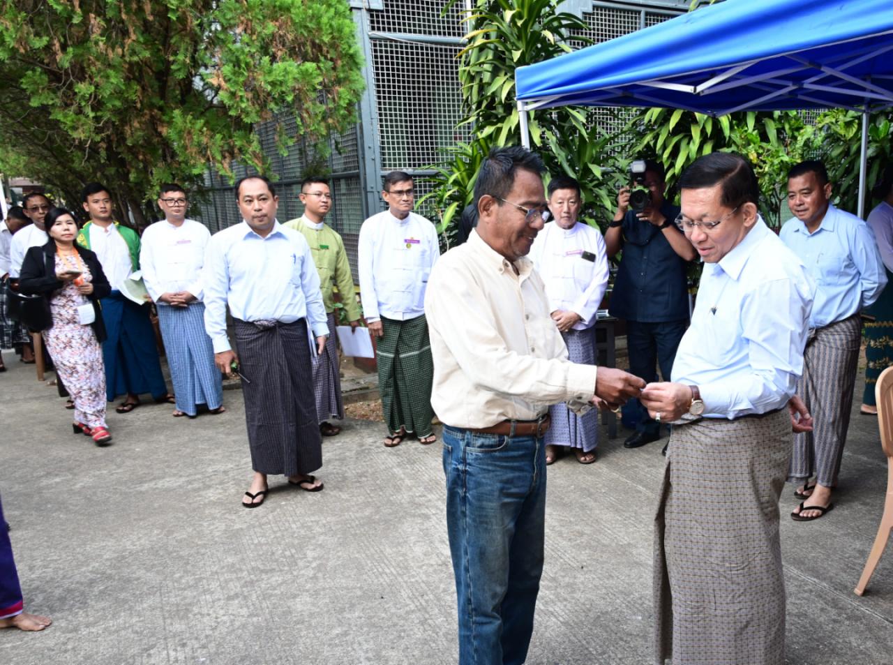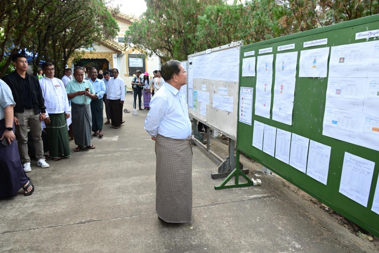 ထိုသို့ကြည့်ရှုအားပေးရာတွင် နိုင်ငံတော်ယာယီသမ္မတ နိုင်ငံတော်လုံခြုံရေးနှင့် အေးချမ်းသာယာရေး ကော်မရှင်ဥက္ကဋ္ဌသည် လှိုင်မြို့နယ်၊ အင်းစိန်မြို့နယ်၊ လသာမြို့နယ် တို့ရှိ သက်ဆိုင်ရာမဲရုံများအလိုက်တွင် မဲရုံမှတာဝန်ရှိသူများ၏ ကွန်ပျူတာစနစ်ဖြင့် မဲစာ ရင်းများ တိုက်ဆိုင်စစ်ဆေးပေးလျက်ရှိမှုနှင့် မဲဆန္ဒရှင်ပြည်သူများ၏ တက်ကြွစွာပါဝင် ဆန္ဒမဲပေးနေမှုများကို လိုက်လံကြည့်ရှုပြီး မဲဆန္ဒရှင်ပြည်သူများအား ဆန္ဒမဲပေးမှုနှင့် ပတ် သက်၍ ကြုံတွေ့ရမှုများ၊ MEVM စက်ဖြင့် ဆန္ဒမဲပေးရာတွင် တွေ့ကြုံရမှုများ၊ မဲရုံဝန်ထမ်း များ၏ တာဝန်ထမ်းဆောင်နေမှုအခြေအနေများနှင့် ပတ်သက်၍ ရင်းရင်းနှီးနှီး မေးမြန်း ဆွေးနွေးခဲ့ပြီး မဲဆန္ဒရှင်ပြည်သူများအား နှုတ်ဆက်ခဲ့သည်။