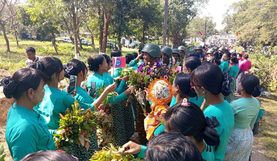 တိုင်းဒေသကြီးနှင့်ပြည်နယ်အသီးသီးရှိ တိုင်းရင်းသားပြည်သူများ စိတ်အေး ချမ်းသာစွာ နေထိုင်လုပ်ကိုင်စားသောက်နိုင်ရေးနှင့် အသက်အိုးအိမ်စည်းစိမ်ဥစ္စာ လုံခြုံမှုရှိစေရေး၊ နိုင်ငံတော်တည်ငြိမ်ရေး၊ နယ်မြေအေးချမ်းရေးအတွက် ရှေ့တန်း စစ်မျက်နှာများတွင် စစ်ဆင်ရေးတာဝန်များကို မိဝေးဖဝေး၊ မိသားစုများနှင့် ဝေးကွာ၍ နေ့မအား ညမနား စွမ်းစွမ်းတမံ တာဝန်ထမ်းဆောင်ခဲ့ပြီး ရွပ်ရွပ်ချွံချွံတိုက်ပွဲဝင်၍ အောင်ပွဲအလီလီရယူနိုင်ခဲ့သော အောင်ပွဲရရှေ့တန်းပြန် တပ်မတော်သားများအား တိုင်းမှူးနှင့် တာဝန်ရှိသူများ၊ ဒေသခံပြည်သူများ၊ ကျောင်းသား/ကျောင်းသူများက အောင်သပြေခက်များဖြင့်လည်းကောင်း၊ ဘင်ခရာ၊ အတီး၊ အမှုတ်၊ အကအလှများဖြင့် လည်းကောင်း ဝမ်းမြောက်စွာ သောင်းသောင်းဖြဖြ ကြိုဆိုဂုဏ်ပြုခဲ့ကြပြီး တိုင်းမှူးက အောင်ပွဲရ ရှေ့တန်းပြန်တပ်မတော်သားများအား ဂုဏ်ပြုချီးမြှင့်ငွေများ ပေးအပ်ခဲ့ ကြောင်း သတင်းရရှိသည်။