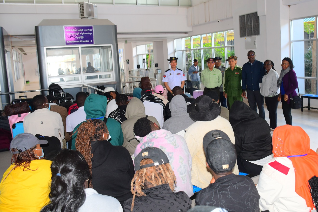 ထိုင်းနိုင်ငံအပါအဝင် အိမ်နီးချင်းနိုင်ငံအချို့ကို တစ်ဆင့်ခံဖြတ်သန်း၍ မြန်မာနိုင်ငံအတွင်းသို့ နယ်စပ်လမ်းကြောင်းများမှ တရားမဝင် ဝင်ရောက်လာပြီး ကရင်ပြည်နယ်၊ မြဝတီ-ရွှေကုက္ကိုလ် နယ်မြေတွင် တရားမဝင် အွန်လိုင်းလောင်းကစားမှုများ၊ အွန်လိုင်းလိမ်လည်မှုများ၊ ဒုစရိုက်မှုများ ကျူးလွန်ခဲ့ကြသည့် ကင်ညာနိုင်ငံသား ၅၉ ဦး၊ ယူဂန်ဒါနိုင်ငံသား ၂၀ ဦး၊ နိုင်ဂျီးရီးယားနိုင်ငံသား ၁၃ ဦး၊ ကင်မရွန်းနိုင်ငံသား သုံး ဦး၊ ဂါနာနိုင်ငံသား သုံး ဦး၊ ဆီရီရာလီယွန်နိုင်ငံသား နှစ် ဦး၊ လိုင်ဘေးရီးယားနိုင်ငံသား တစ် ဦး၊ မာလာဝီနိုင်ငံသား တစ် ဦး နှင့် ဘူရွန်ဒီနိုင်ငံသား တစ် ဦး၊ စုစုပေါင်းပြည်ပနိုင်ငံသား ၁၀၃ ဦး တို့အား မြန်မာ-ထိုင်း အမှတ်(၂) ချစ်ကြည်ရေးတံတားမှ တစ်ဆင့် သက်ဆိုင်ရာနိုင်ငံများသို့ လူသားချင်း စာနာထောက်ထားမှုနှင့် နိုင်ငံအချင်းချင်း ချစ်ကြည်ရင်းနှီးမှု တို့ကို ရှေးရှု၍ ဥပဒေလုပ်ထုံးလုပ်နည်းများနှင့်အညီ ထပ်မံလွှဲပြောင်းပေးသည်။