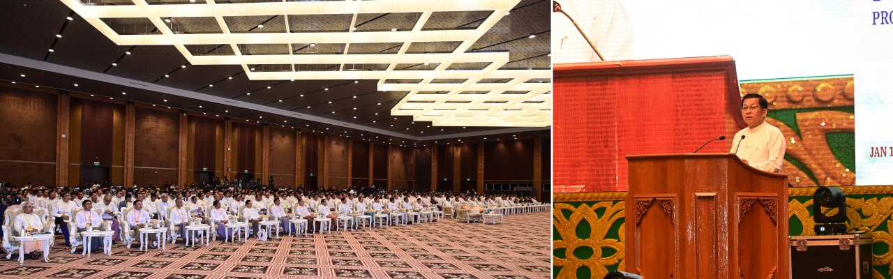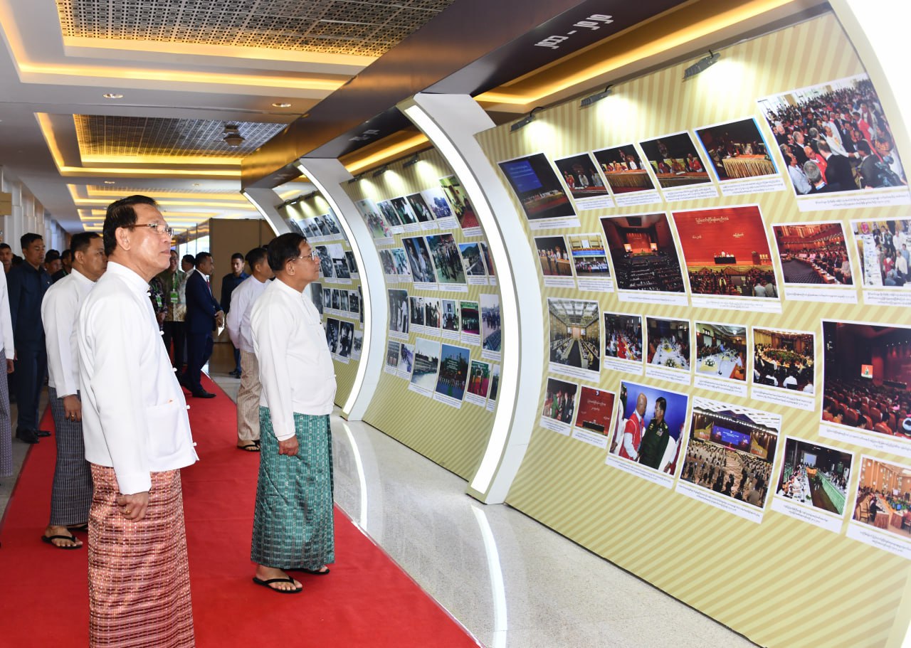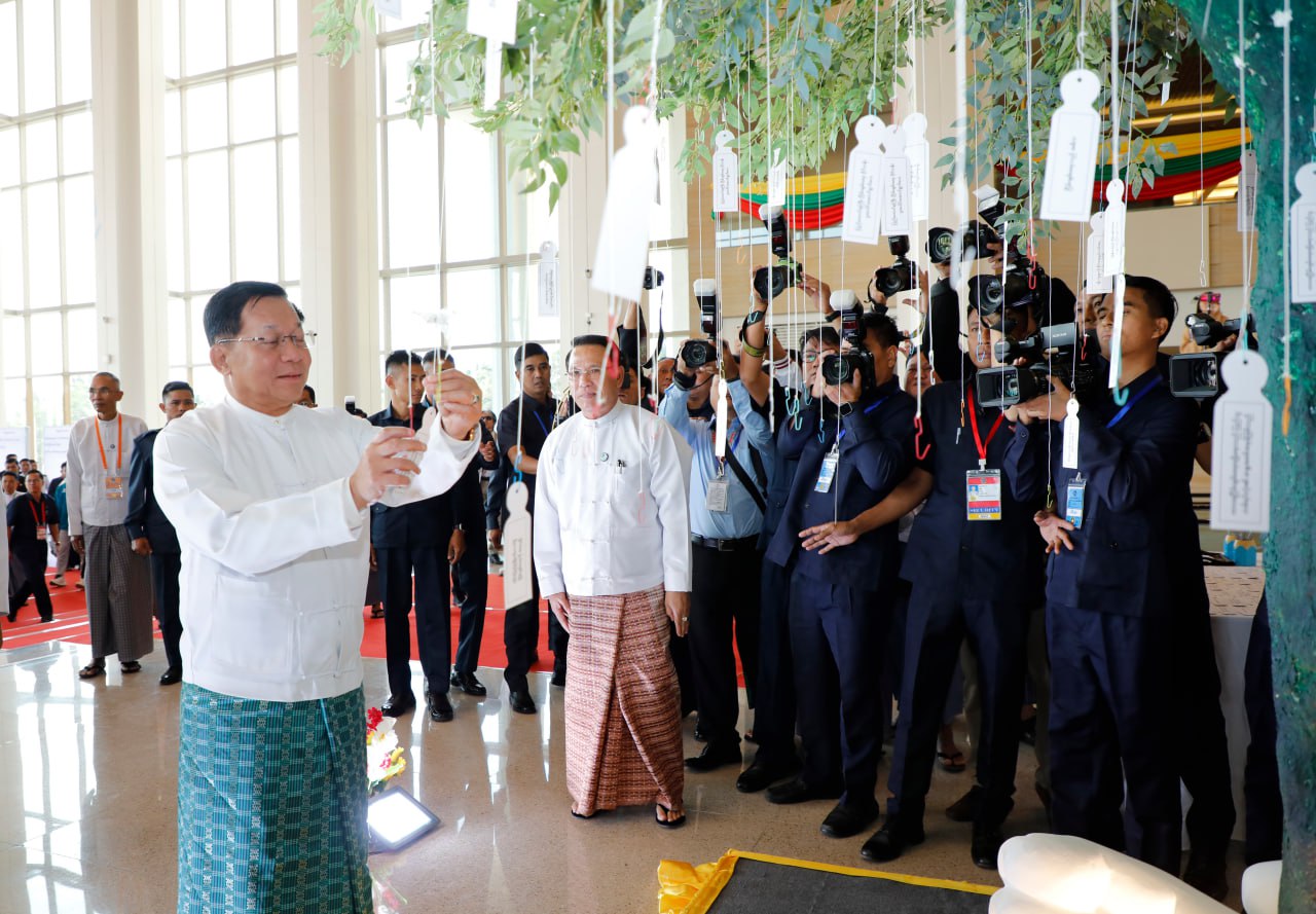 နိုင်ငံတော်ယာယီသမ္မတ နိုင်ငံတော်လုံခြုံရေးနှင့် အေးချမ်းသာယာရေးကော်မရှင်ဥက္ကဋ္ဌ အမျိုးသားစည်းလုံးညီညွတ်ရေးနှင့် ငြိမ်းချမ်းရေးဖော်ဆောင်မှု ဗဟိုကော်မတီ ဥက္ကဋ္ဌ ဗိုလ်ချုပ်မှူးကြီး မင်းအောင်လှိုင် တက်ရောက်ဖွင့်လှစ်ပြီး အဖွင့်အမှာစကားပြောကြား
