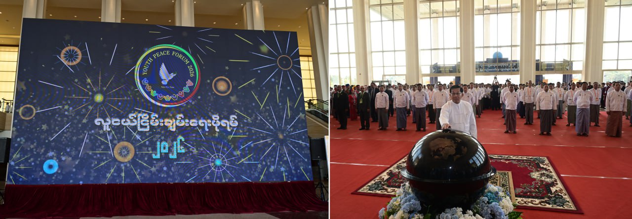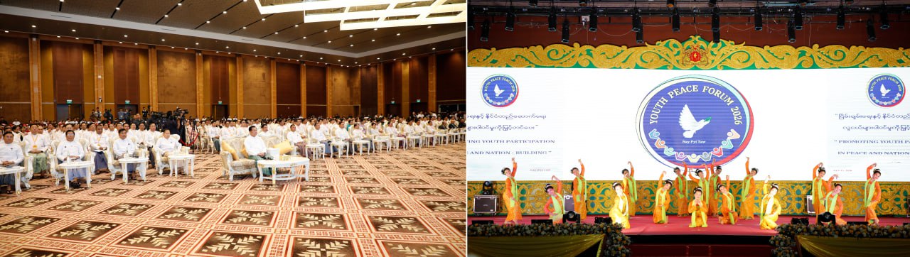 “လူငယ်ငြိမ်းချမ်းရေးဖိုရမ် ၂၀၂၆” ဖွင့်ပွဲအခမ်းအနားကို ယနေ့ နံနက်ပိုင်းတွင် နေပြည်တော်ရှိ မြန်မာအပြည်ပြည်ဆိုင်ရာ ကွန်ဗင်းရှင်းဗဟိုဌာန-၁ (MICC-1)၌ကျင်းပ ပြုလုပ်ရာ ပြည်ထောင်စုသမ္မတမြန်မာနိုင်ငံတော် ယာယီသမ္မတ နိုင်ငံတော်လုံခြုံရေး နှင့် အေးချမ်းသာယာရေးကော်မရှင်ဥက္ကဋ္ဌ အမျိုးသားစည်းလုံးညီညွတ်ရေးနှင့် ငြိမ်းချမ်း ရေးဖော်ဆောင်မှု ဗဟိုကော်မတီဥက္ကဋ္ဌ ဗိုလ်ချုပ်မှူးကြီး မင်းအောင်လှိုင် တက်ရောက် ဖွင့်လှစ်ပြီး အဖွင့်အမှာစကားပြောကြားသည်။