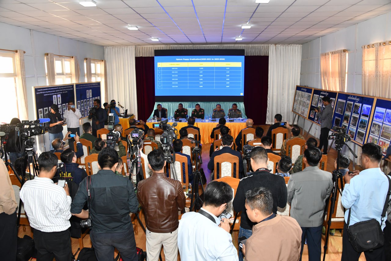 မြန်မာနိုင်ငံအနေဖြင့် မူးယစ်ဆေးဝါးတားဆီးနှိမ်နင်းရေးလုပ်ငန်းများကို နိုင်ငံတကာ အသိုက်အဝန်းနှင့်ပူးပေါင်းပြီး ဆောင်ရွက်သွားရန် ကတိပြုထားသည့်အတိုင်း ကြိုးပမ်းဆောင် ရွက်လျက်ရှိကာ ယခုကဲ့သို့ မူးယစ်ဆေးဝါးအမြောက်အမြားထုတ်လုပ်ရာ ပင်ရင်းနေရာတစ်ခု အား ဖော်ထုတ်ဖျက်ဆီးနိုင်ခဲ့ခြင်းကြောင့် မူးယစ်ဆေးဝါးထုတ်လုပ်မှုပြဿနာကို ထိရောက် ပြင်းထန်စွာတားဆီးနိုင်ခဲ့သည့်အခြေအနေများ၊ မြန်မာနိုင်ငံအနေဖြင့် နိုင်ငံတကာသို့ ပေးထား သည့်ကတိအတိုင်း မူးယစ်ဆေးဝါးတိုက်ဖျက်ရေးလုပ်ငန်းများကို နိုင်ငံအတွင်းရှိ ရနိုင်သမျှ သော စွမ်းအားစု၊ အရင်းအမြစ်များ အသုံးပြုပြီးဆက်လက်တိုက်ဖျက်သွားမည်ဖြစ်သည့် အခြေ အနေများနှင့်ပတ်သက်၍ ရှင်းလင်းပြောကြားသည်။