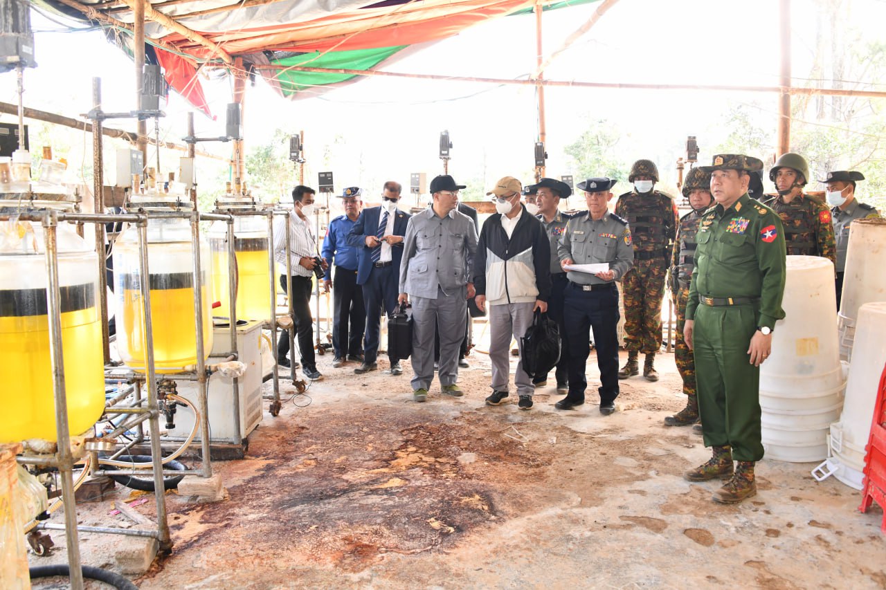 ၂၀၂၁ ခုနှစ်မှ ၂၀၂၅ ခုနှစ်အထိ မြန်မာနိုင်ငံ၏ မူးယစ်ဆေးဝါးတားဆီးနှိမ်နင်းရေး ဆောင်ရွက်မှု၊ ဘိန်းခင်းများအား ဖျက်ဆီးခဲ့မှု၊ ဖမ်းဆီးရမိ မူးယစ်ဆေးဝါးနှင့်ဓာတုပစ္စည်းများအား မီးရှို့ဖျက်ဆီးခဲ့မှု၊ မူးယစ်ဆေးဝါးတားဆီးနှိမ်နင်းရေးအထူးစစ်ဆင်ရေး ဆောင်ရွက်ခဲ့မှု အခြေ အနေများ၊ မူးယစ်ဆေးဝါးချက်လုပ်ရာနေရာများ ဖော်ထုတ်ဖမ်းဆီးရမိရေး ဆောင်ရွက်ခဲ့ရာ၌ ၂၀၂၁ ခုနှစ်မှ ၂၀၂၅ ခုနှစ်အတွင်း မူးယစ်ဆေးဝါးထုတ်လုပ်သည့် စခန်းငယ်များကိုသာ ဖော် ထုတ်ဖမ်းဆီးနိုင်ခဲ့ပြီး ယခုဖမ်းဆီးရမိသည့် မူးယစ်ဆေးဝါးချက်လုပ်သော စခန်းများသည် ဖော်ထုတ်ဖမ်းဆီးရမိမှုများအနက် အကြီးမားဆုံးဖြစ်သည်ကို တွေ့ရှိရသည့်အခြေအနေများနှင့် အဆင့်ဆင့်ဖော်ထုတ်ဖမ်းဆီးရမိခဲ့မှုအခြေအနေများ၊ ယခုဖမ်းဆီးရမိသော ဓာတုပစ္စည်းများ နှင့် မူးယစ်ဆေးဝါးချက်လုပ်ရာတွင် အသုံးပြုနေသည့် ပစ္စည်းကိရိယာများအပေါ် လေ့လာ ဖော်ထုတ်ချက်အရ အဆိုပါနေရာများတွင် မူးယစ်ဆေးဝါးအမြောက်အမြားကို ထုတ်လုပ်နေ ကြောင်း စိစစ်တွေ့ရှိရသည့်အခြေအနေများ။