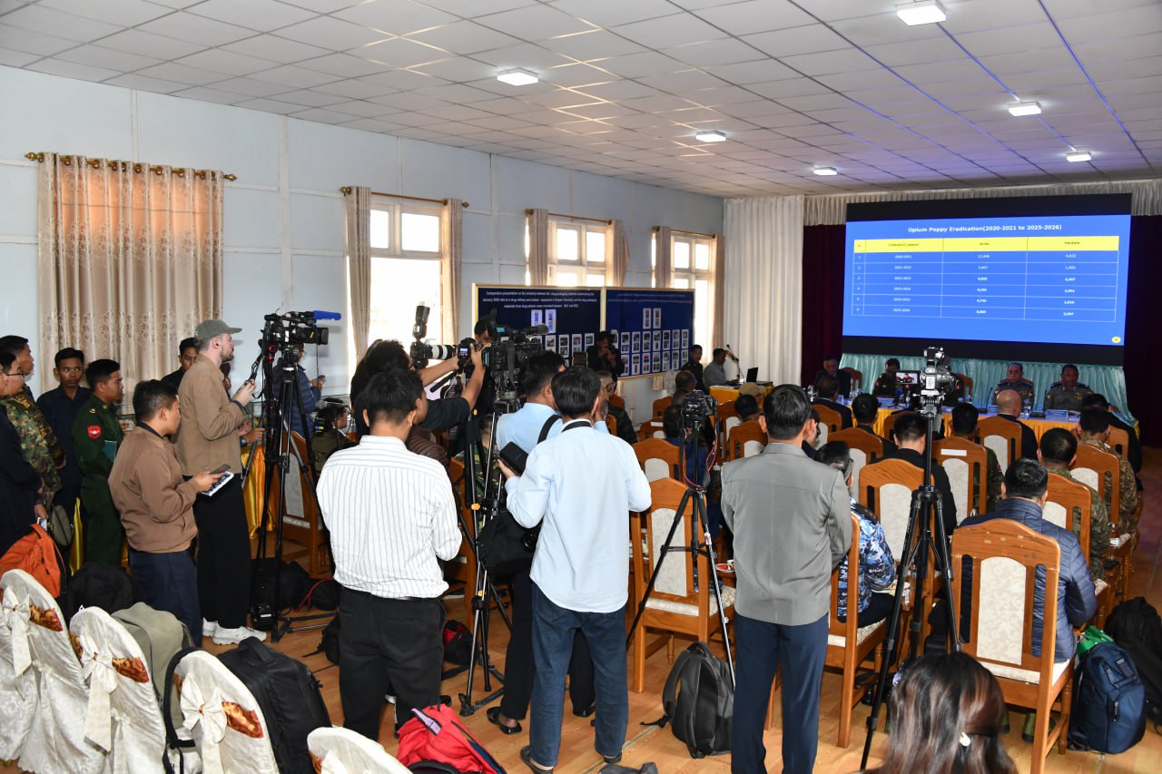 မူးယစ်ဆေးဝါးများနှင့် မူးယစ်ဆေးဝါးချက်လုပ်ရာတွင် အသုံးပြုသည့်ပစ္စည်းများ ပမာဏအများဆုံးသိမ်းဆည်းရမိမှု၊ အွန်လိုင်းလိမ်လည်လောင်းကစားမှုပြုလုပ်ရာတွင် အသုံးပြုသည့်ပစ္စည်းများ ဖော်ထုတ်သိမ်းဆည်းရမိမှုတို့နှင့်ပတ်သက်၍ ပြည်ထောင်စုသမ္မတမြန်မာနိုင်ငံတော်အစိုးရ၏ သတင်းစာရှင်းလင်းပွဲကျင်းပ