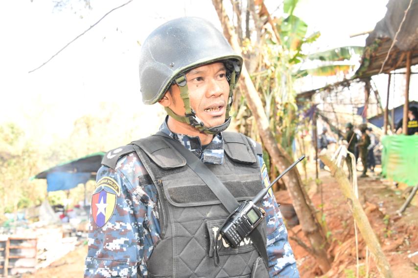 ကျွန်တော်တို့ ၈ရက်နေ့မှာ မိုင်းဖြတ်ကိုရောက်ပါတယ်။ ၉ ရက်နေ့ မိုင်းဖြတ်မှာ ရဲရော တပ်ရော ကွန်မန်ဒိုအဖွဲ့ရော သေချာစုဖွဲ့ပြီးတော့ ချီတက်ခဲ့ ကြပါတယ်။ ဒီဘက်ကိုလာဖို့ နှစ်ရက်ကြာပါတယ်။ ချောင်းတွေလည်း ဖြတ်ခဲ့ရပါတယ်။ ချောင်းအကျယ် ပေ ၂၀ ၊အနက် ၈ ပေ ခန့်ရှိတဲ့ချောင်းကို အန္တရာယ်မဖြစ်အောင်လို့ ကူးခဲ့ပါတယ်။ ကျွန်တော်တို့ ဒီကြားထဲမှာ တရားခံတွေလည်း မိပါတယ်။ နောက်ပြီးတော့ ယူနီဖောင်းတွေလည်း မိပါ တယ်။ ဒီအဆောက်အအုံတွေလည်း အပျက်အစီးမရှိ အကောင်းပကတိ အတိုင်း ရခဲ့ပါတယ်။ မြန်မာနိုင်ငံရဲတပ်ဖွဲ့ရဲ့ လုပ်ငန်း စဉ်အတိုင်း ပြည်ထဲရေးဝန်ကြီးရဲ့ လမ်းညွှန်ချက်၊ ရဲချုပ်ကြီးတို့ရဲ့ လမ်းညွန်ချက်နဲ့အညီ အနီးကပ်ကွပ်ကဲမှုညွှန်ကြားပေးတဲ့ တာဝန်ရှိသူတွေရဲ့ ကွပ်ကဲမှုတွေနဲ့အညီ ကျွန်တော်တို့ ဆောင်ရွက်ခဲ့ပါတယ်၊၊ မူးယစ်ဆေးဝါး ပပျောက်ရေးအတွက် တပ်မတော်နဲ့ မြန်မာနိုင်ငံရဲတပ်ဖွဲ့တို့ ပူးပေါင်းပြီးဆက်လက် တိုက်ဖျက်သွားမှာဖြစ်ပါတယ်။