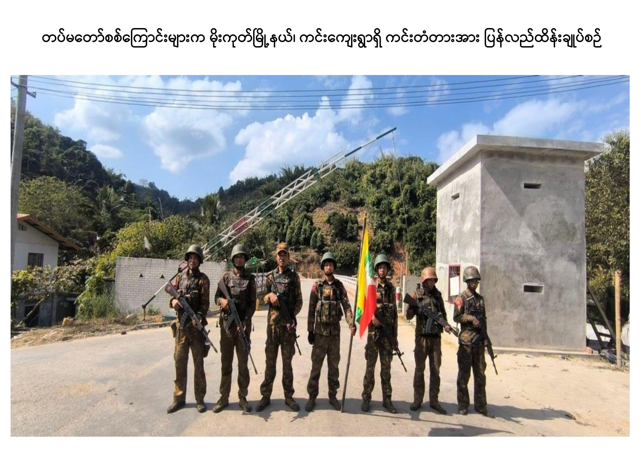တပ်မတော်စစ်ကြောင်းများအနေဖြင့် PDF အမည်ခံအကြမ်းဖက်သောင်း ကျန်းသူပူးပေါင်းအဖွဲ့များ ယာယီစိုးမိုးထားသည့် မန္တလေးတိုင်းဒေသကြီး၊ မတ္တရာ မြို့နယ်၊ စဉ့်ကူးမြို့နယ်၊ သပိတ်ကျင်းမြို့နယ်များအား တစ်ခုပြီးတစ်ခု ပြန်လည် သိမ်းပိုက်ထိန်းချုပ်ခဲ့ပြီး မန္တလေး-မတ္တရာ-စဉ့်ကူး-သပိတ်ကျင်း ဆက်သွယ်ရေး လမ်းကြောင်းအား အပြည့်အဝ ပြန်လည်ထိန်းချုပ်ဖွင့်လှစ်ပေးခဲ့သည့် သတင်းအား ၂၀၂၅ ခုနှစ်၊ ဒီဇင်ဘာ ၃၁ ရက်နေ့တွင် လည်းကောင်း၊ သပိတ်ကျင်း-မိုးကုတ် ဆက်သွယ်ရေးလမ်းကြောင်း တစ်လျှောက်ရှိ ညောင်ပင်သာကျေးရွာ၊ ပိုးဇာနွယ် ကျေးရွာ ၊ ကျောက်လှည်းဘီးကျေးရွာ ၊ နယ်မြေခံတပ်ရင်းဌာနချုပ်နှင့် စိန်ကုန်း ကျေးရွာတစ်ဝိုက်တို့အား ပြန်လည်သိမ်းပိုက်ရရှိခဲ့သည့် သတင်းအား ၂၀၂၆ ခုနှစ်၊ ဇန်နဝါရီ ၁၄ ရက်နေ့တွင် လည်းကောင်း သတင်းထုတ်ပြန်ခဲ့ပြီးဖြစ်ပါသည်။