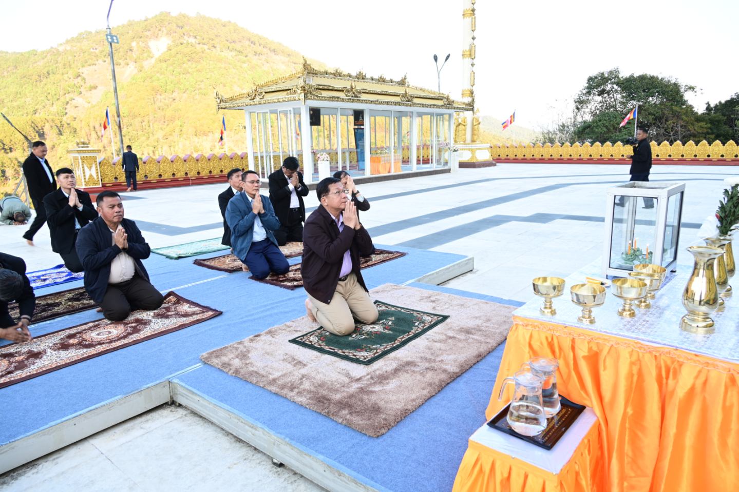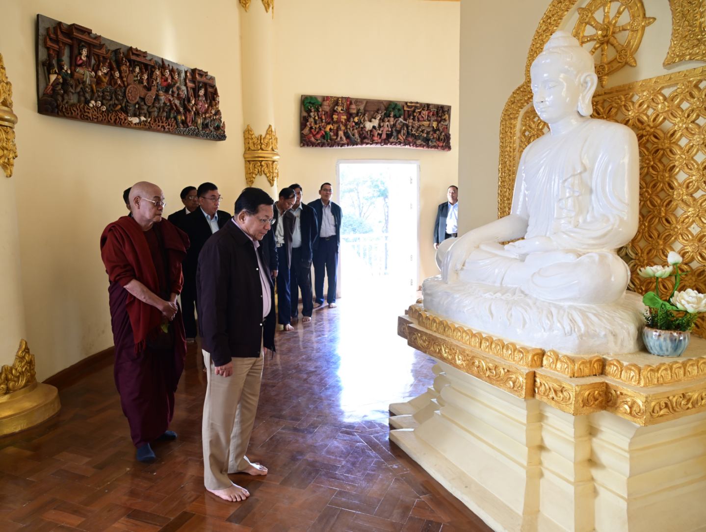 ထို့နောက် နိုင်ငံတော်ယာယီသမ္မတ နိုင်ငံတော်လုံခြုံရေးနှင့် အေးချမ်းသာယာ ရေးကော်မရှင်ဥက္ကဋ္ဌနှင့်အဖွဲ့ဝင်များသည် ညပိုင်းတွင် ကျိုင်းတုံမြို့ကျက်သရေဆောင် မဟာမြတ်မုနိဘုရားကြီးသို့ သွားရောက်ဖူးမြော်ကြရာ ဂေါပက အဖွဲ့ဝင်များက ကြိုဆို နှုတ်ဆက်ကြသည်။ ယင်းနောက် နိုင်ငံတော်ယာယီသမ္မတ နိုင်ငံတော်လုံခြုံရေးနှင့် အေးချမ်းသာယာ ရေးကော်မရှင်ဥက္ကဋ္ဌက ဘုရားကြီးအား သောက်တော်ရေချမ်းနှင့် ပန်းမန်၊ ဆီမီး တို့ကိုကပ်လှူပူဇော်ပြီး ဖူးမြော်ကြည်ညိုသည်။
